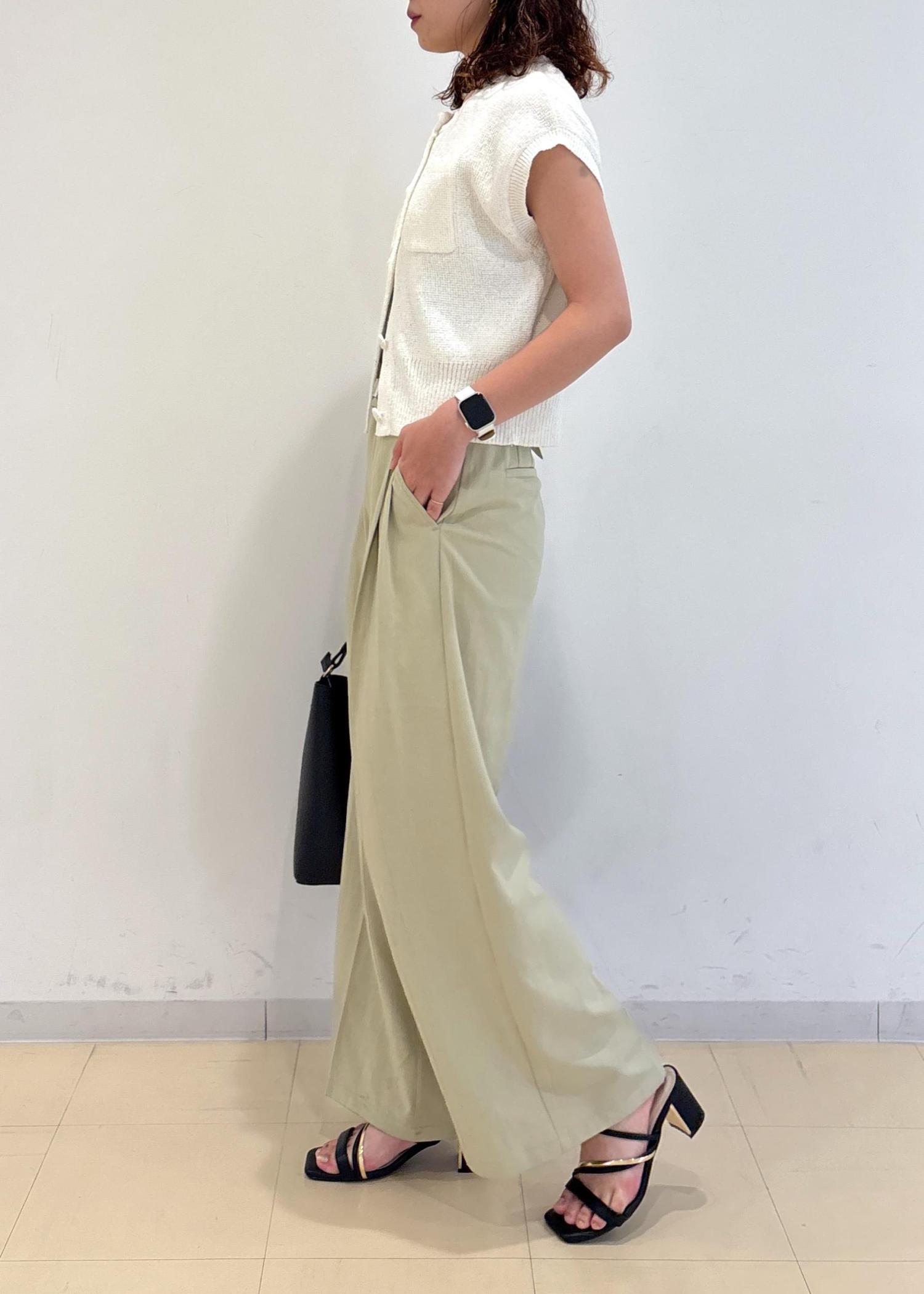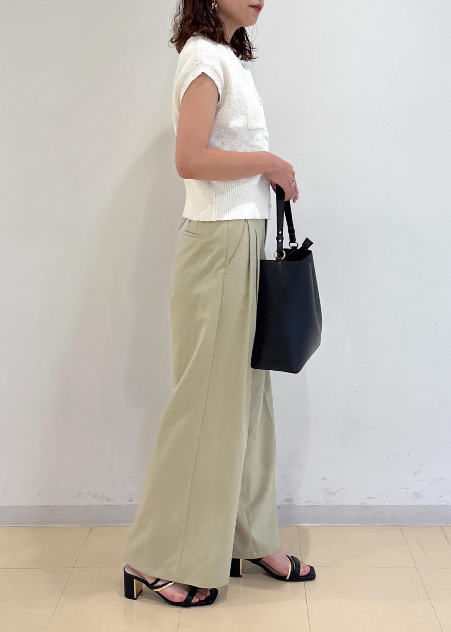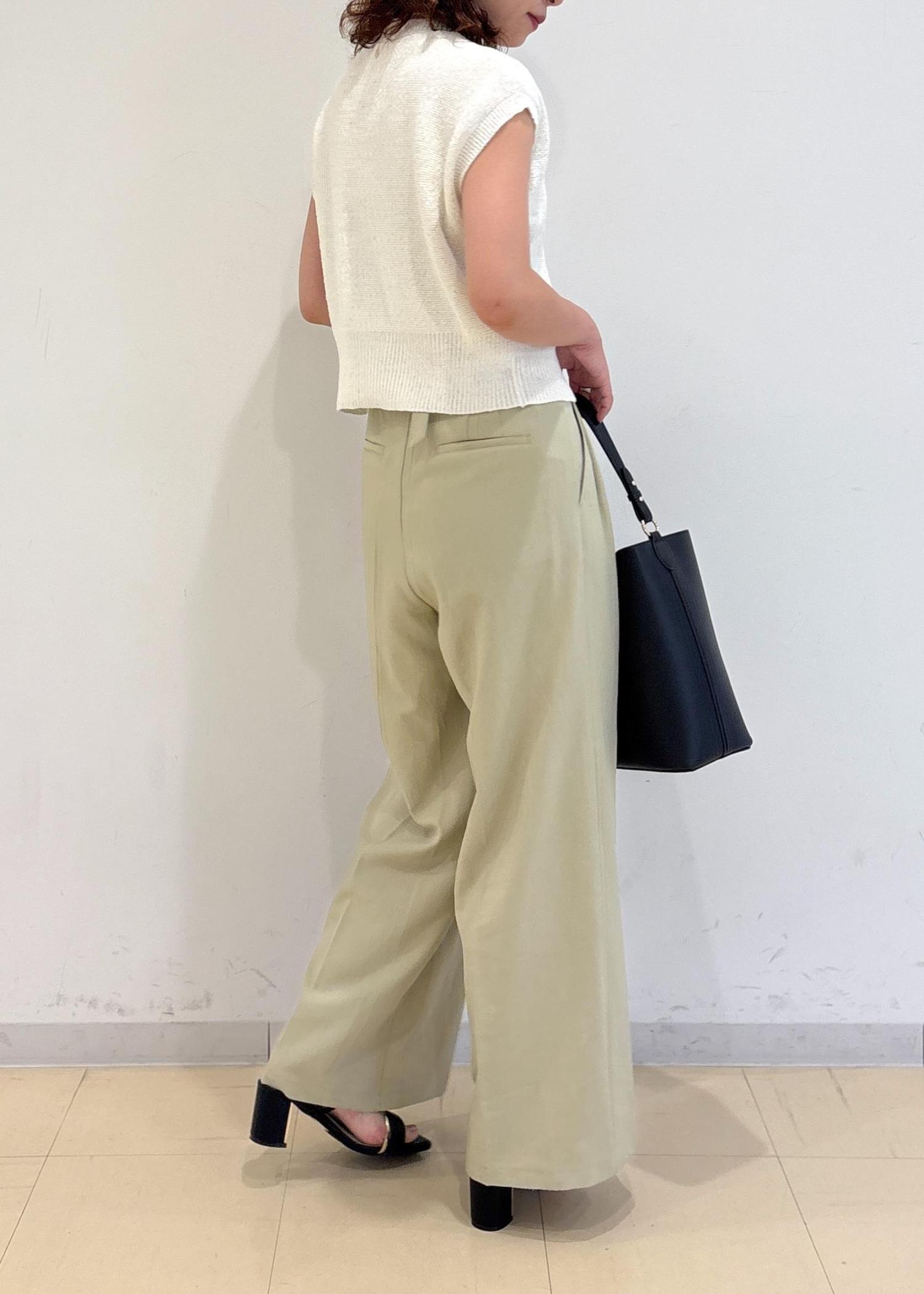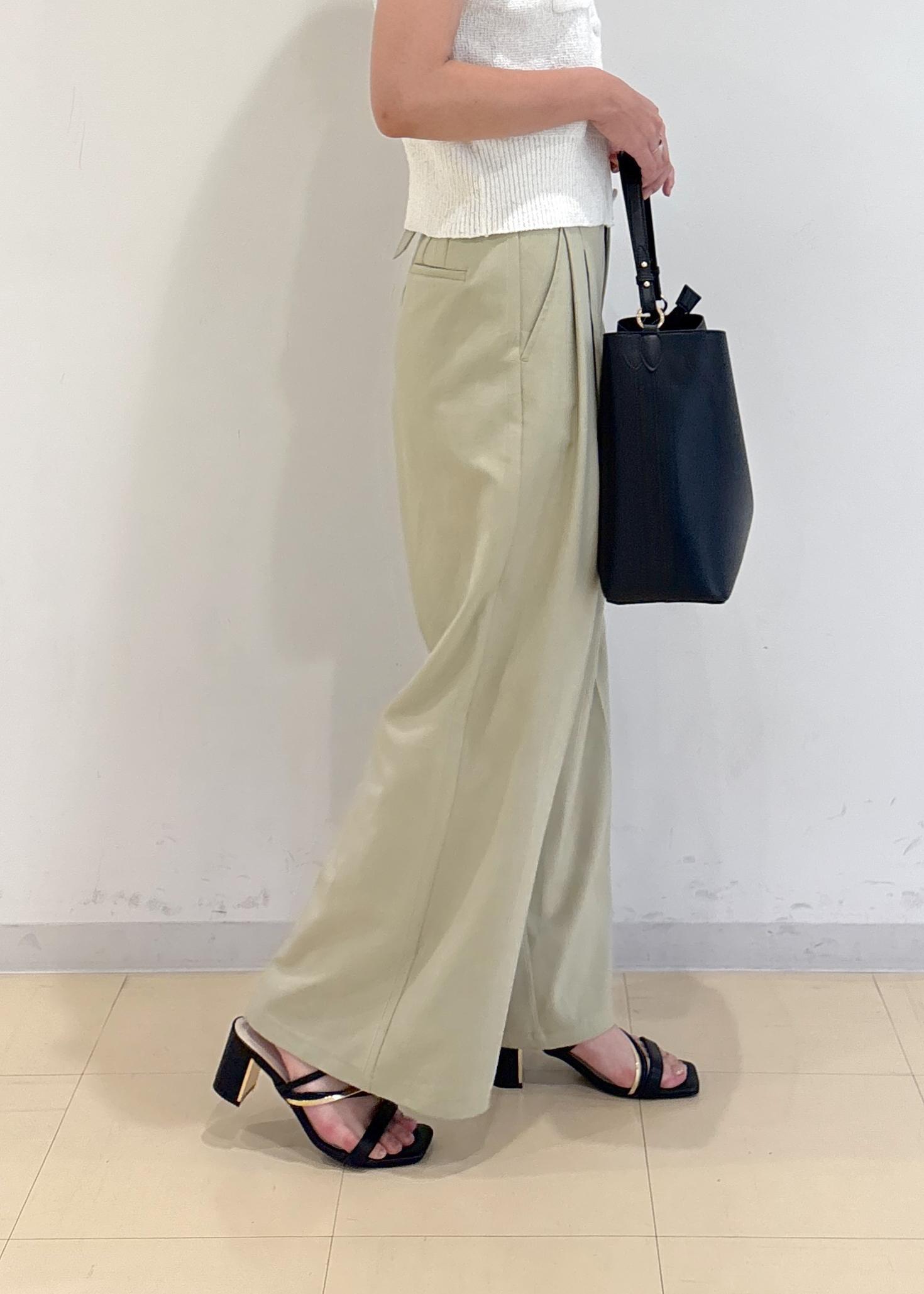 VIS【新色追加】【防シワ/接触冷感】ベルトディテールタックワイドスラックスパンツライトグリーン / M¥6,589レビュー160cm、Mサイズ着用でくるぶしがしっかり隠れる丈感です!