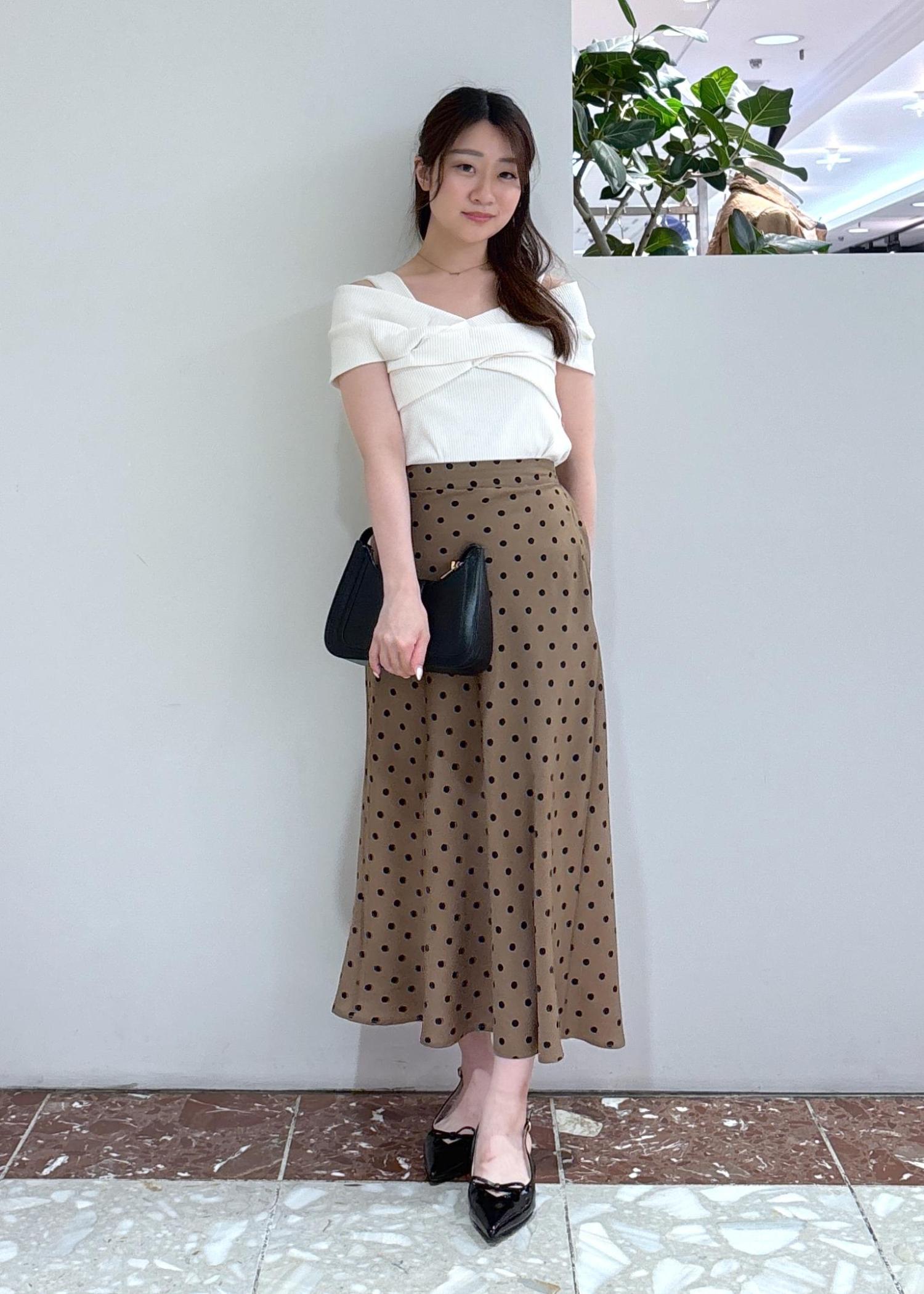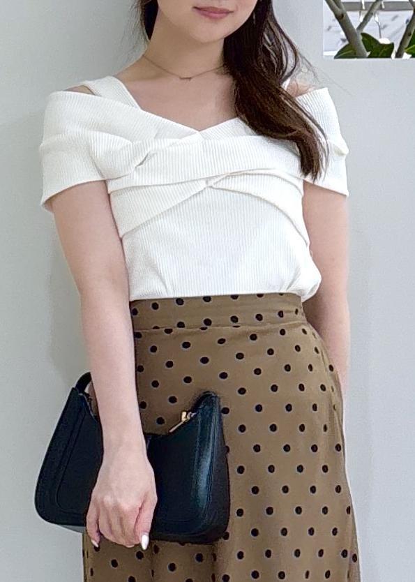 肩紐付きのオフショルという感じでオフショルに抵抗ある方も挑戦しやすいデザインです♡ -