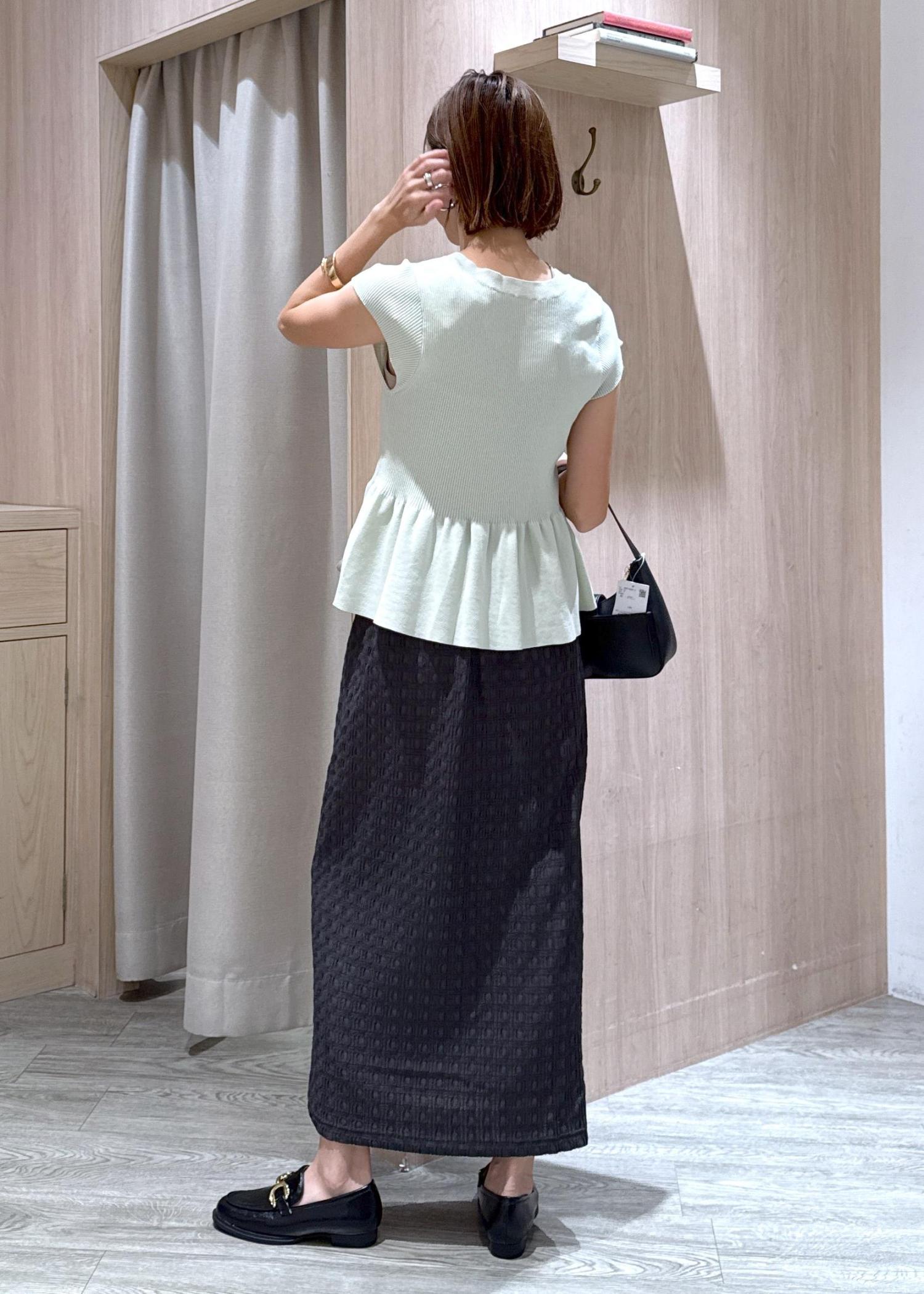 シルエットがキレイなペプラムカーディガンにタイトスカートを合わせた大人のお出かけスタイルです!