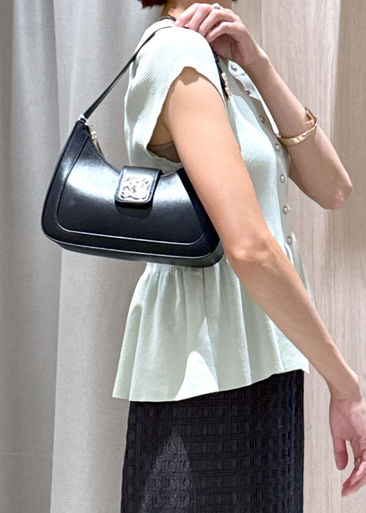 小物を黒系でまとめて秋まで着られるスタイリングにしました♪