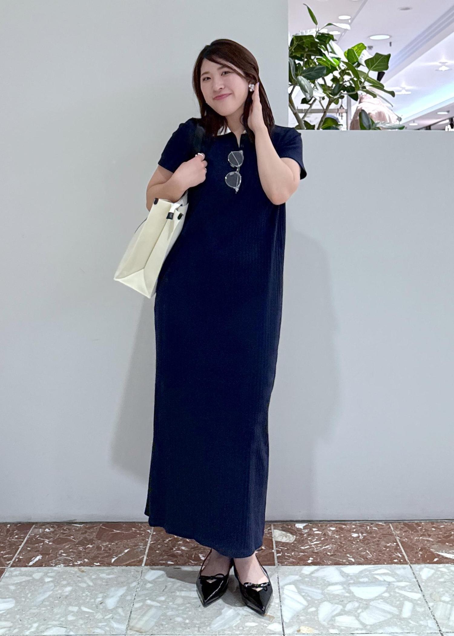 VISポロ衿ランダムリブワンピースネイビー系 / F¥4,612レビューロング丈で伸縮性のあるワンピース!
