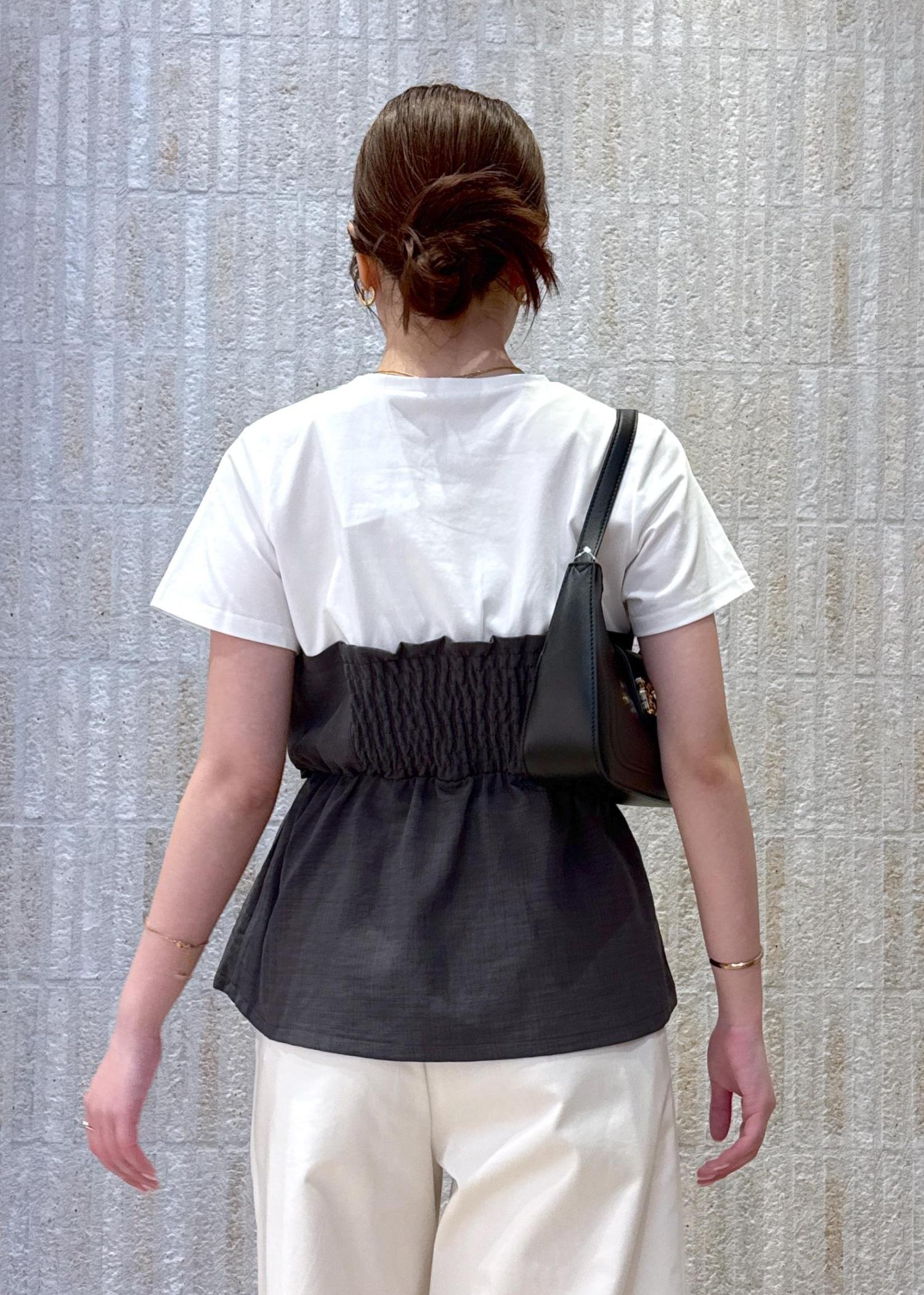 【新色追加】【美easy】ねじりリボンTシャツドッキングプルオーバー【接触冷感/洗える】