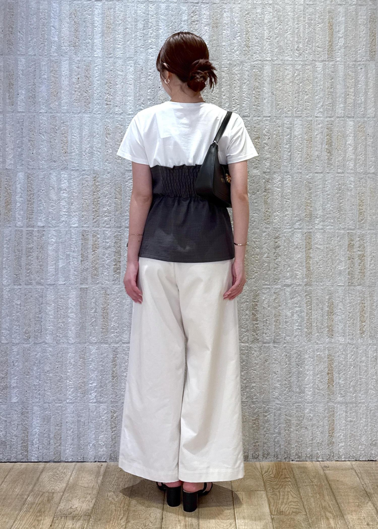 1枚で着映えするトップスなので、デニム合わせでも可愛いトップス!セットアップ対応でもあるのでパンツ、スカートセットでもきていただける着回しがたくさんできるアイテム!