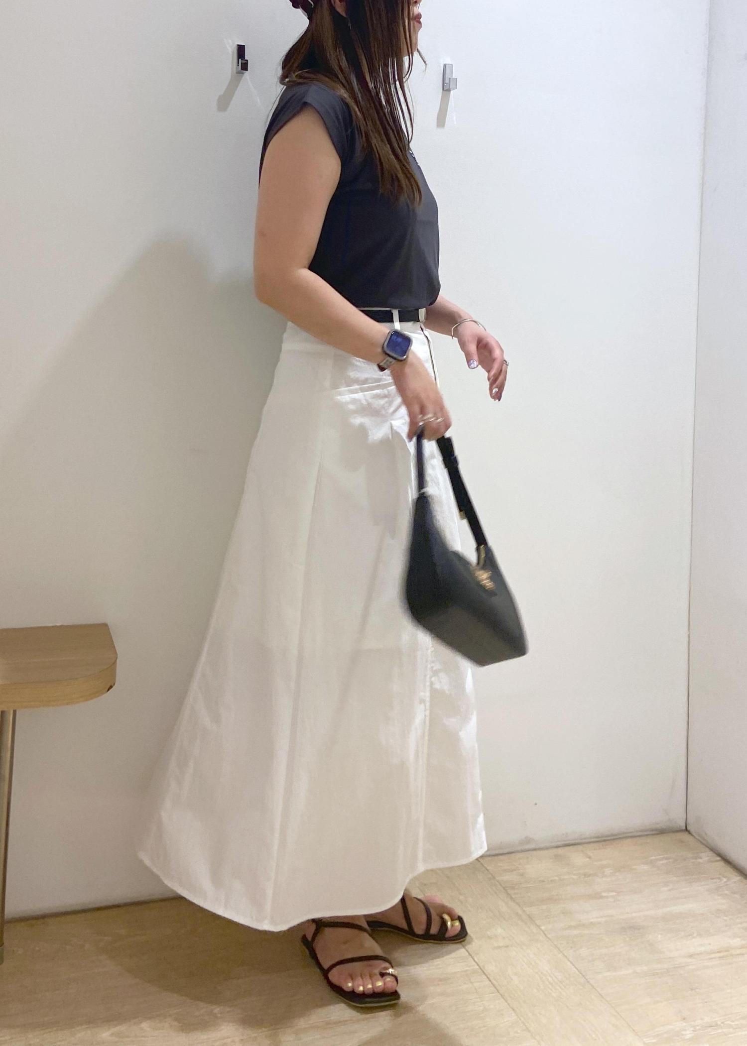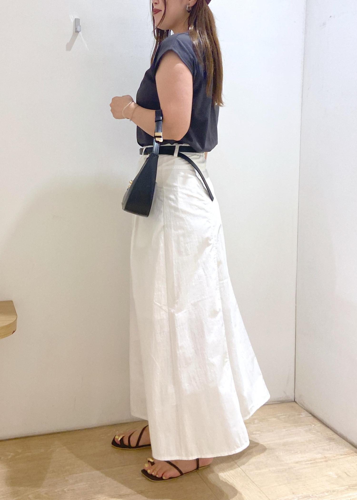 ウエストが少しキュッと内側に入るデザインなので、ボリュームが出過ぎずスッキリ見えしやすいです。