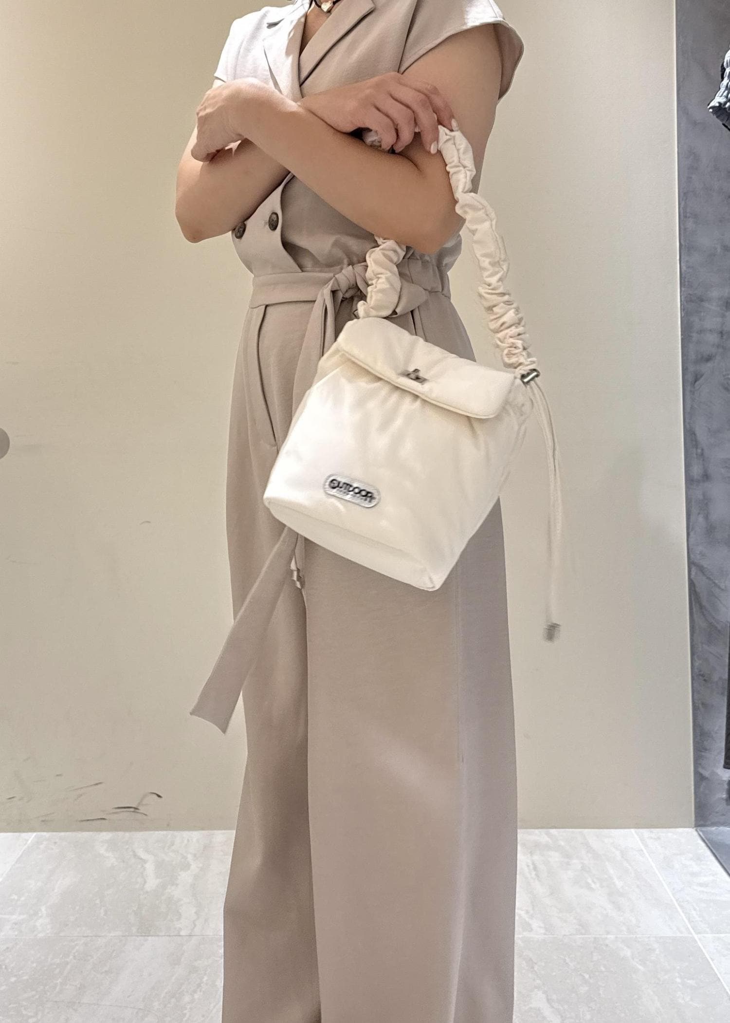 ショルダーバッグは、ショルダー部分のクシュクシュした部分が可愛らしさをよりプラスしてくれますし、