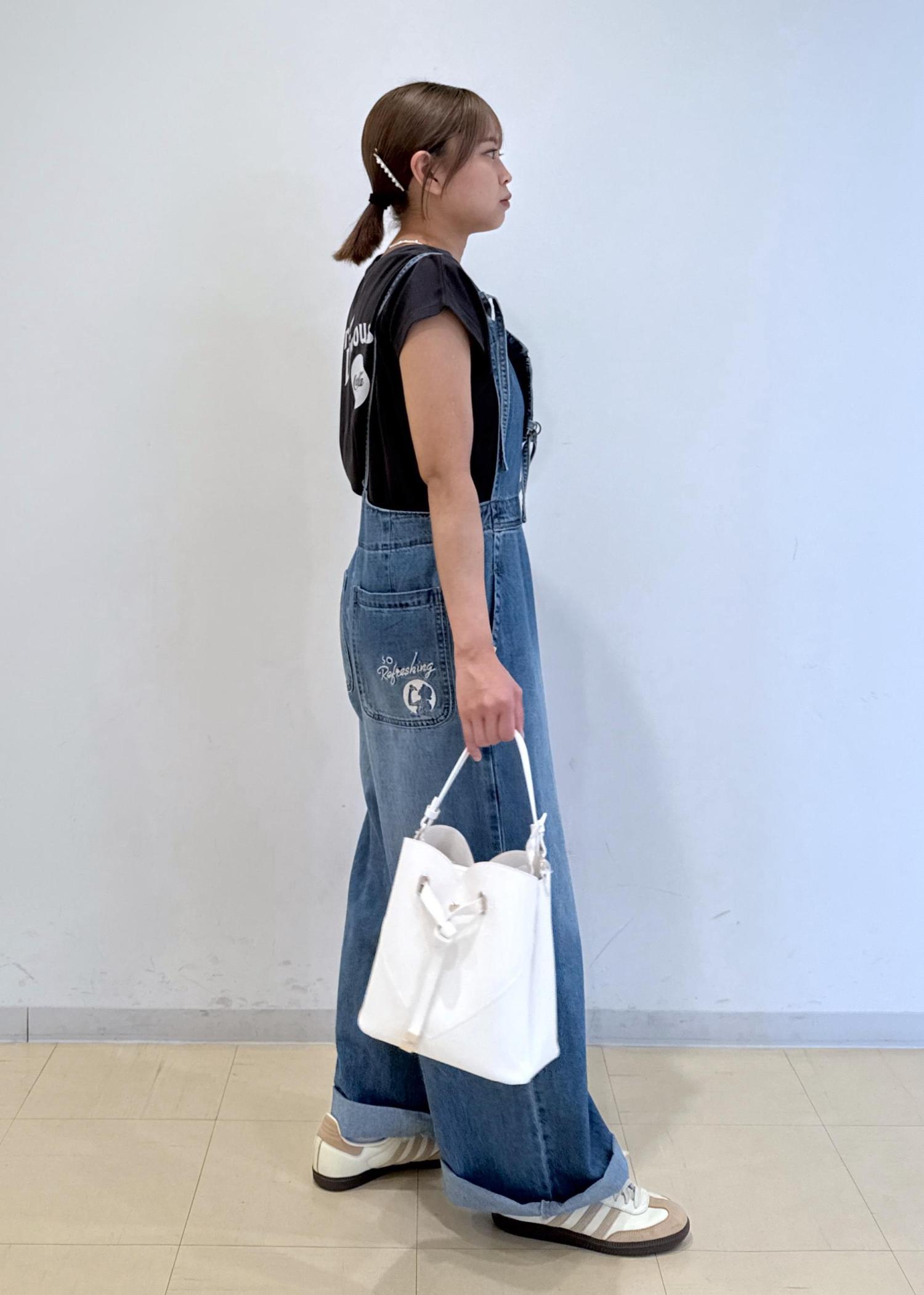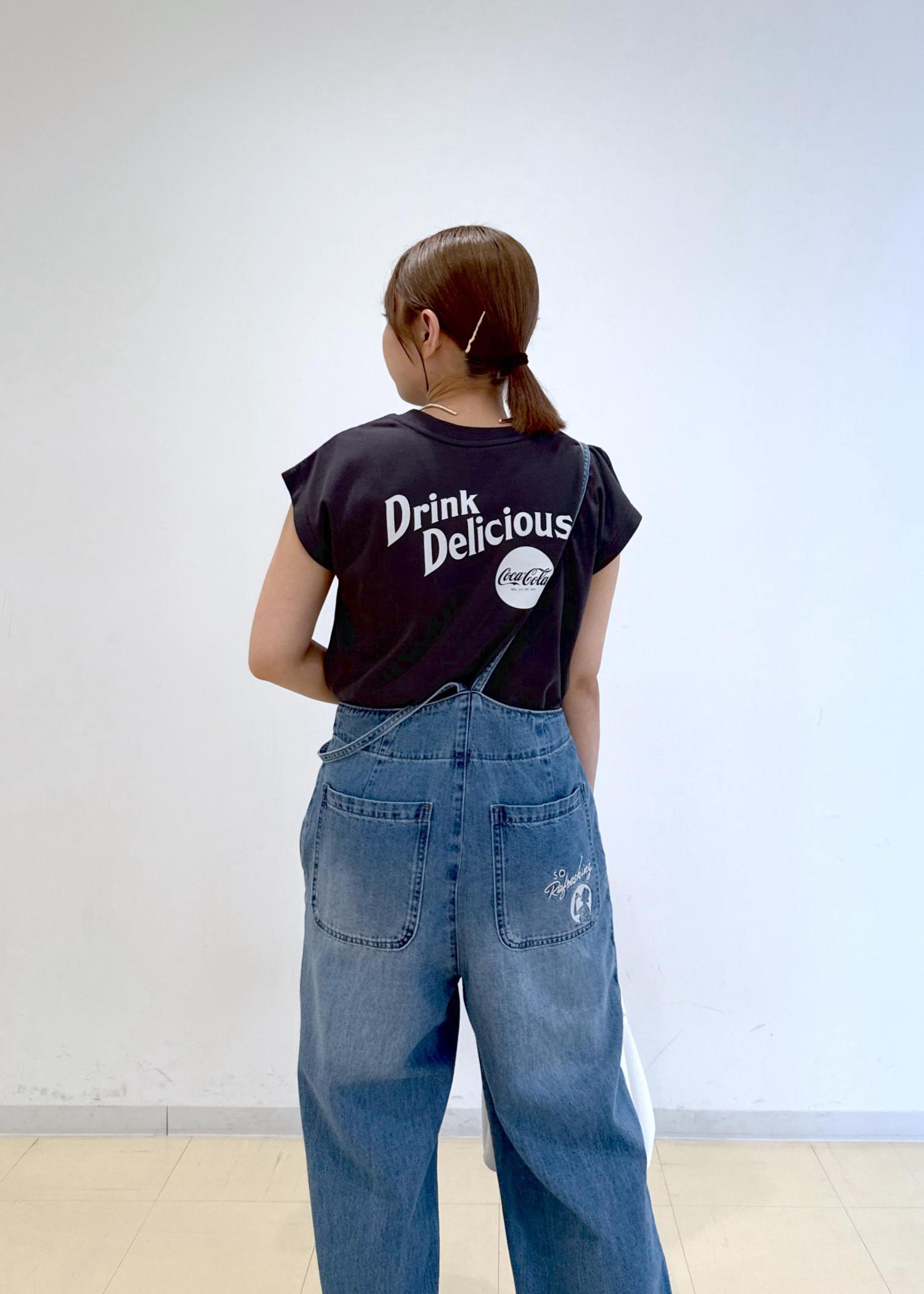 VIS【Coca-Cola】VIS別注エンブロイダリーサロペットブルー系 / F¥8,470レビュー肩紐で長さの調節が可能ですがロールアップして着用しました!