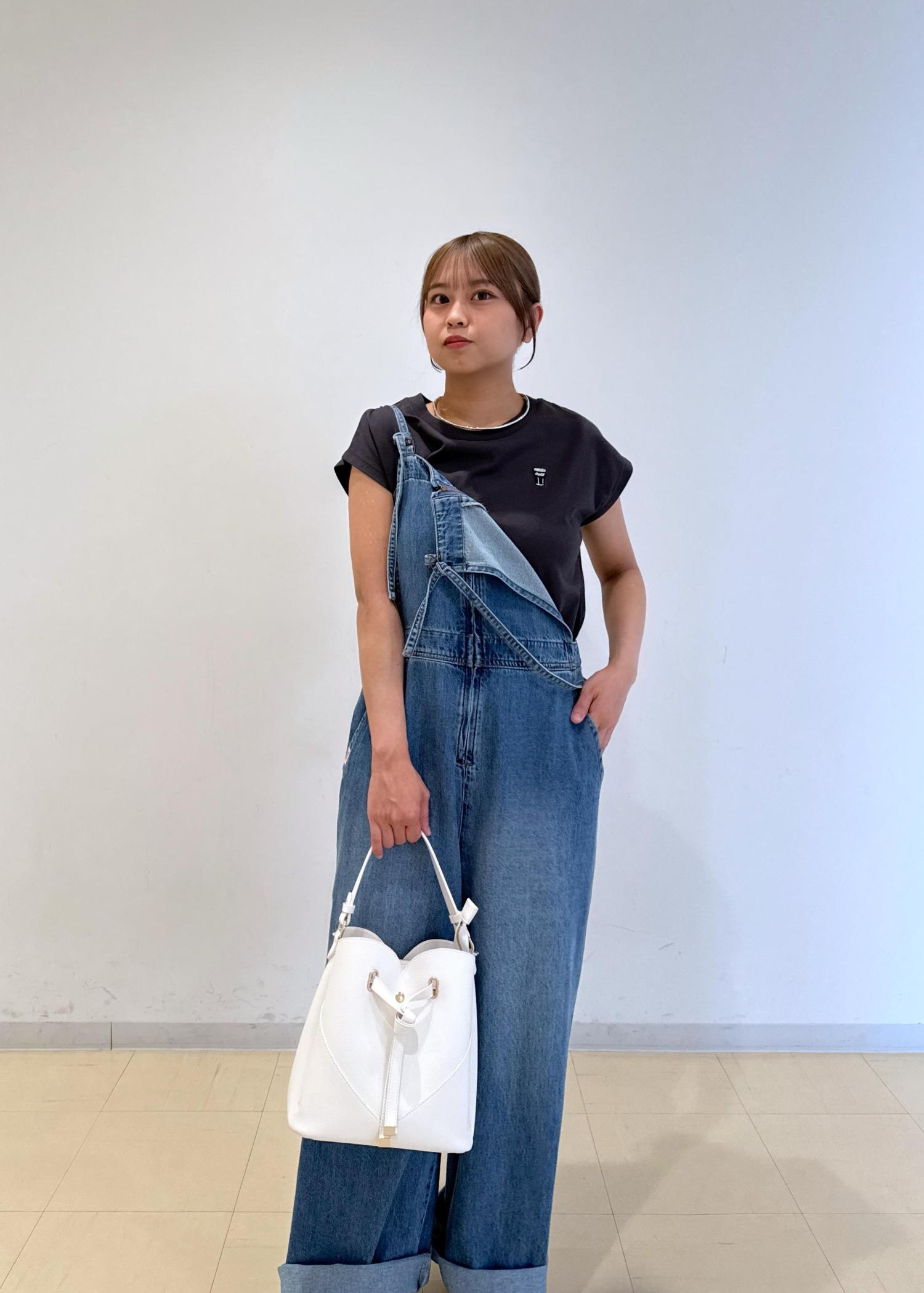 カバンをハートカットバッグにすることで少し甘さもたし、カジュアルになりすぎないように意識しました◎