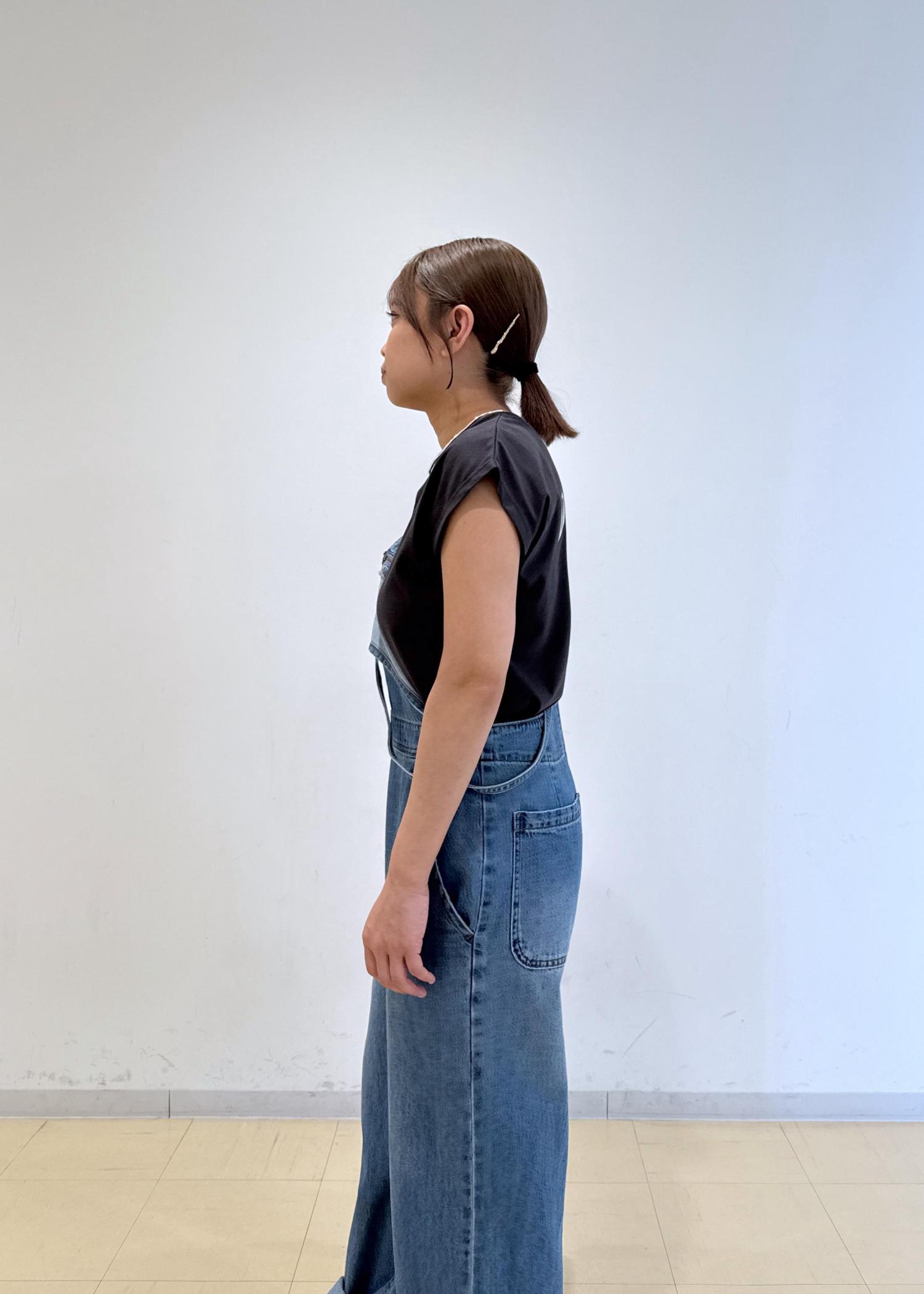 グレーのTシャツにサロペットを合わせたメンズライクコーデにしてみました!
