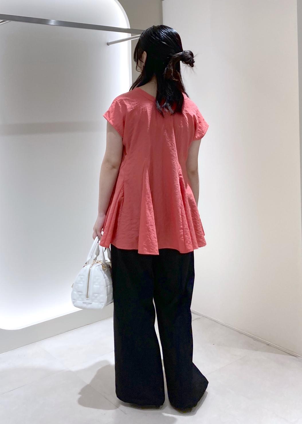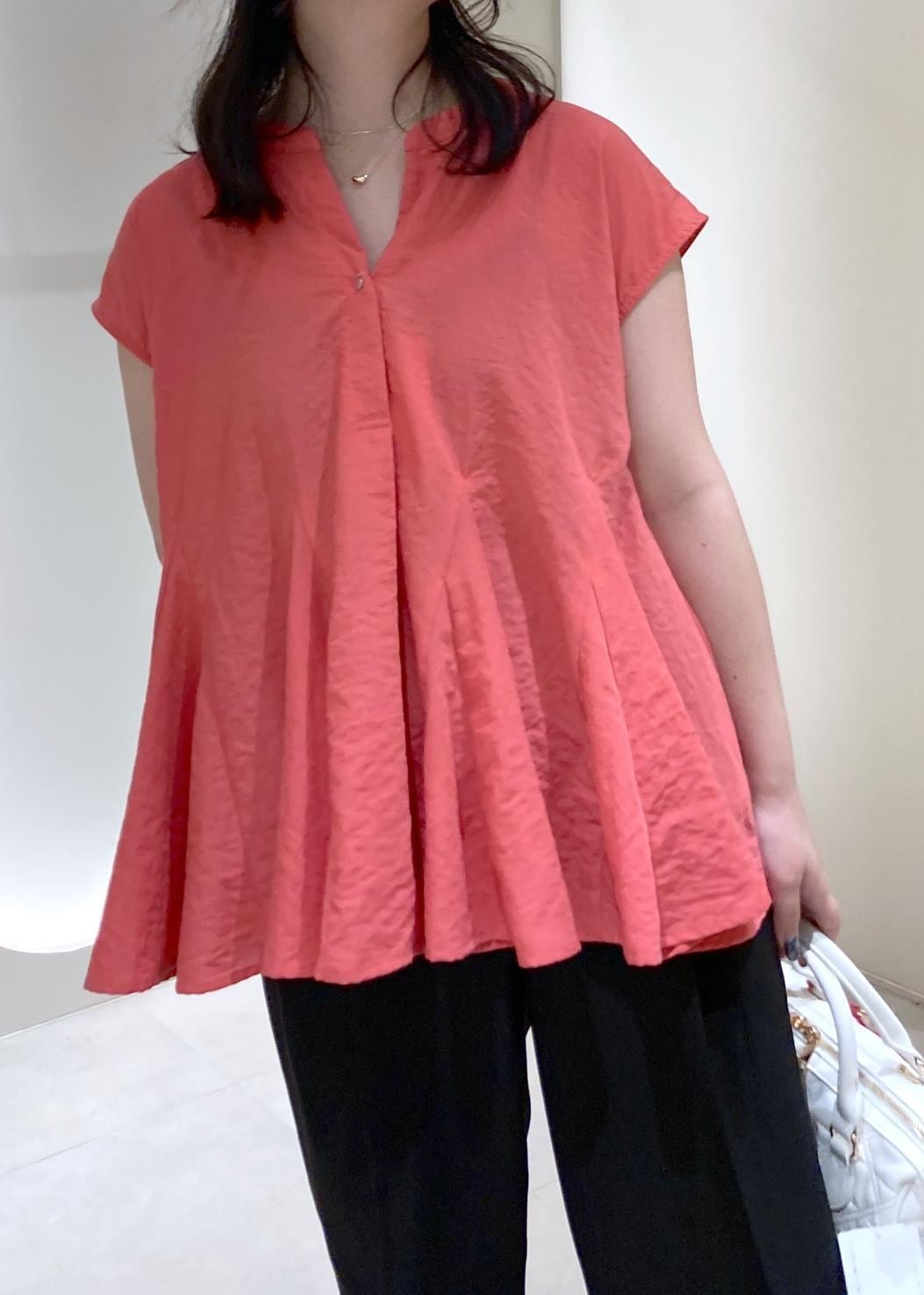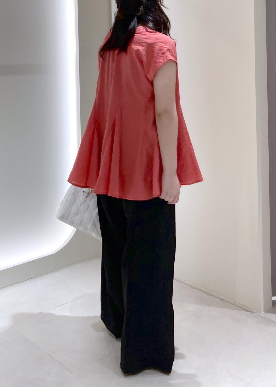 アウトレットVIS【防シワ/洗える】スキッパーフレアブラウスレッド系 / F¥3,293
