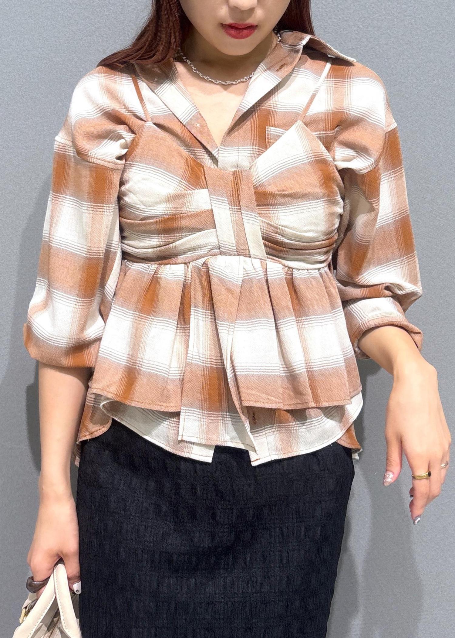 VISオンブレチェックリボンビスチェベージュ系 / F¥4,391レビュー柔らかくて薄く、肌触りの良い生地です。