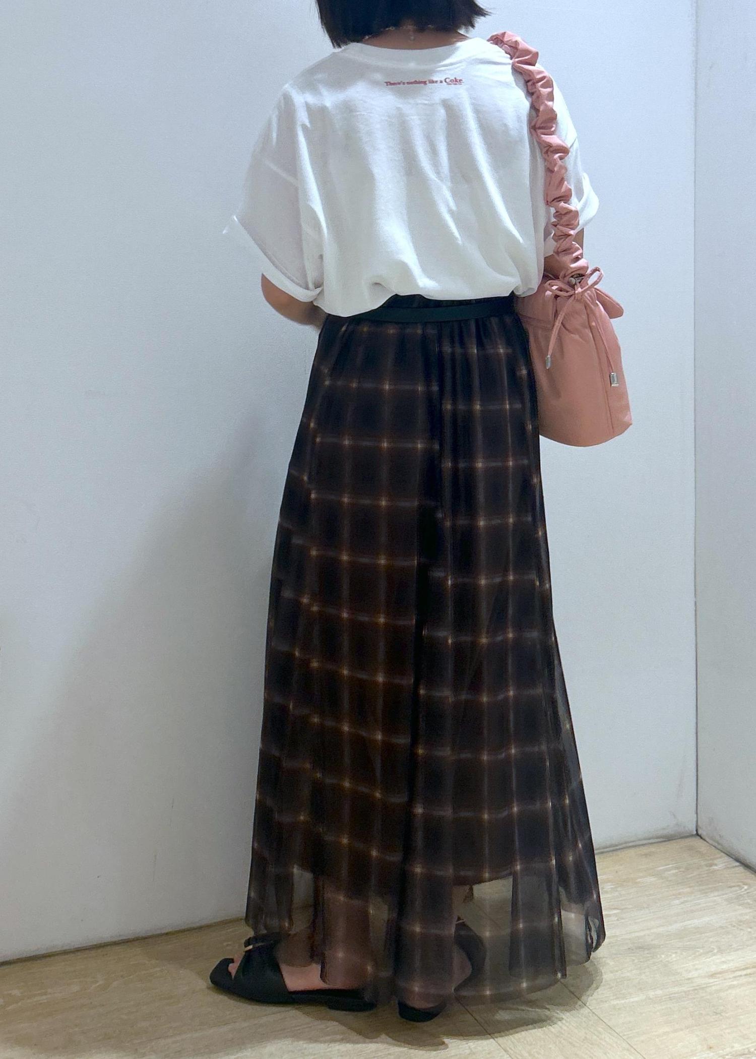 VIS【洗える】チュールプリントチェックスカートダークブラウン系 / F¥4,612レビューチュールにチェック柄がプリントされているので、シアー感がかわいいスカートです。1サイズですがちょうど良かったです。