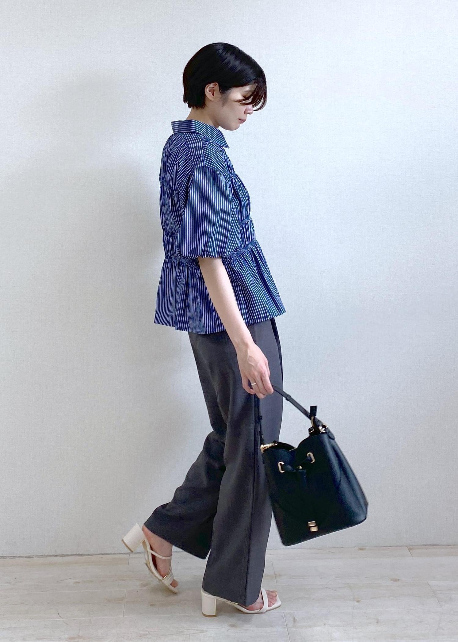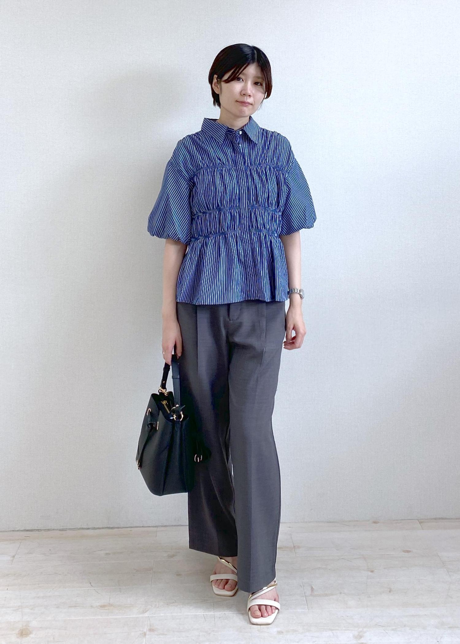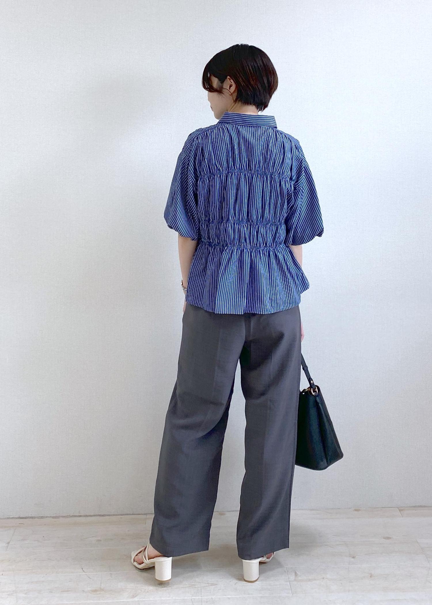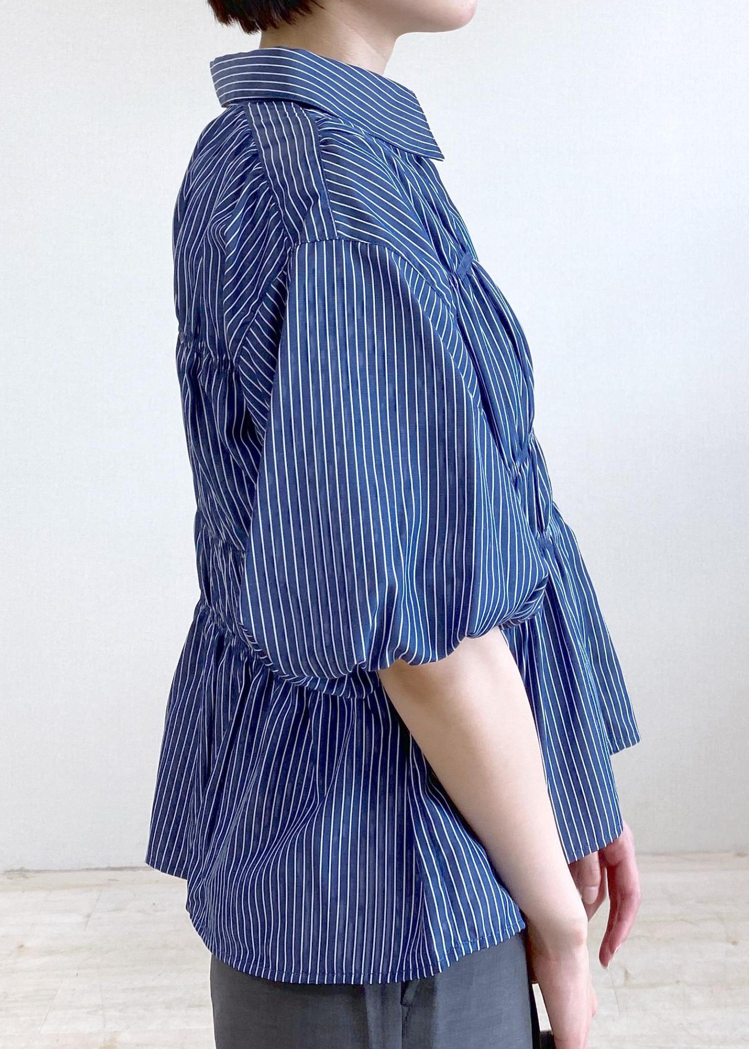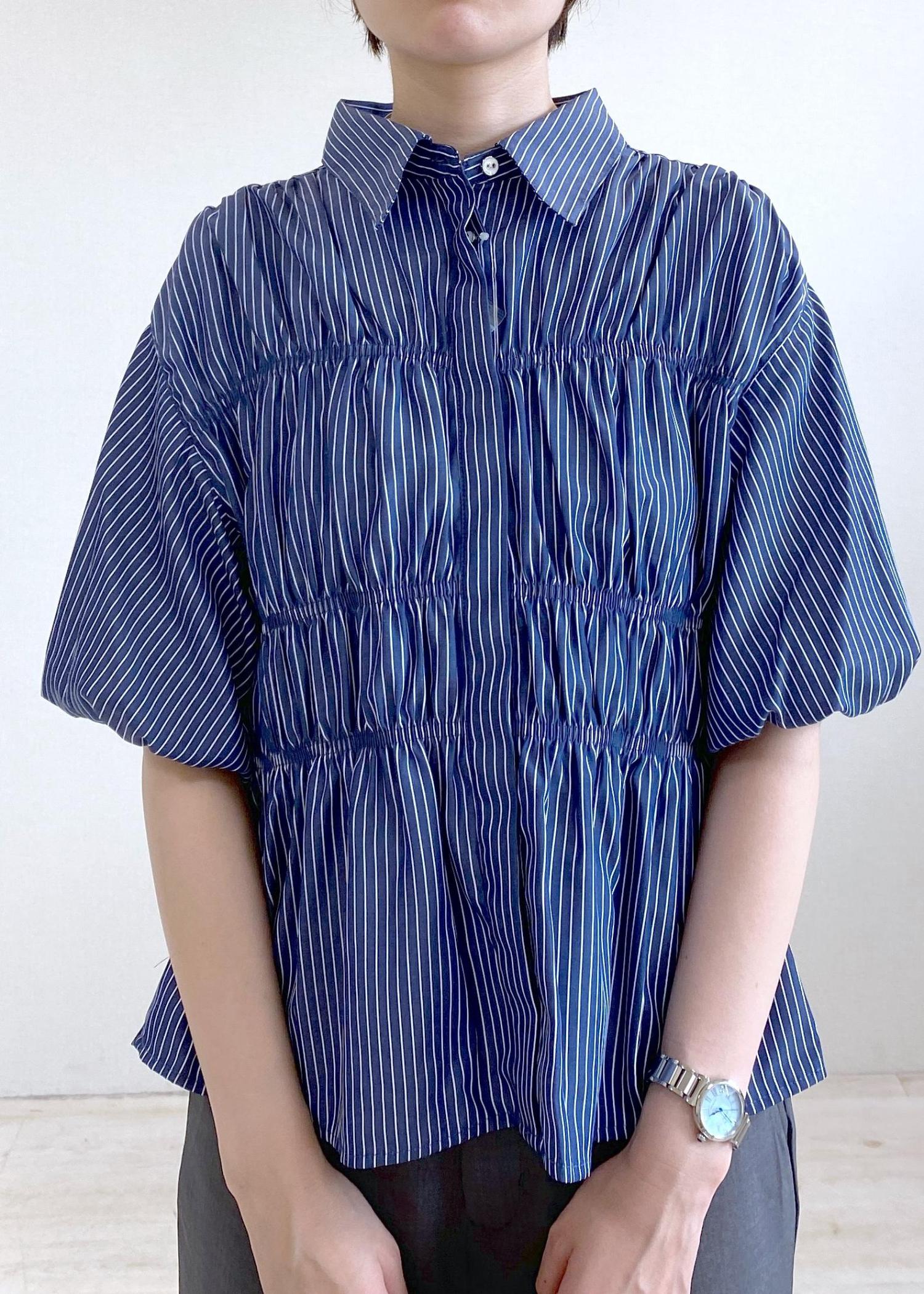 VIS【新色追加】【店頭人気】シャーリングバルーンシャツネイビー系 / F¥5,489レビューシャーリングデザインで伸縮性あり窮屈感無く着られます。