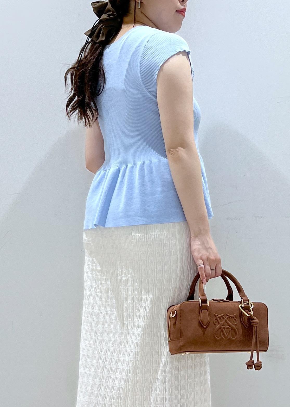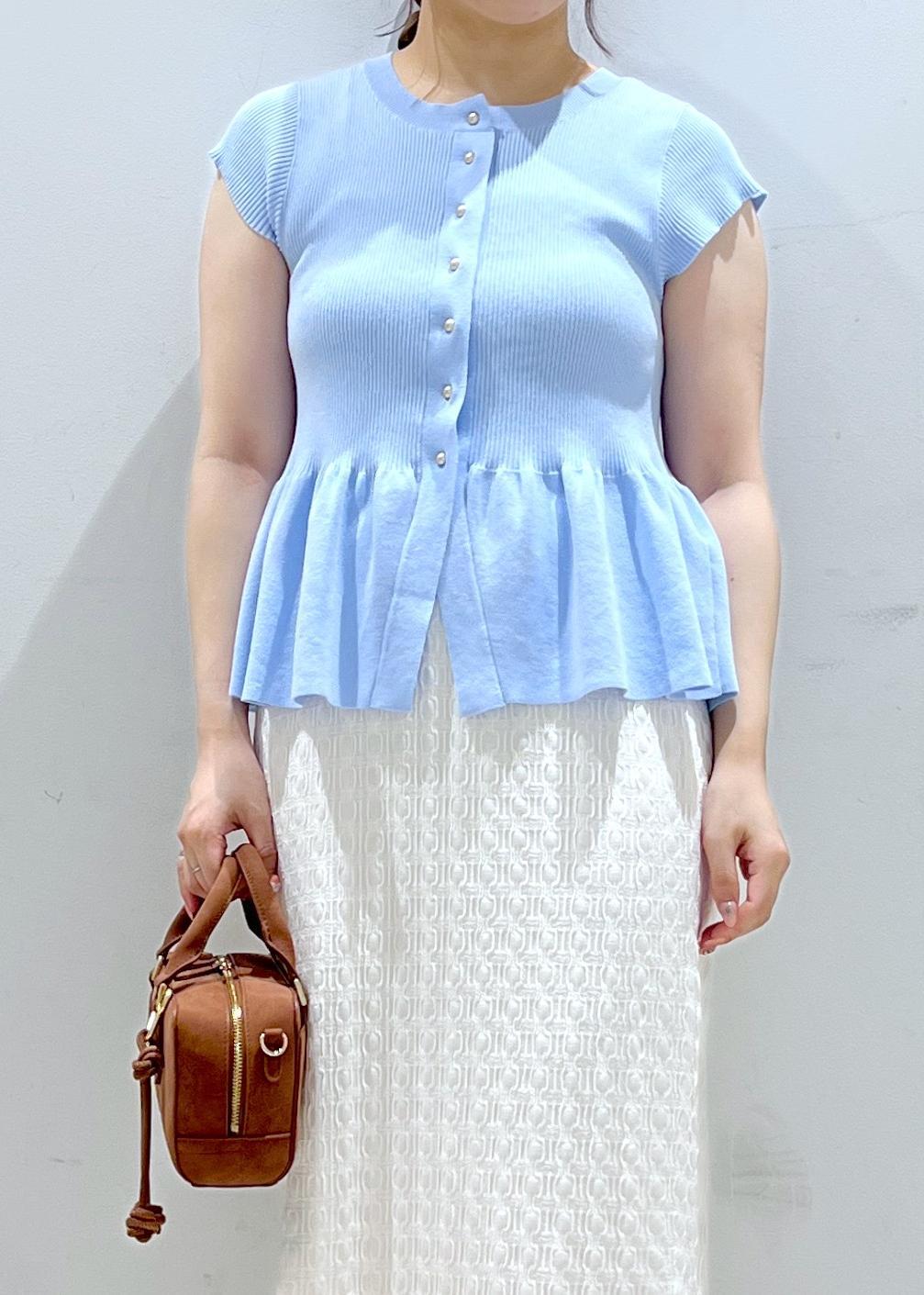 VIS【アンチピリング/洗える】美SMARTショートスリーブペプラムニットサックス / F¥5,489レビュー人気のペプラムカーディガンのフレンチスリーブタイプです!