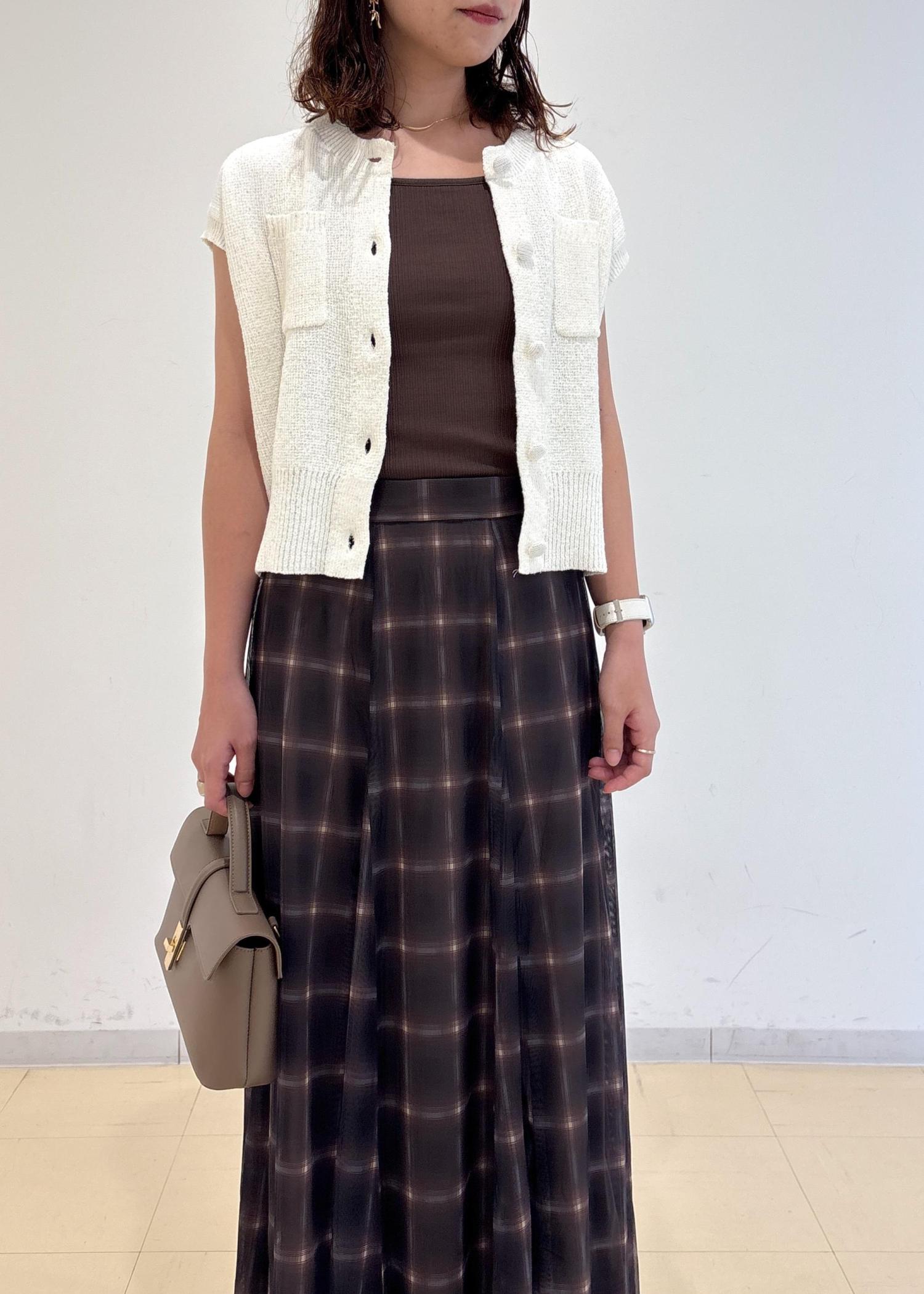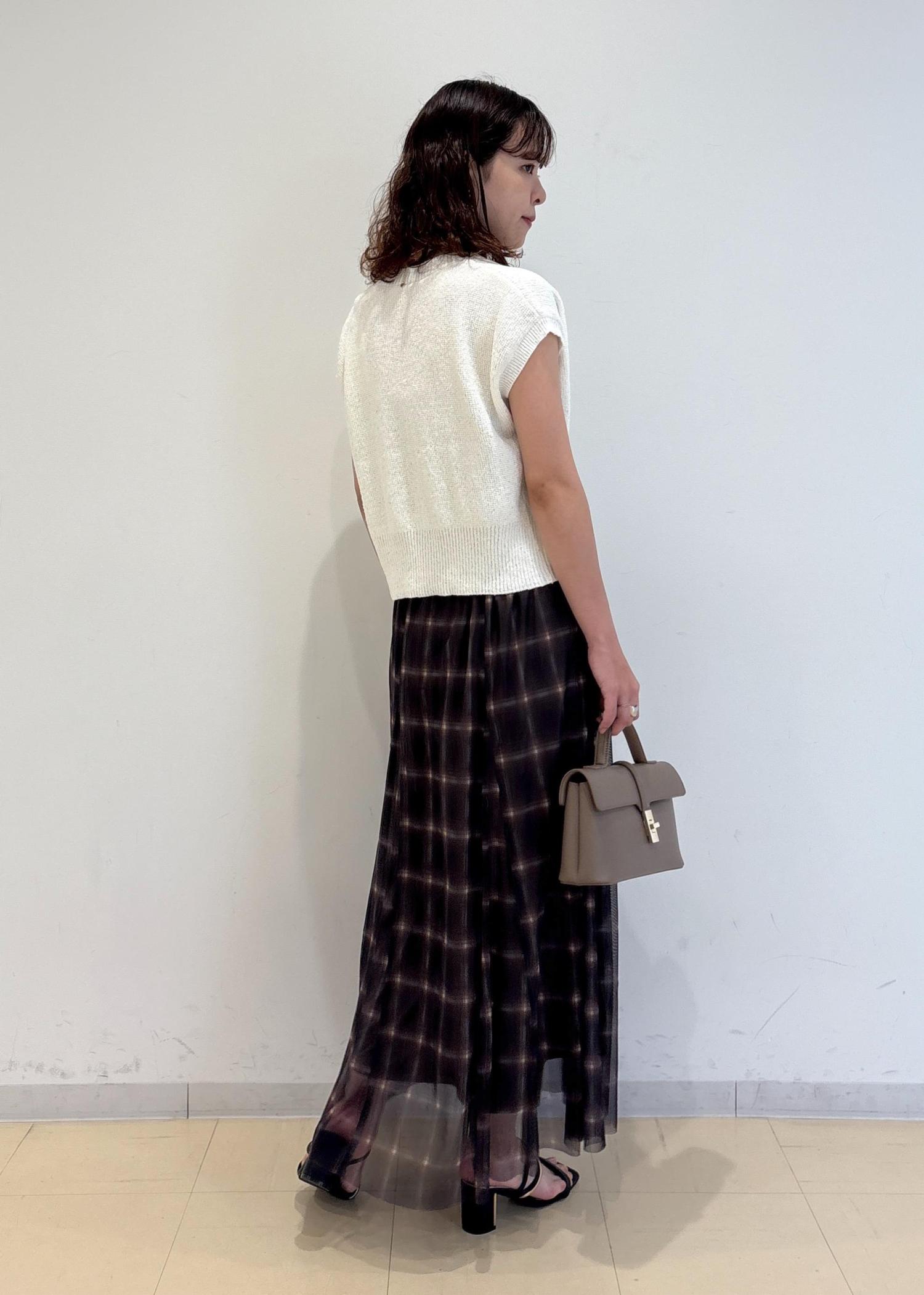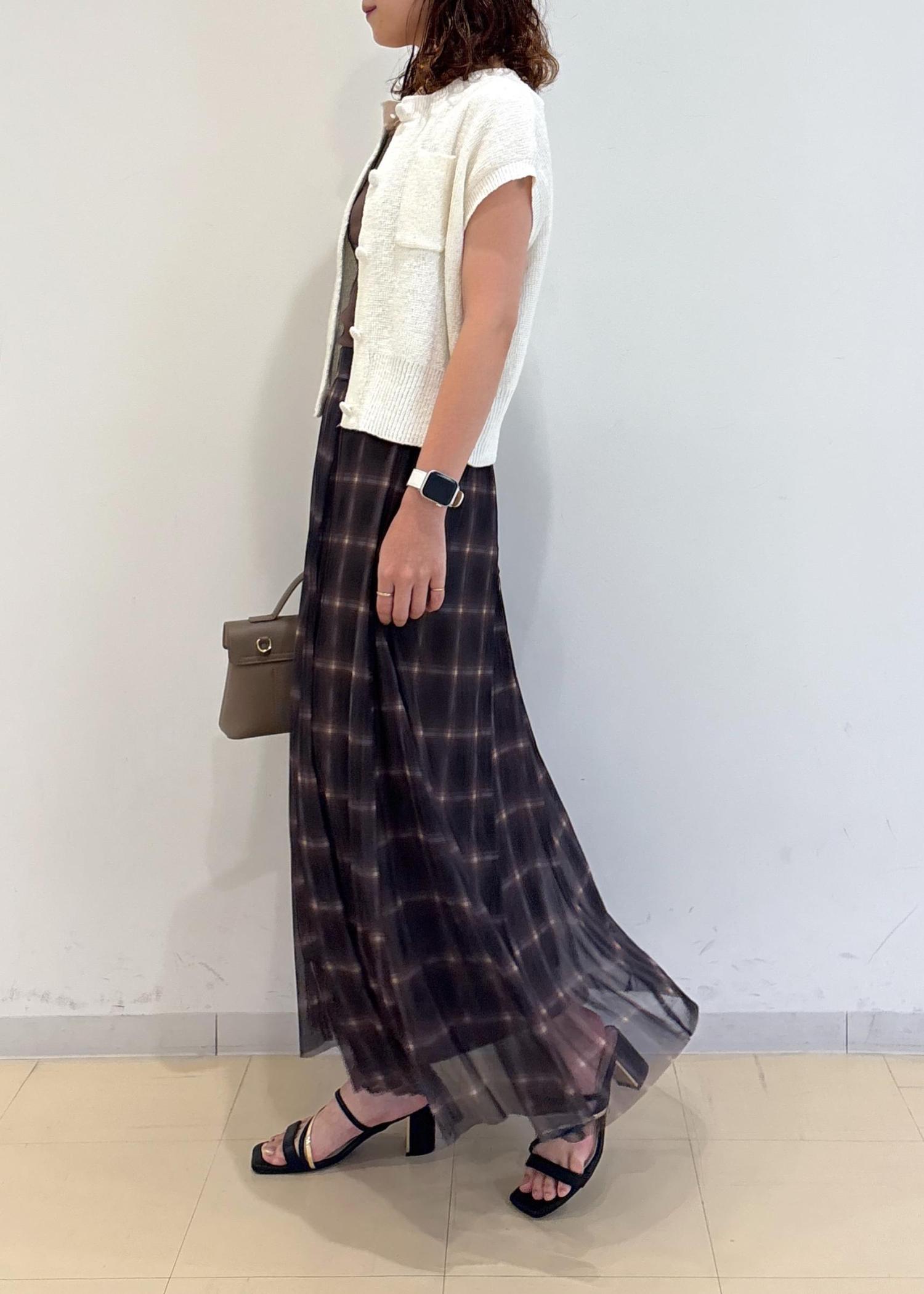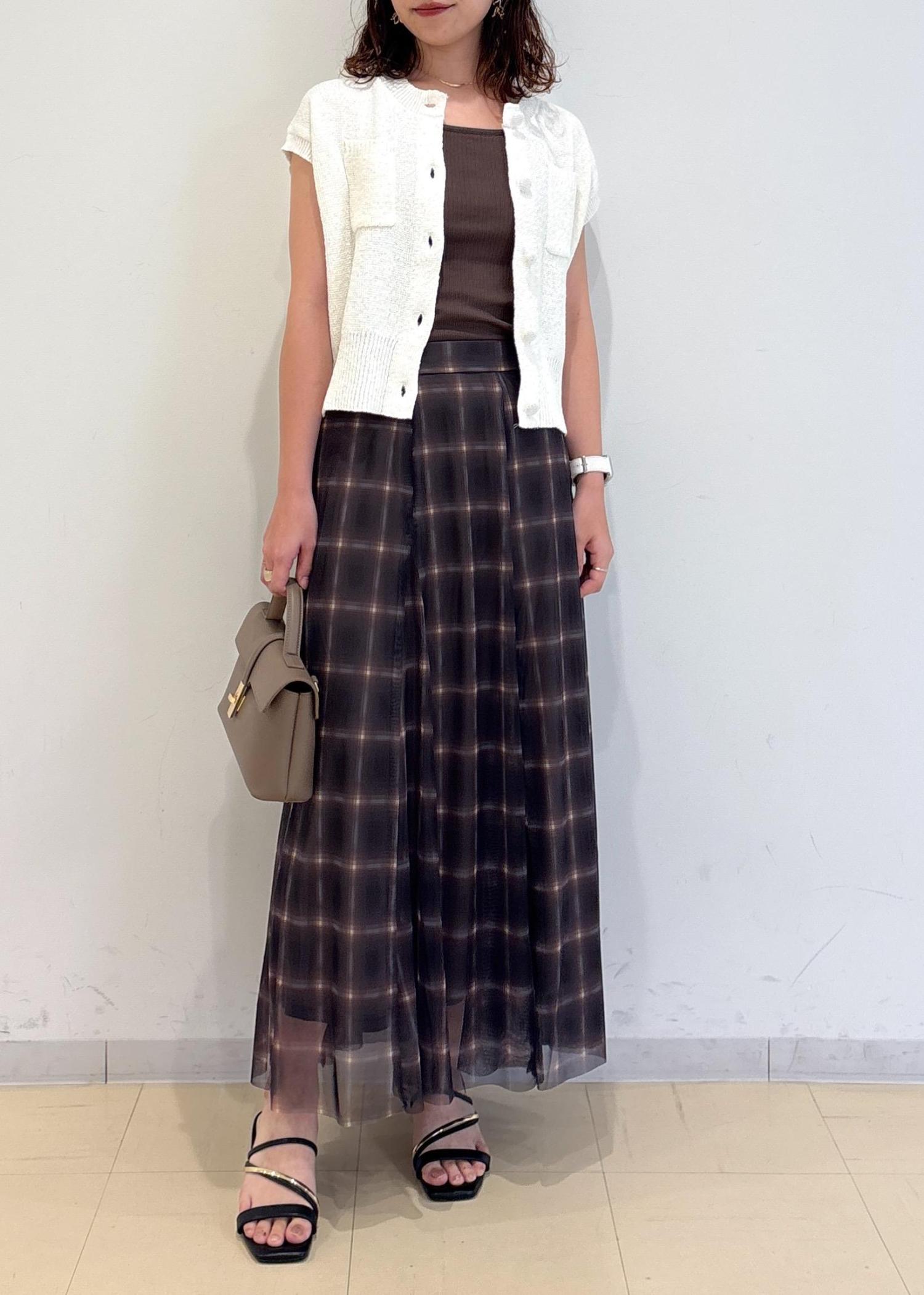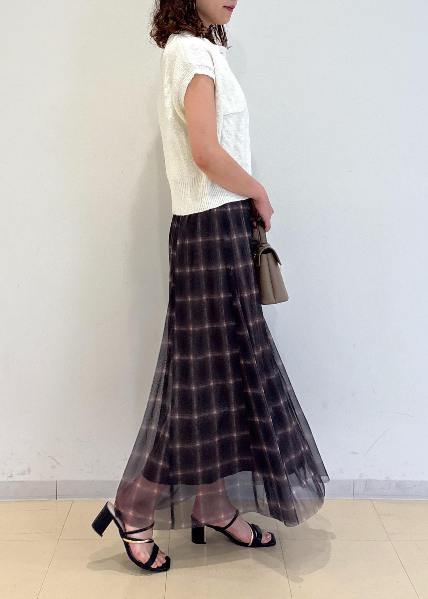 VIS【洗える】チュールプリントチェックスカートダークブラウン系 / F¥4,612レビュー160センチ着用で足首にかかる程の丈感です。