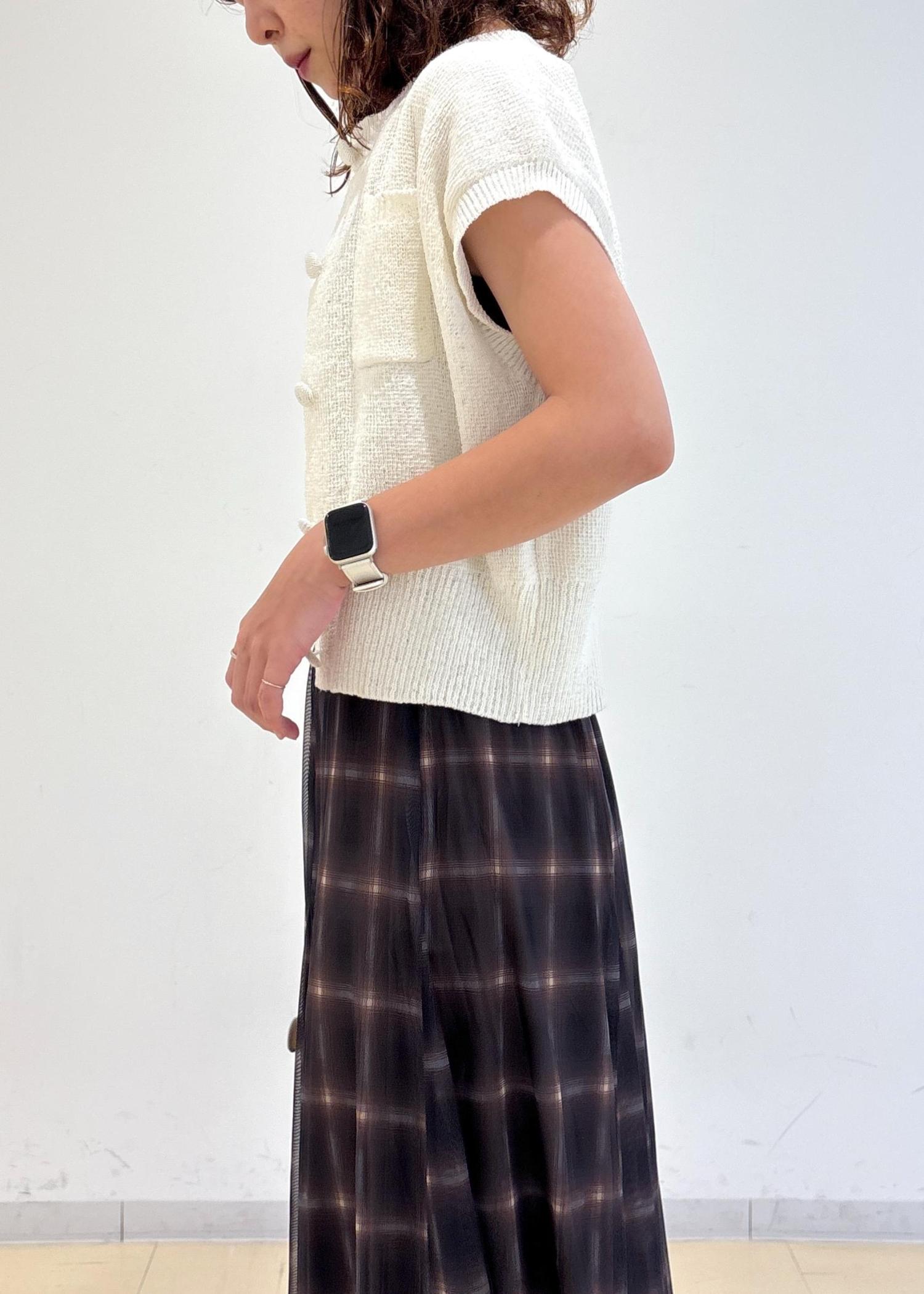 VISくるみ釦ニットトップスカーデ/洗えるオフホワイト / F¥4,939レビューおへそが隠れる程の丈感でコンパクトな印象です◎