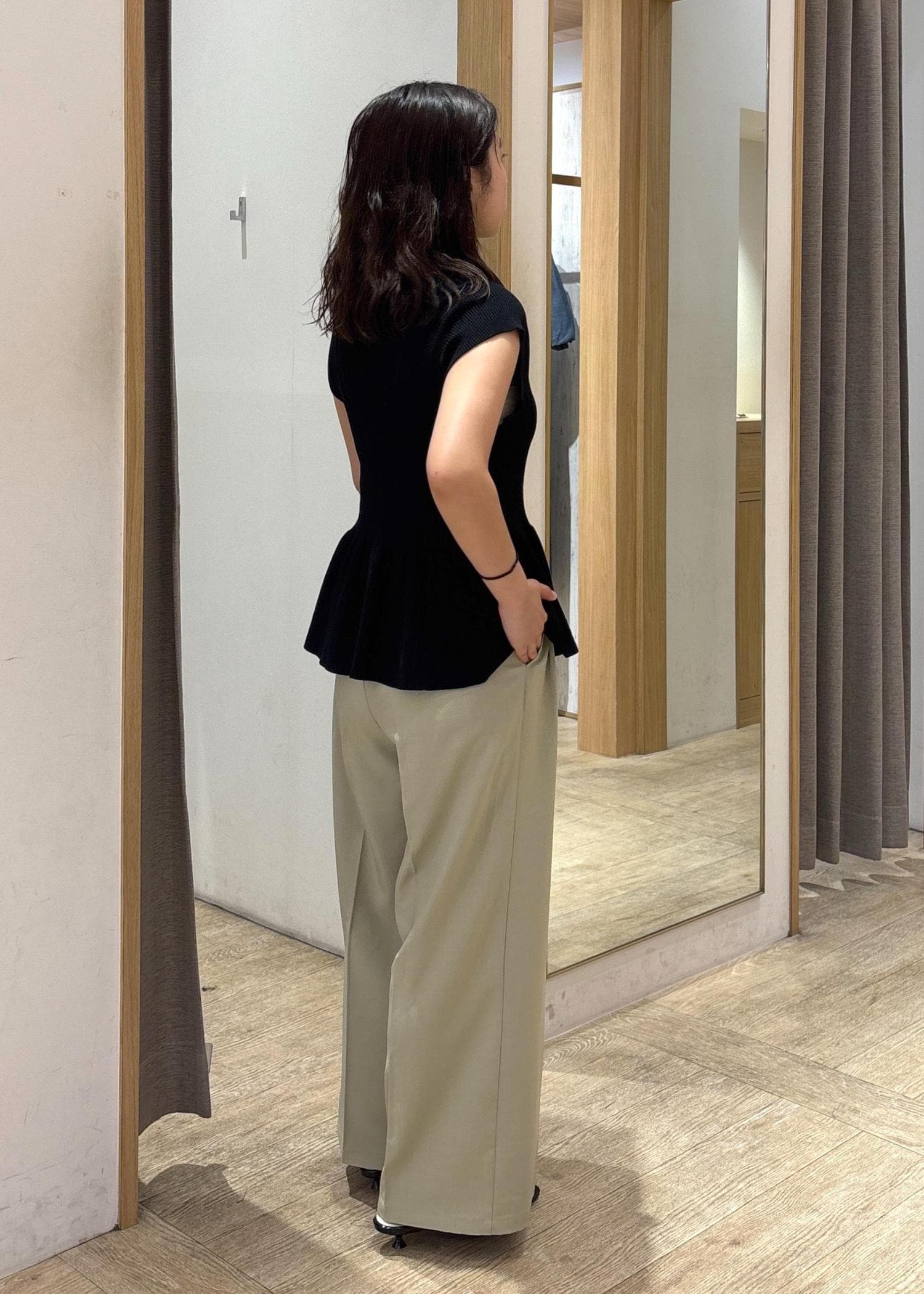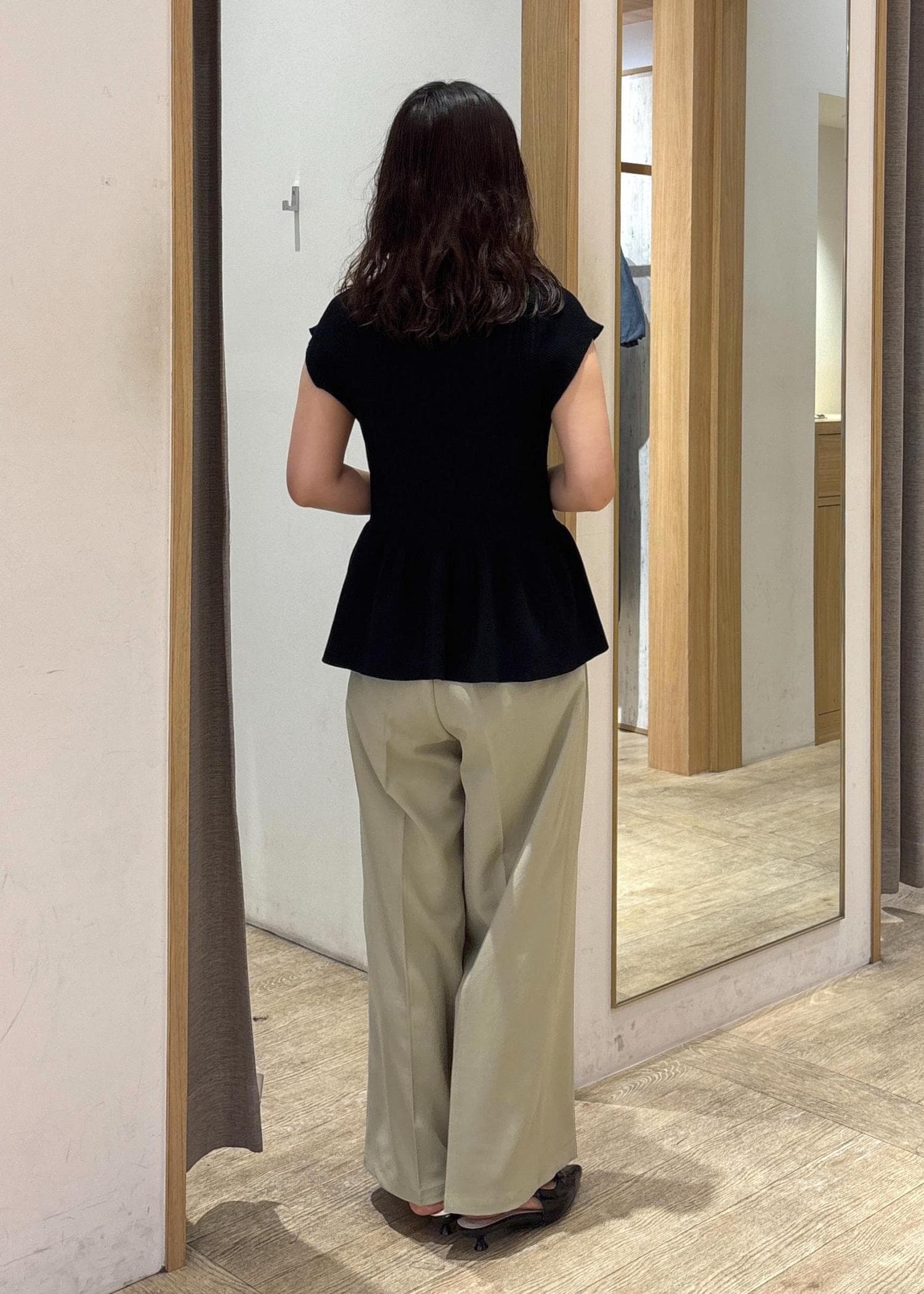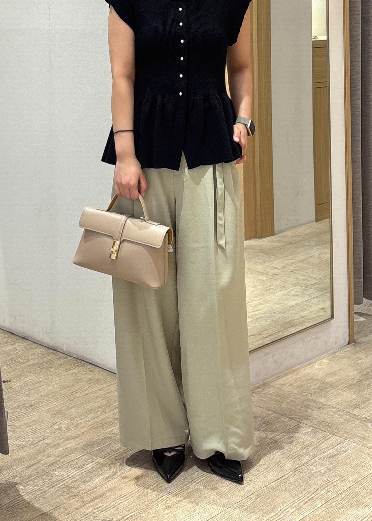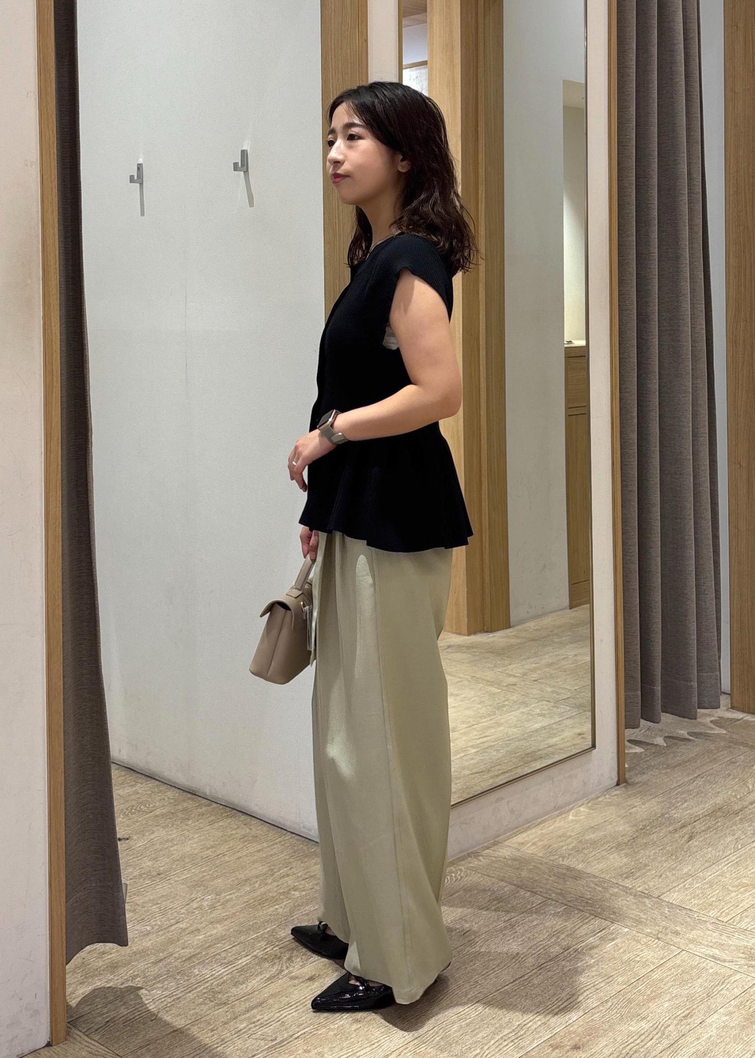 テロンとした落ち間のある素材で広がりすぎず、低身長さんもワイドパンツをスッキリ着られるアイテムです☺︎