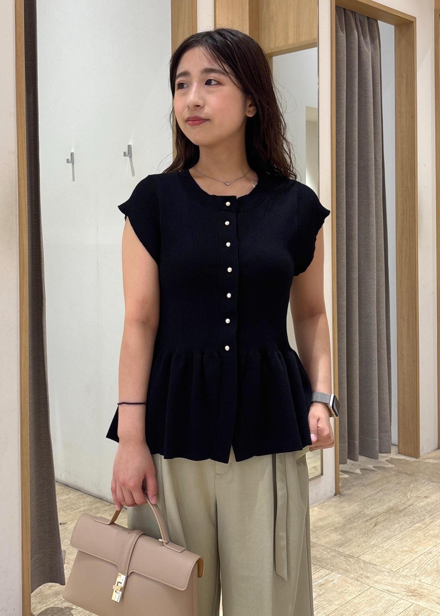 VIS【アンチピリング/洗える】美SMARTショートスリーブペプラムニットブラック / F¥5,489レビューお尻と骨盤をカバーする着丈感ですが、前方の裾はVカットで抜け感があるので骨格ウェーブも長めの丈感を綺麗に着こなせる!