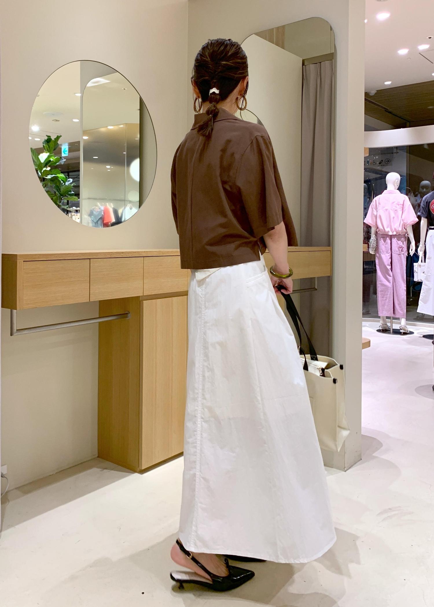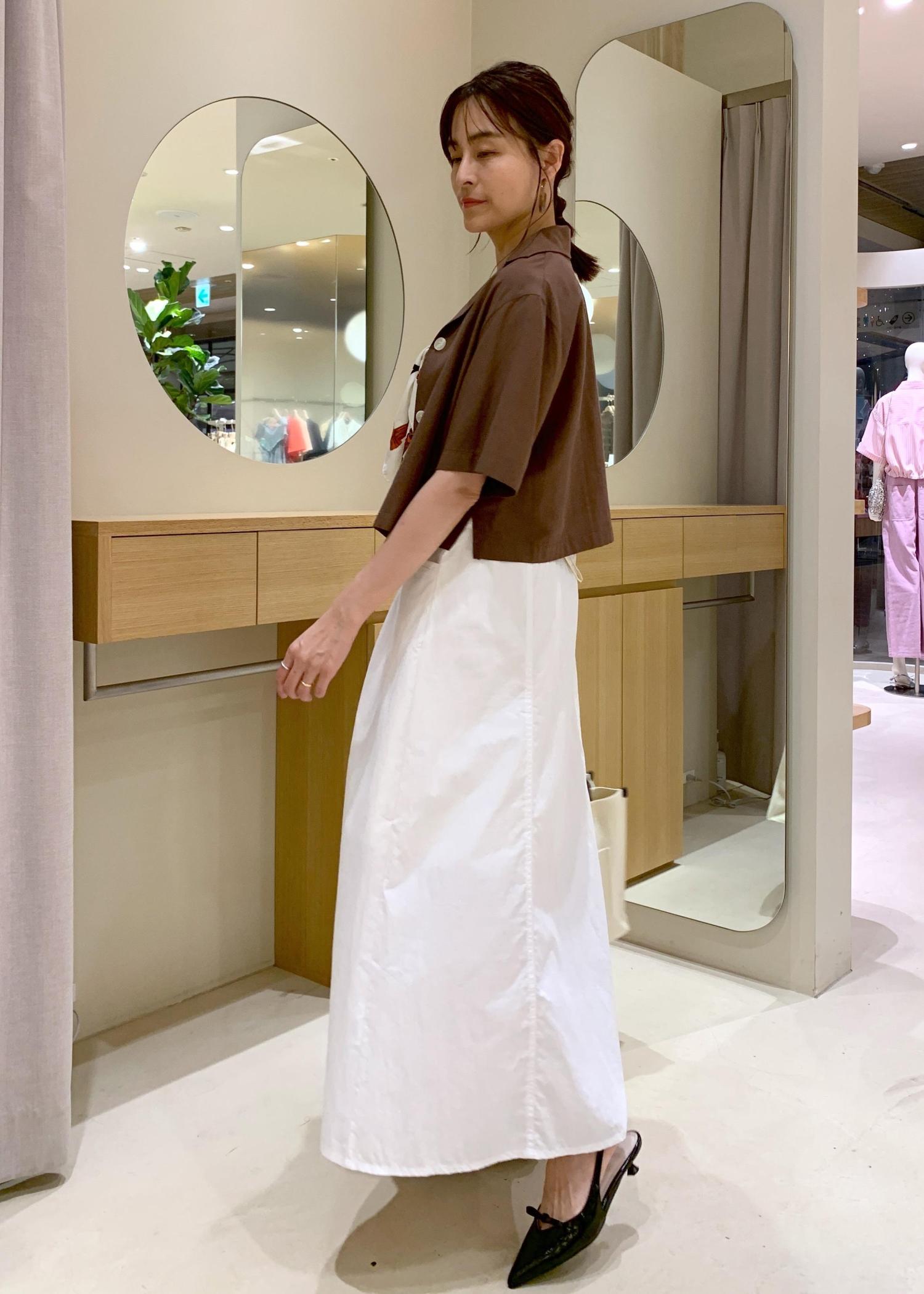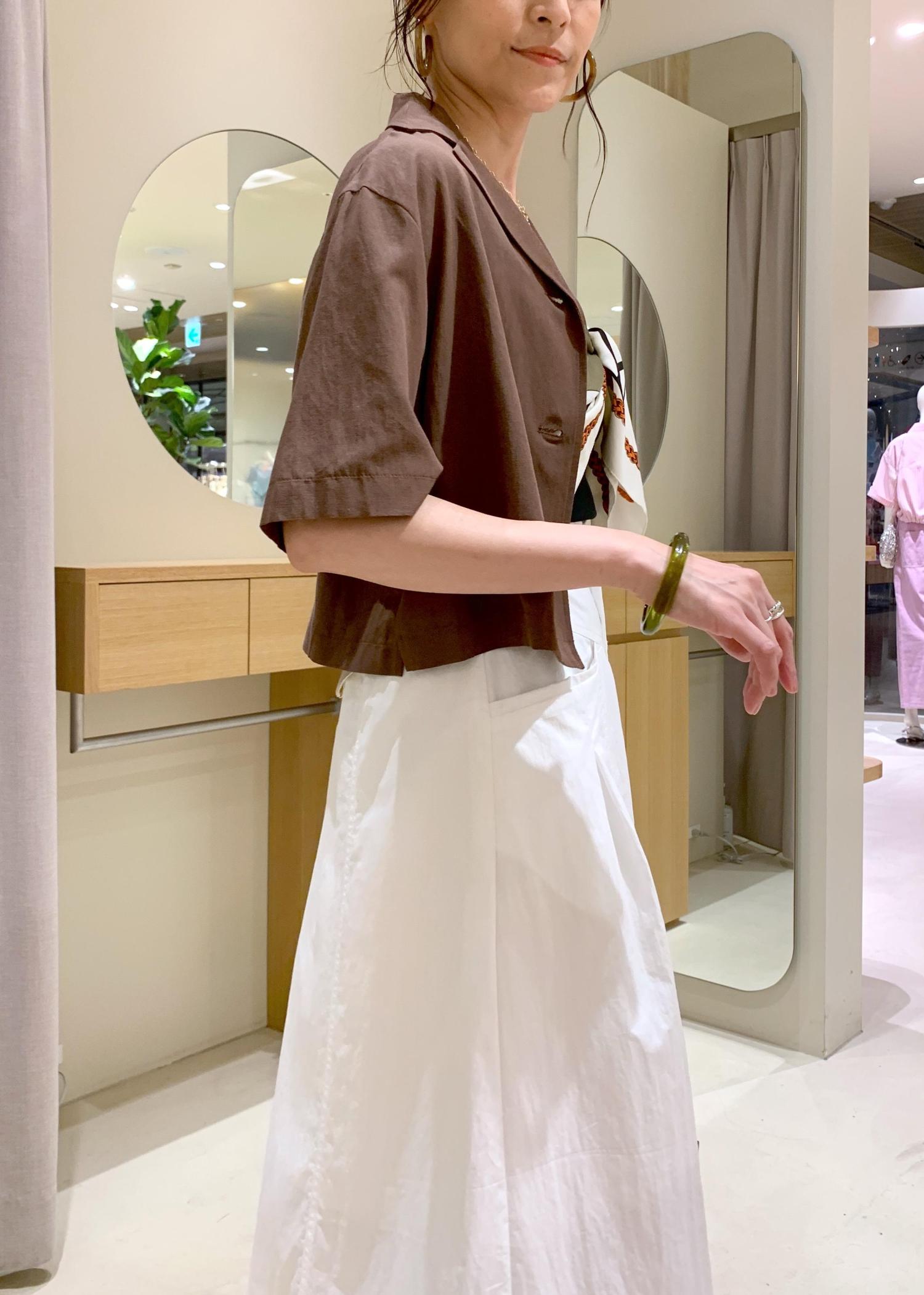 着丈は少し短めなので、ワンピースやボリューム感のあるスカートやワイドパンツなどとも相性がいいです。