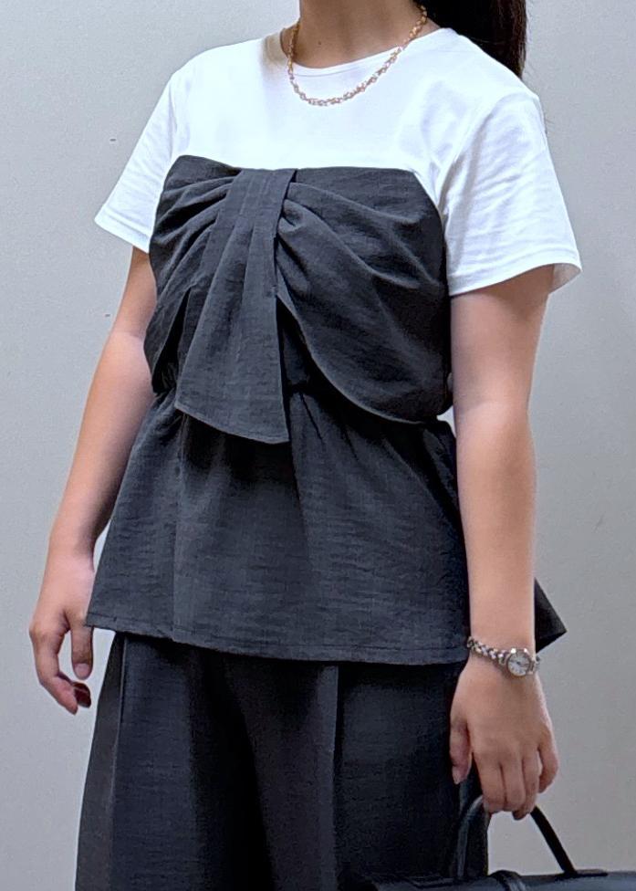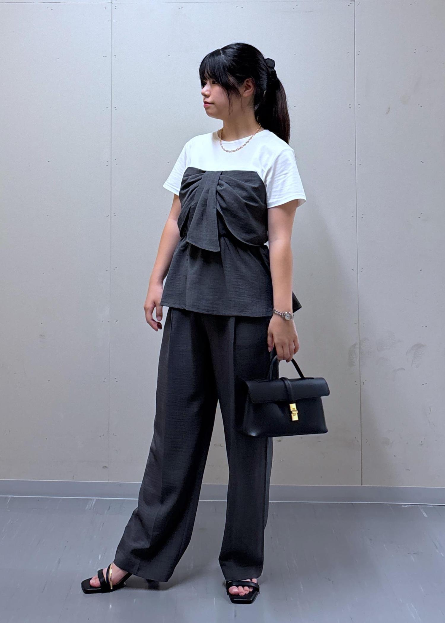 VIS【新色追加】【美easy】ねじりリボンTシャツドッキングプルオーバー【接触冷感/洗える】チャコール / F¥5,489レビュー153cmで着丈は、腰にかかるくらいです。