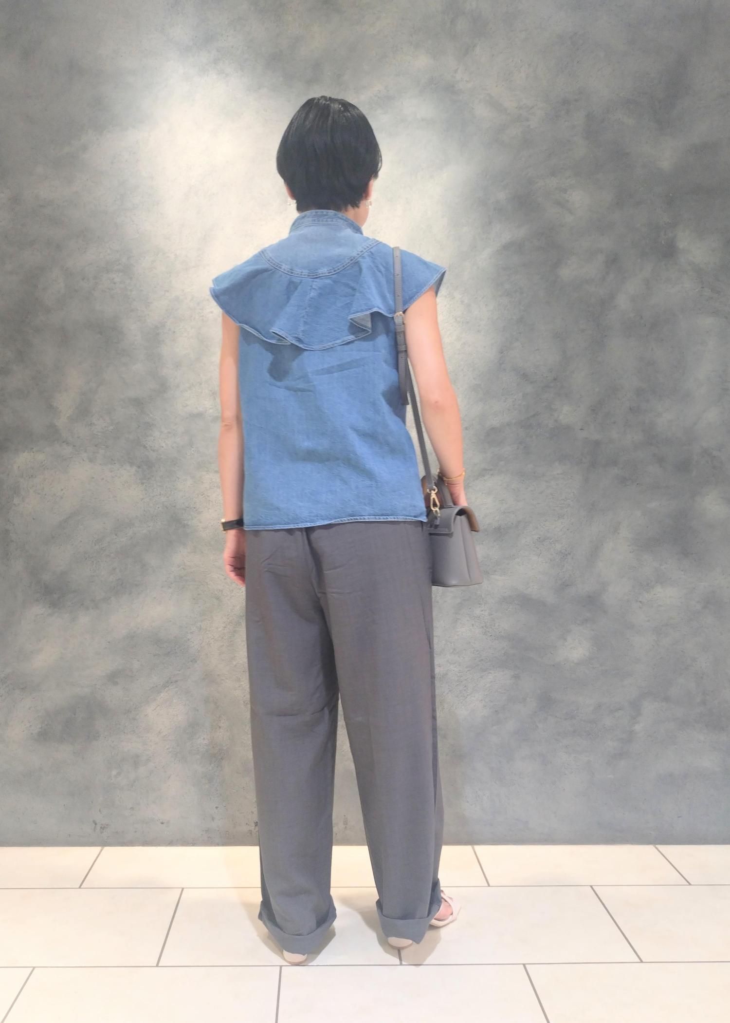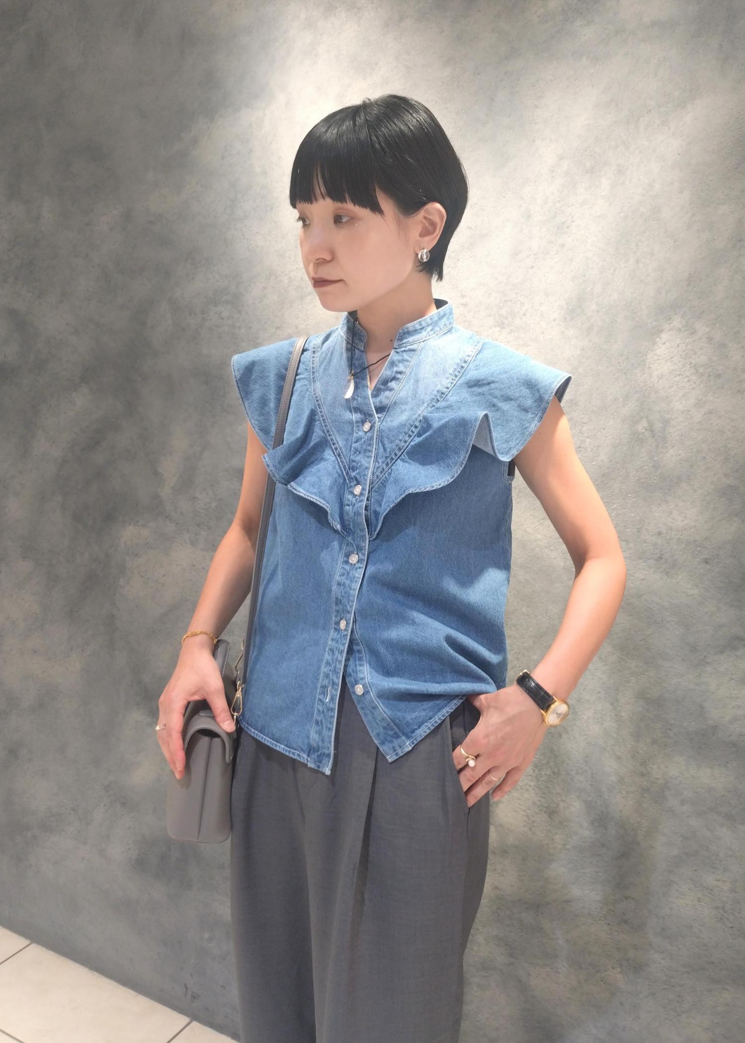 【UVケア/洗える】ラッフルデザインデニムブラウス