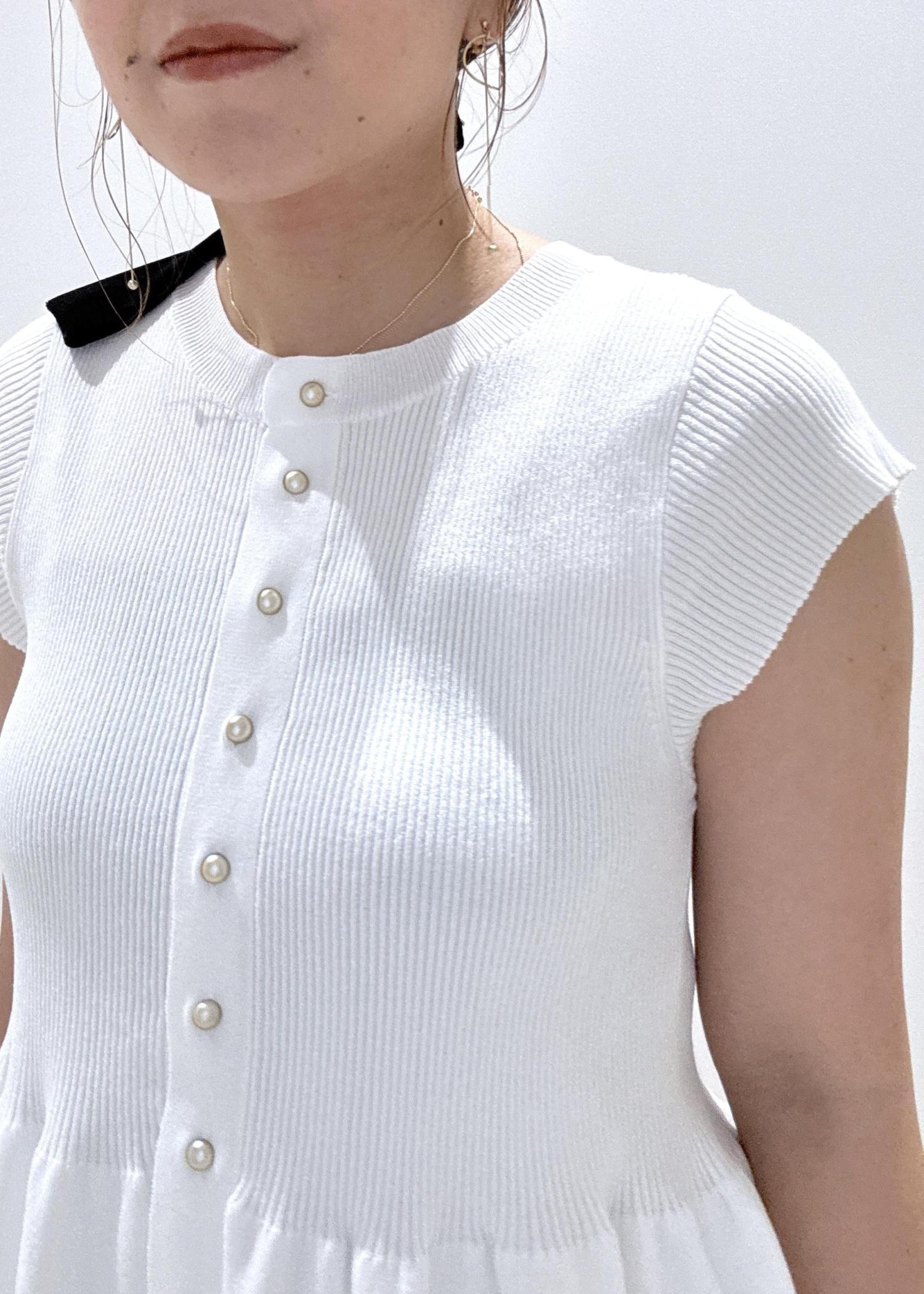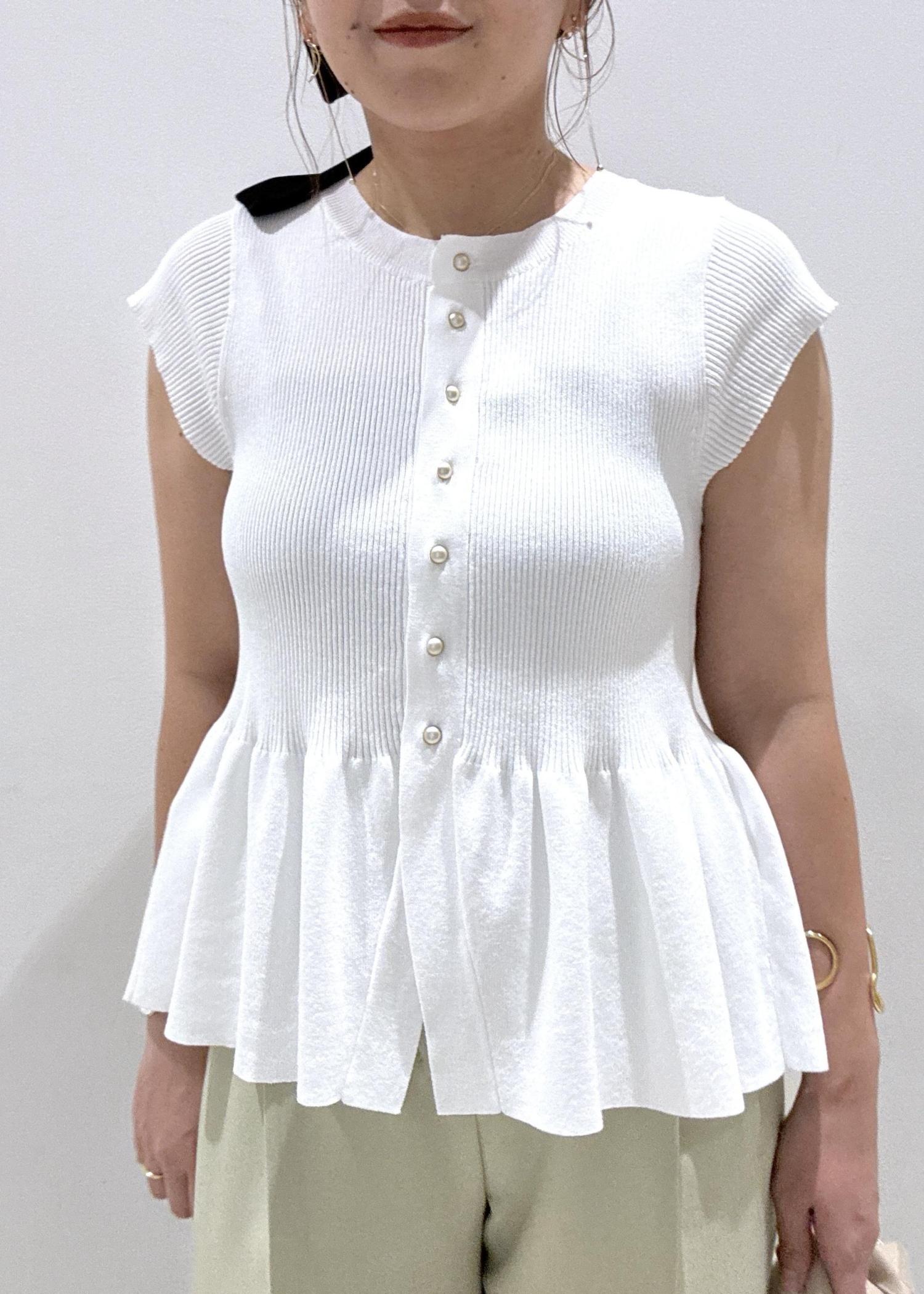 VIS【アンチピリング/洗える】美SMARTショートスリーブペプラムニットオフホワイト / F¥5,489レビュー細身の身柄にペプラムデザインがパッと映えるニットプルオーバー。