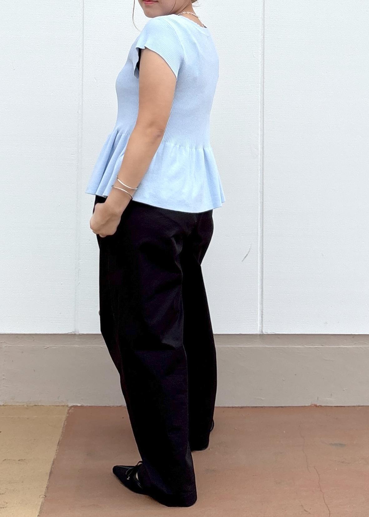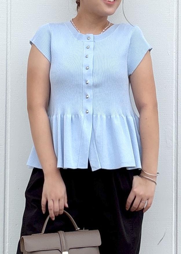 VIS【アンチピリング/洗える】美SMARTショートスリーブペプラムニットサックス / F¥5,489レビュー伸縮性があり気心地がいいニットです!