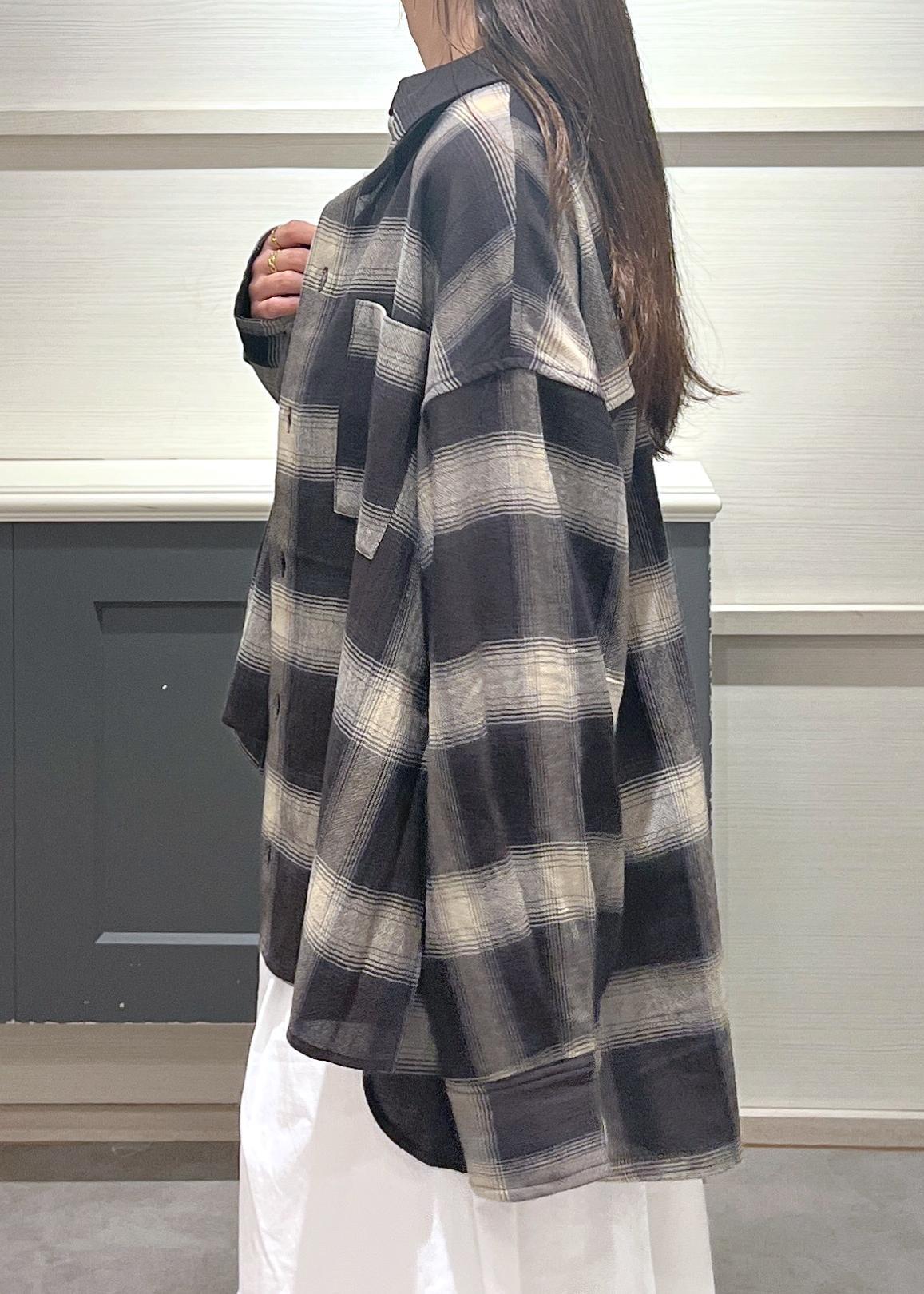 VISオンブレチェックオーバーシャツブラック系 / F¥6,589レビュー156cmでヒップがしっかり隠れる丈感です!