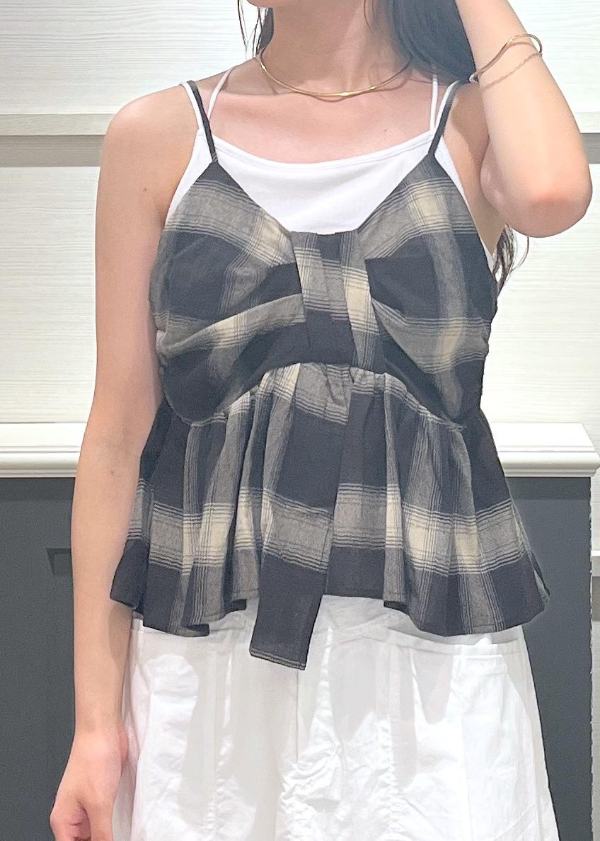 VISオンブレチェックリボンビスチェブラック系 / F¥5,489レビュー156cmで腰がしっかり隠れる丈感です!