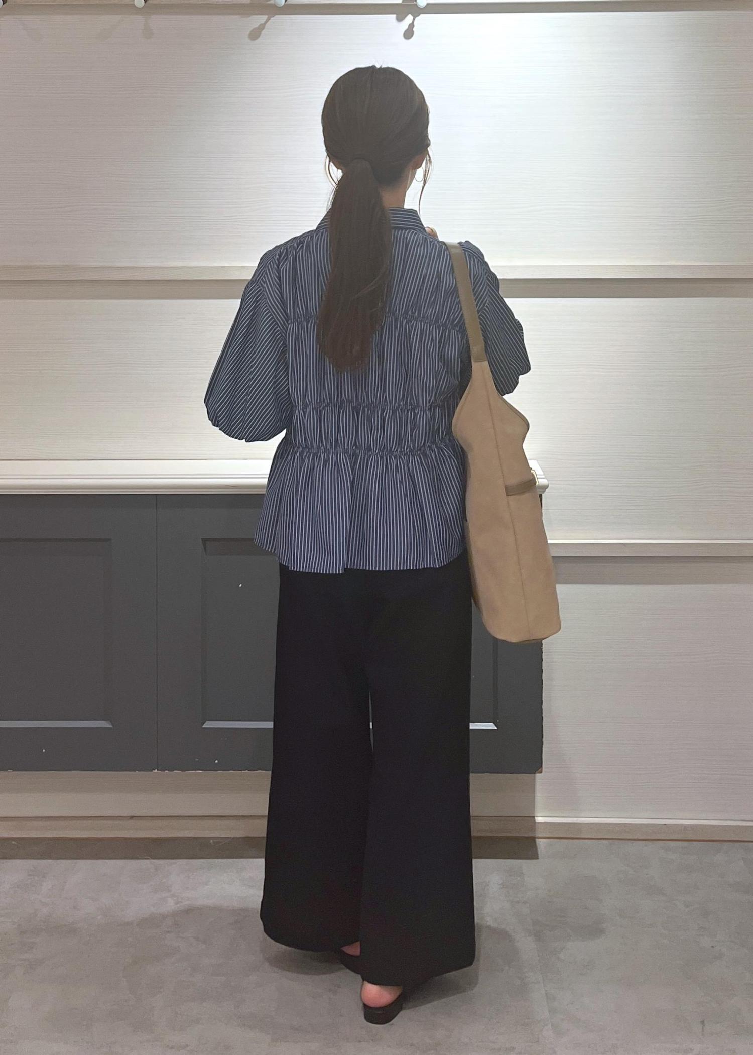 ハリのある素材でカジュアルからキレイめまで使えそうです♪ -