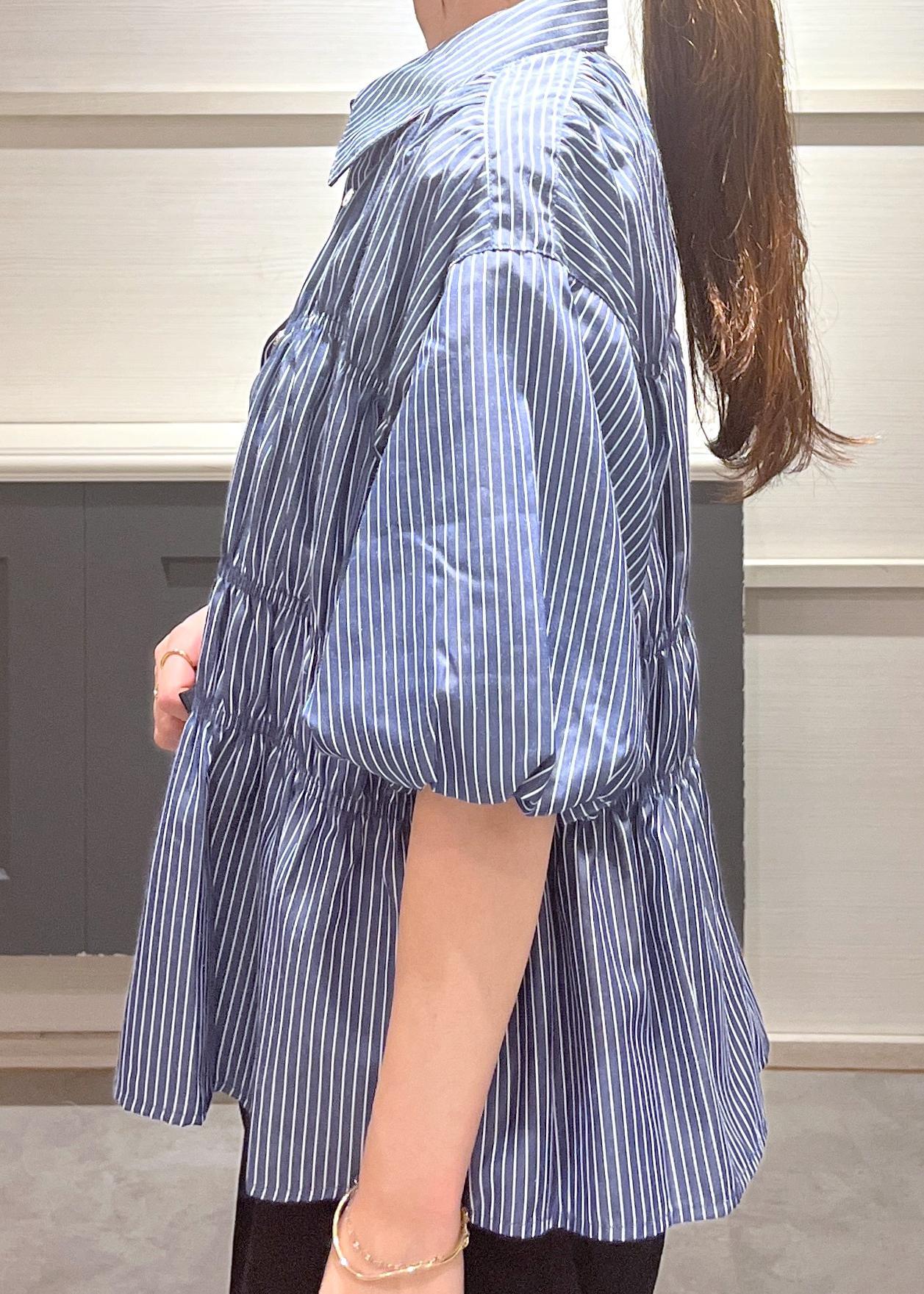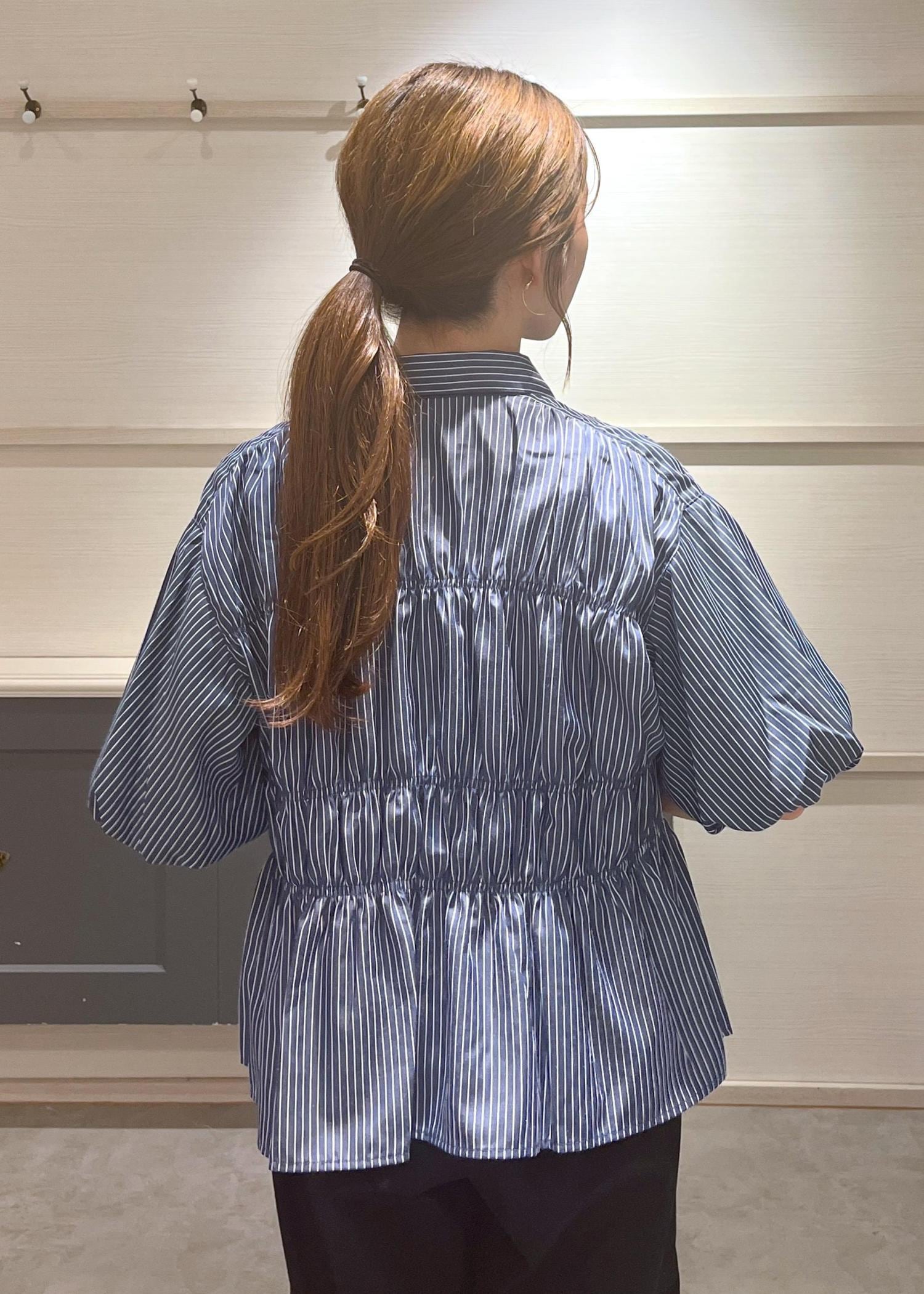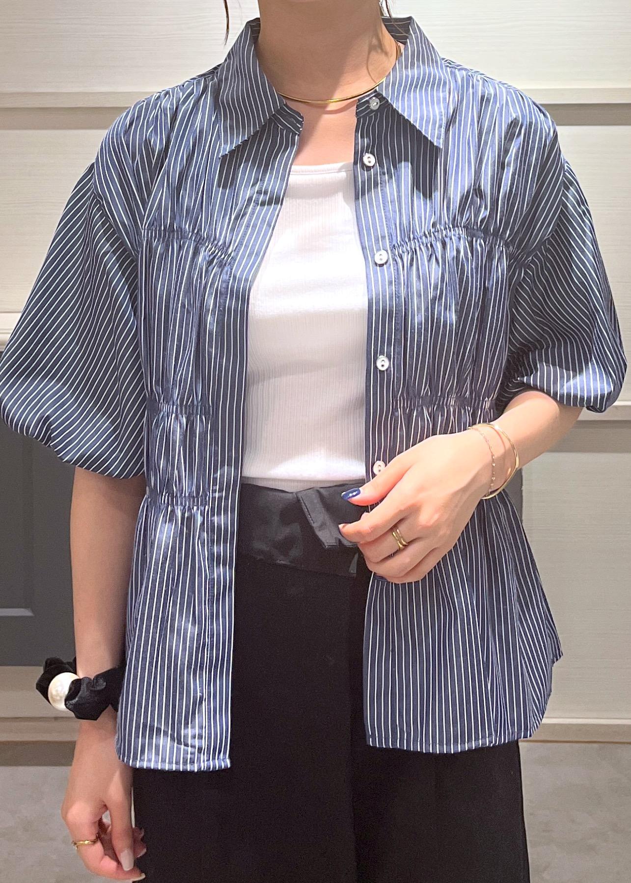 VIS【新色追加】【店頭人気】シャーリングバルーンシャツネイビー系 / F¥5,489レビュー156cmでヒップにかかる丈感です!