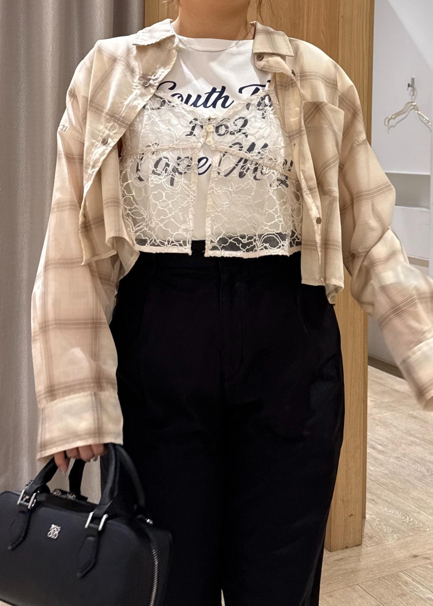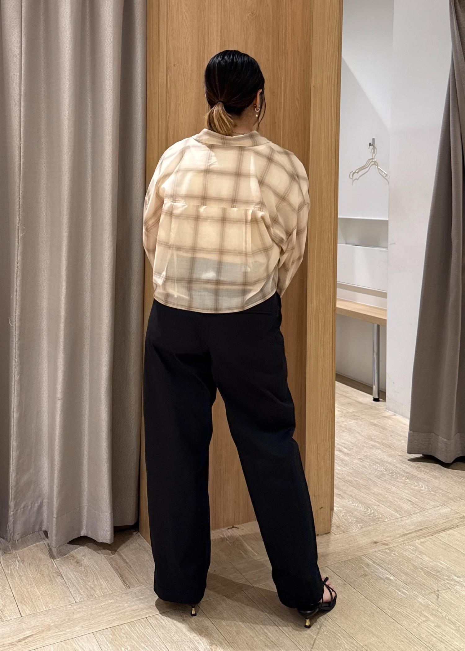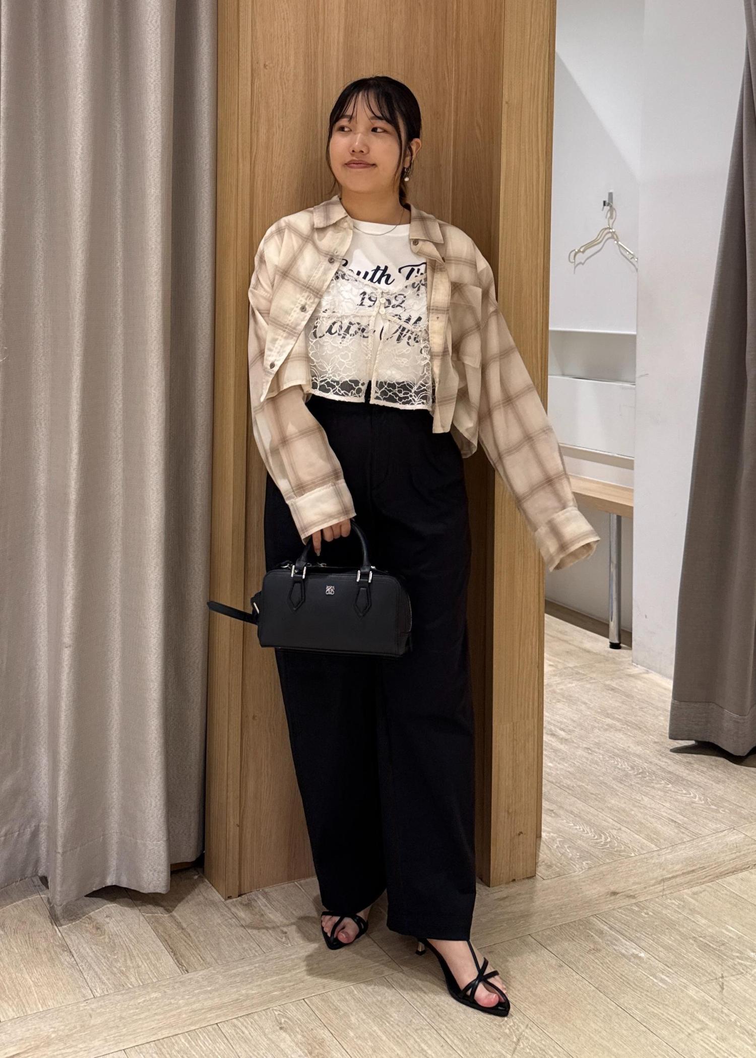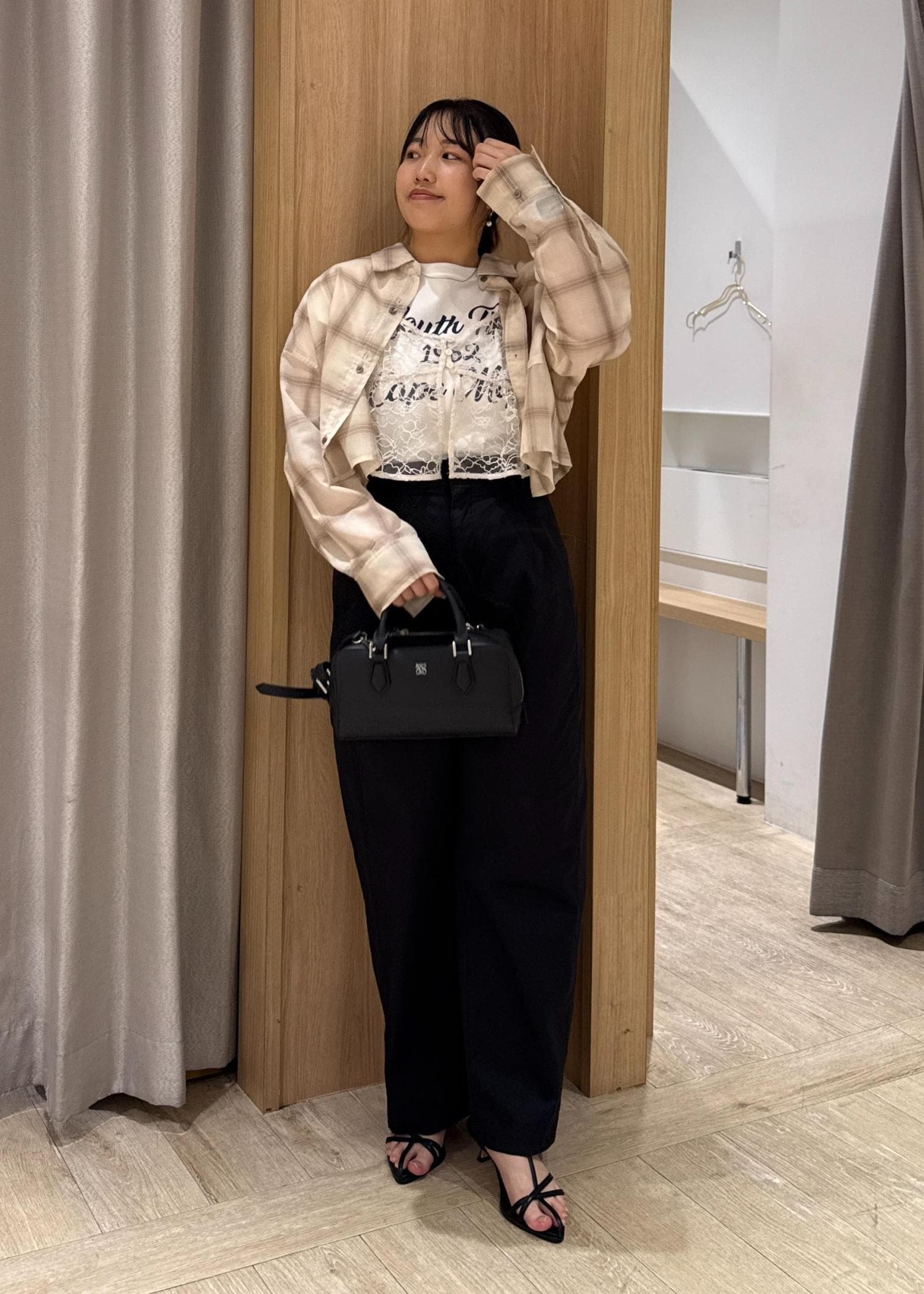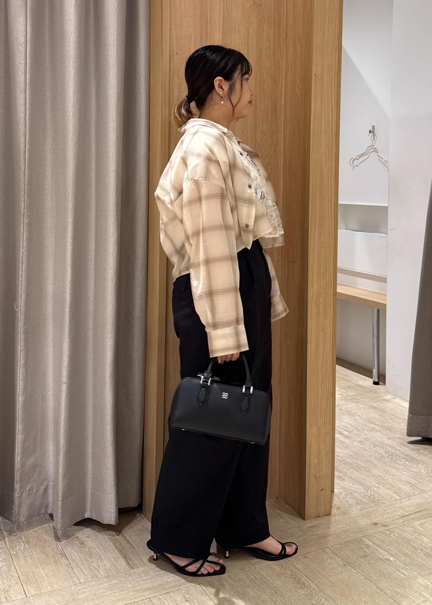 地味にならないように、ラメ感のあるビスチェを取り入れて華やかさをプラスしてます◎