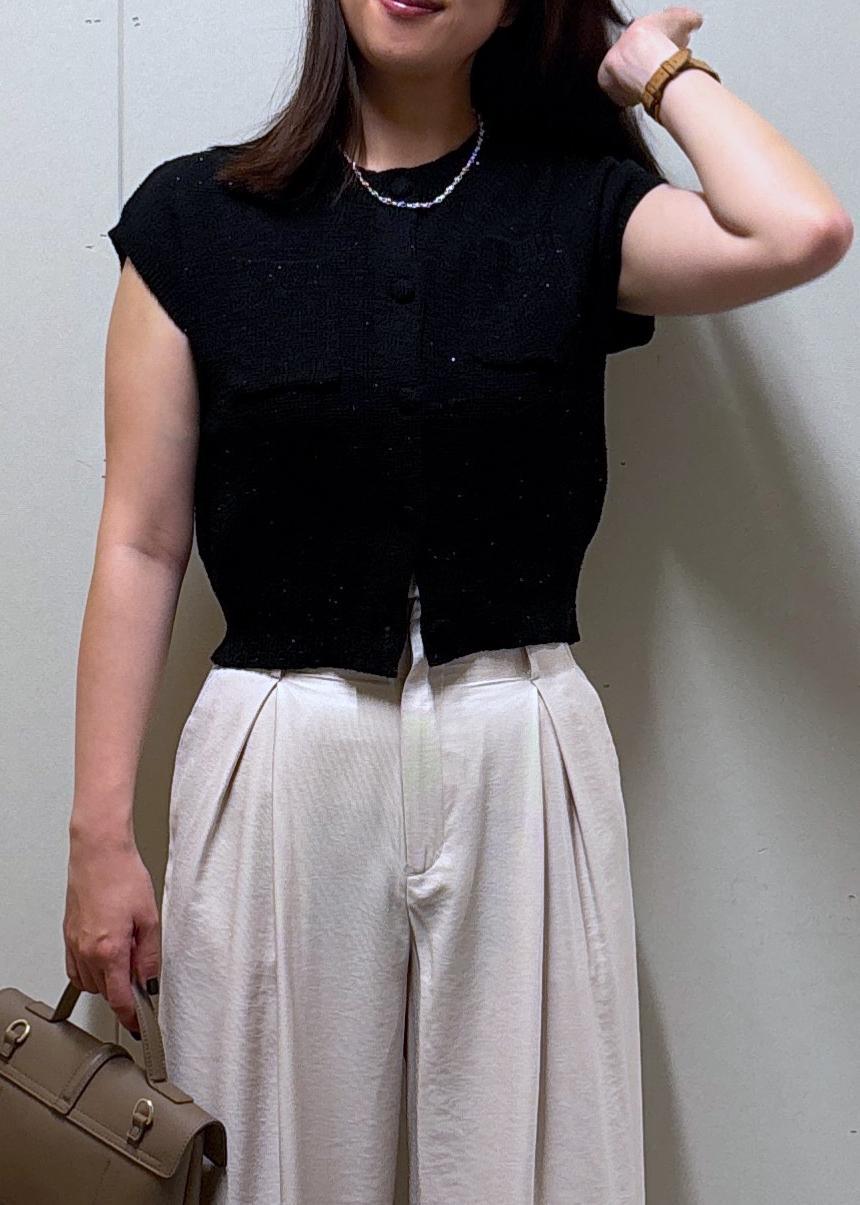 VISくるみ釦ニットトップスカーデ/洗えるブラック系 / F¥4,939レビュー袖、着丈ともに短いですが、意外と着痩せして見えます。ボトムをハイウエストのものに合わせるのが必須にはなりますが、今っぽいトレンド感のあるデザインなので是非着てみてほしいです。