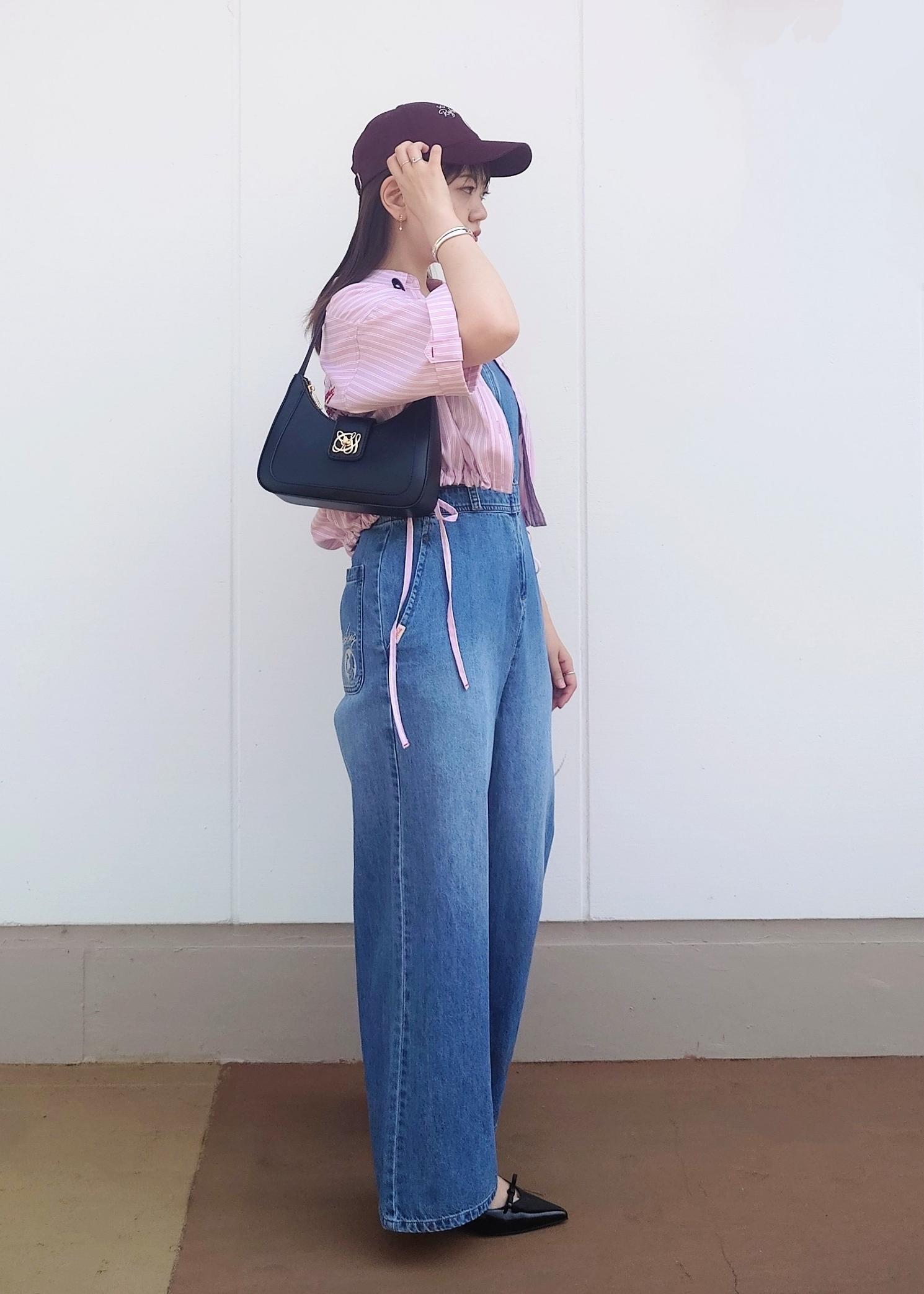 ポインテッドトゥパンプスを合わせて女性らしさを。