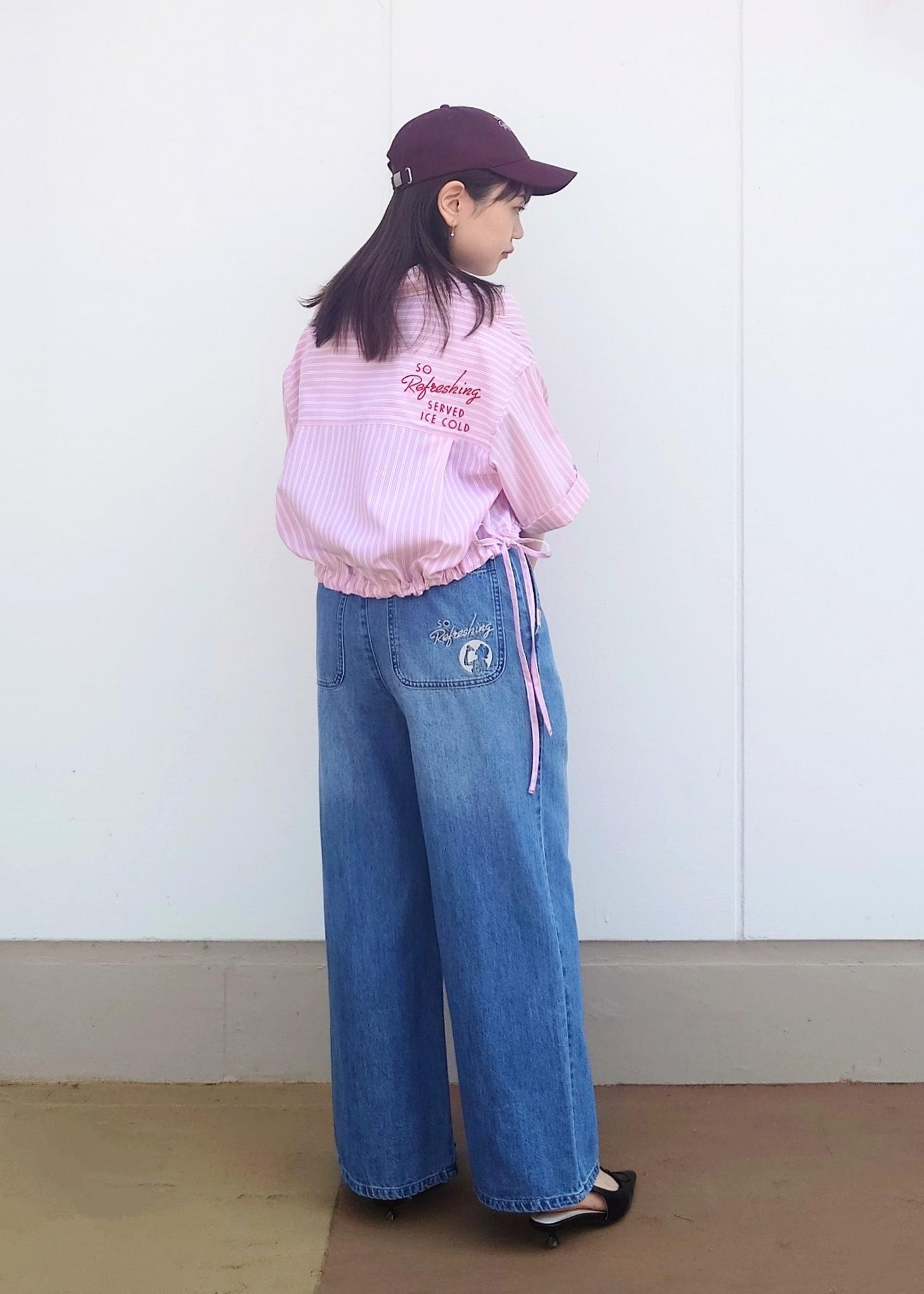 ウエストをリボンで絞って腰位置を少し高く見せられます◎