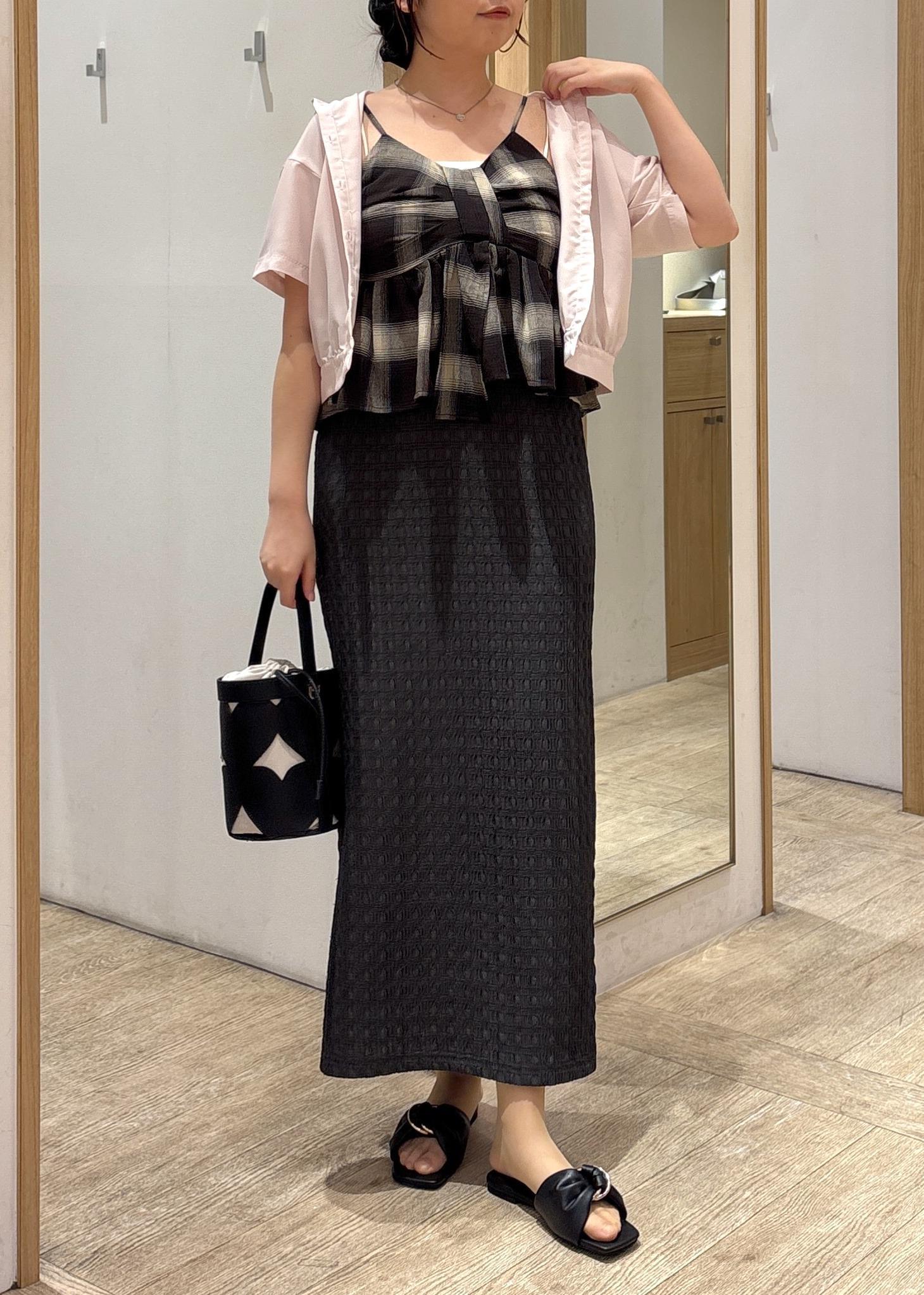 VISオンブレチェックリボンビスチェブラック系 / F¥5,489レビュー大きめチェックとリボンがポイントの華やかなキャミ。
