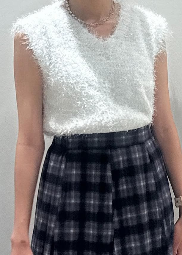 VIS【WEB限定サイズ:MT/着丈が選べる】【洗える】フェザーヤーンニットベストホワイト系 / M¥3,293レビューふわっとした素材感と華やかなラメがポイント。