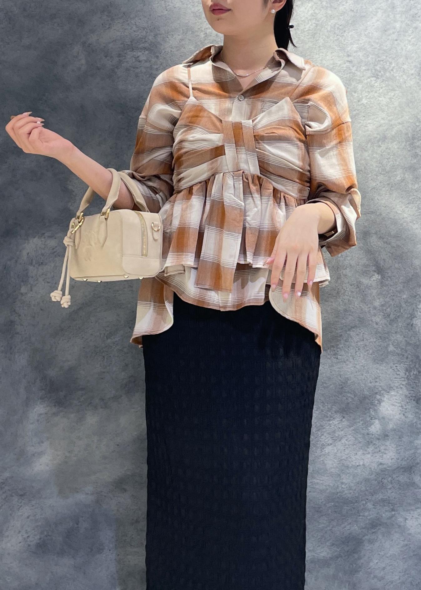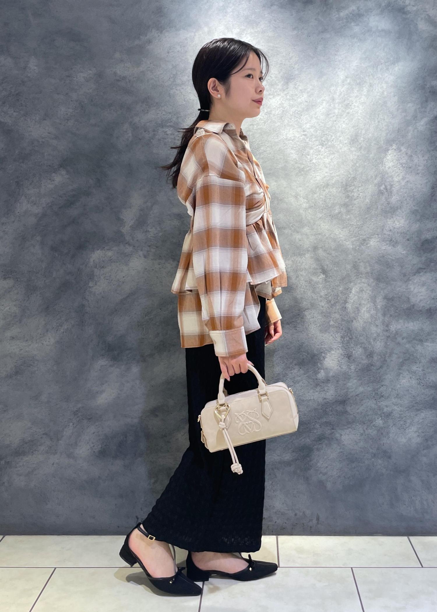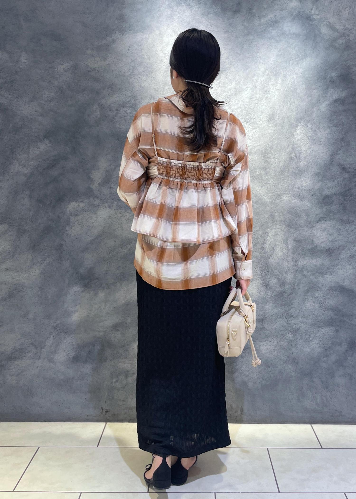 VISオンブレチェックリボンビスチェベージュ系 / F¥4,391レビュー丈感は腰骨が隠れる丈感でコンパクトにきやすいです。肩紐で長さ調整ができるのが嬉しいポイント!