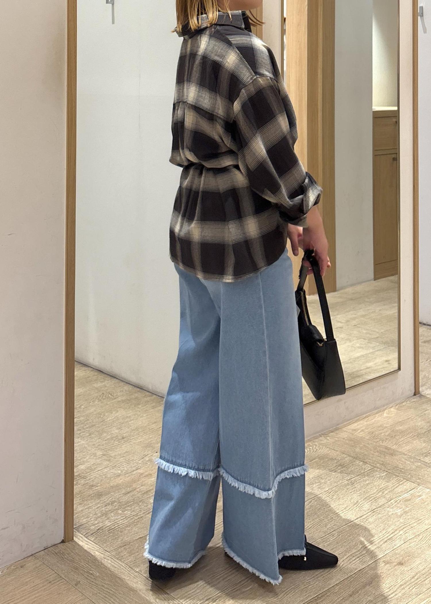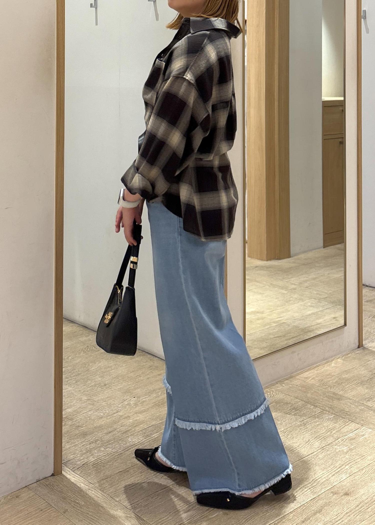 VISフリンジフレアデニムサックス / M¥4,395レビュー155cmでSサイズでもMサイズでも丈感大丈夫でした!