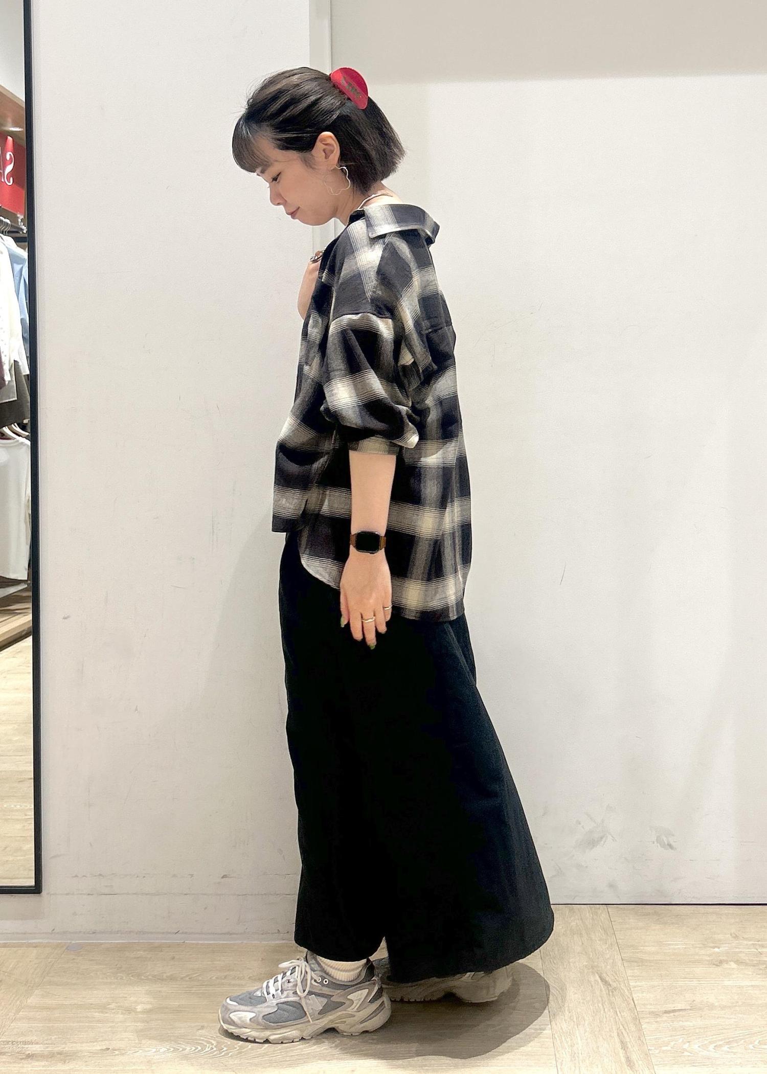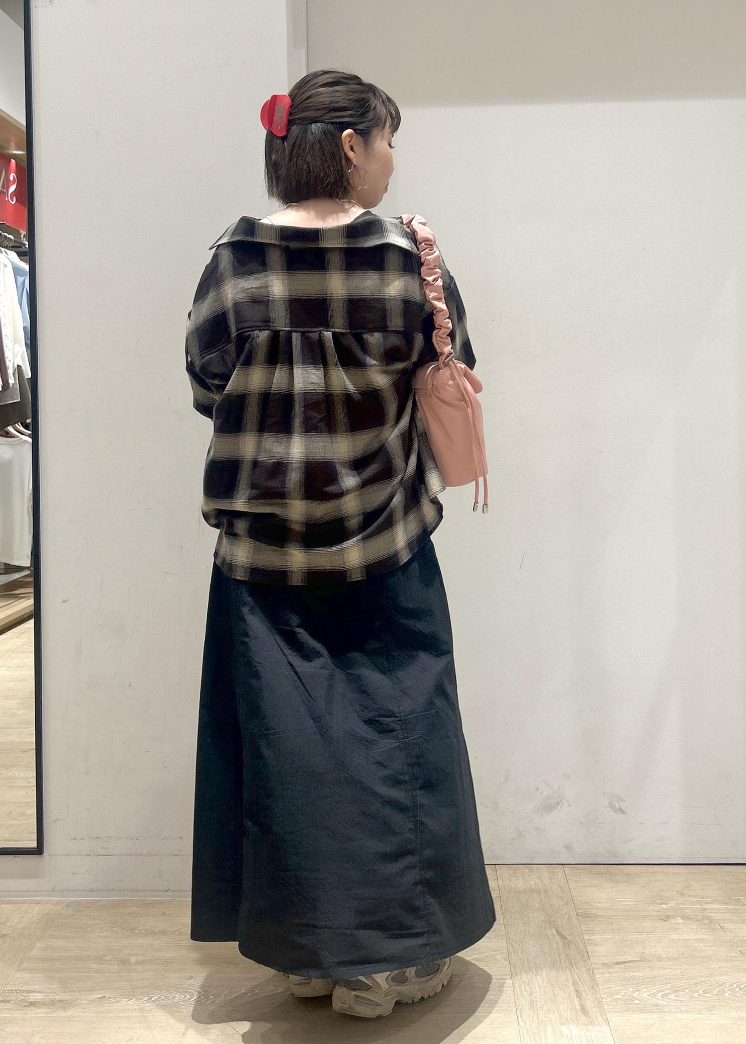 VISオンブレチェックオーバーシャツブラック系 / F¥6,589レビュー163cmでヒップラインが隠れる着丈です。