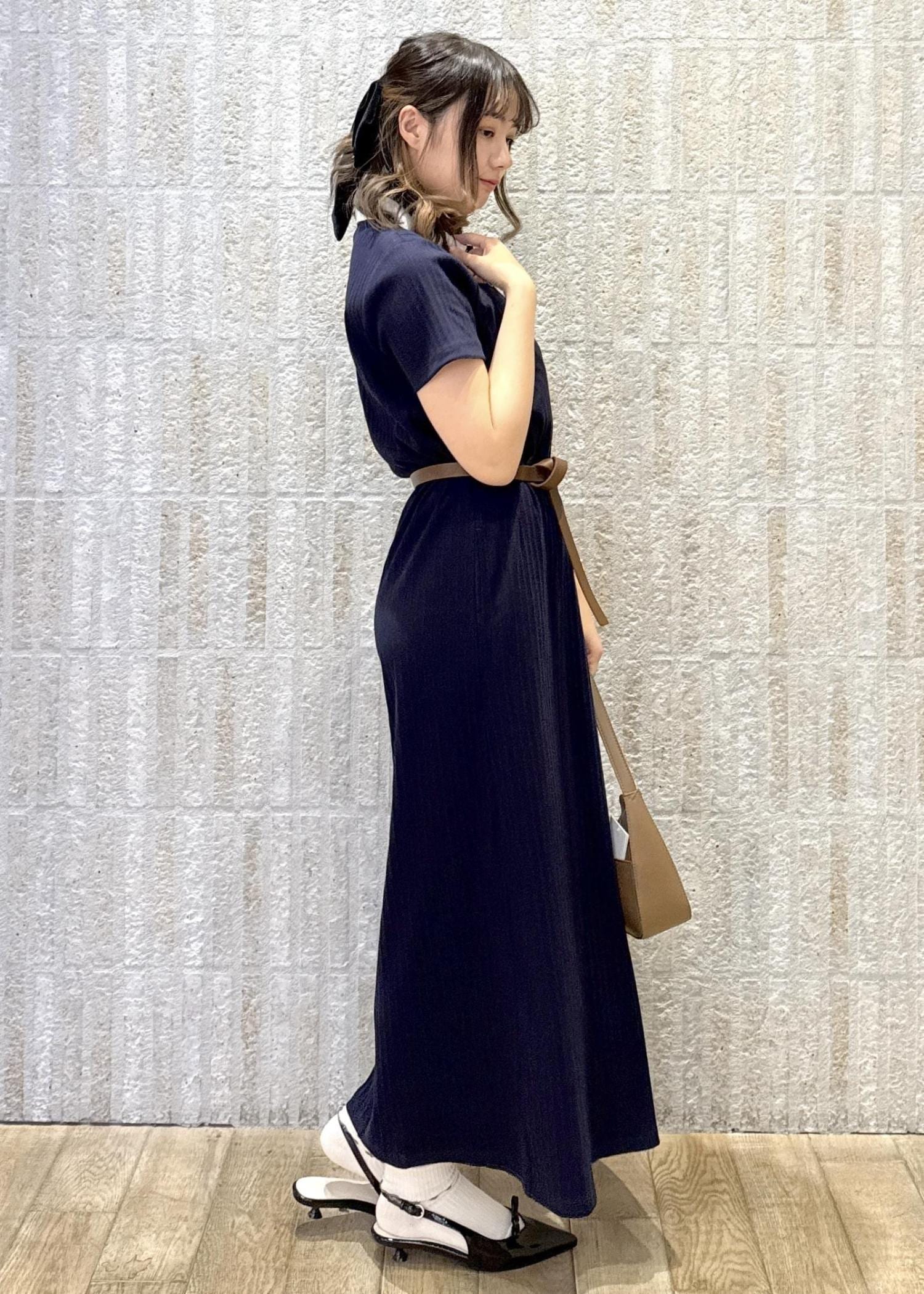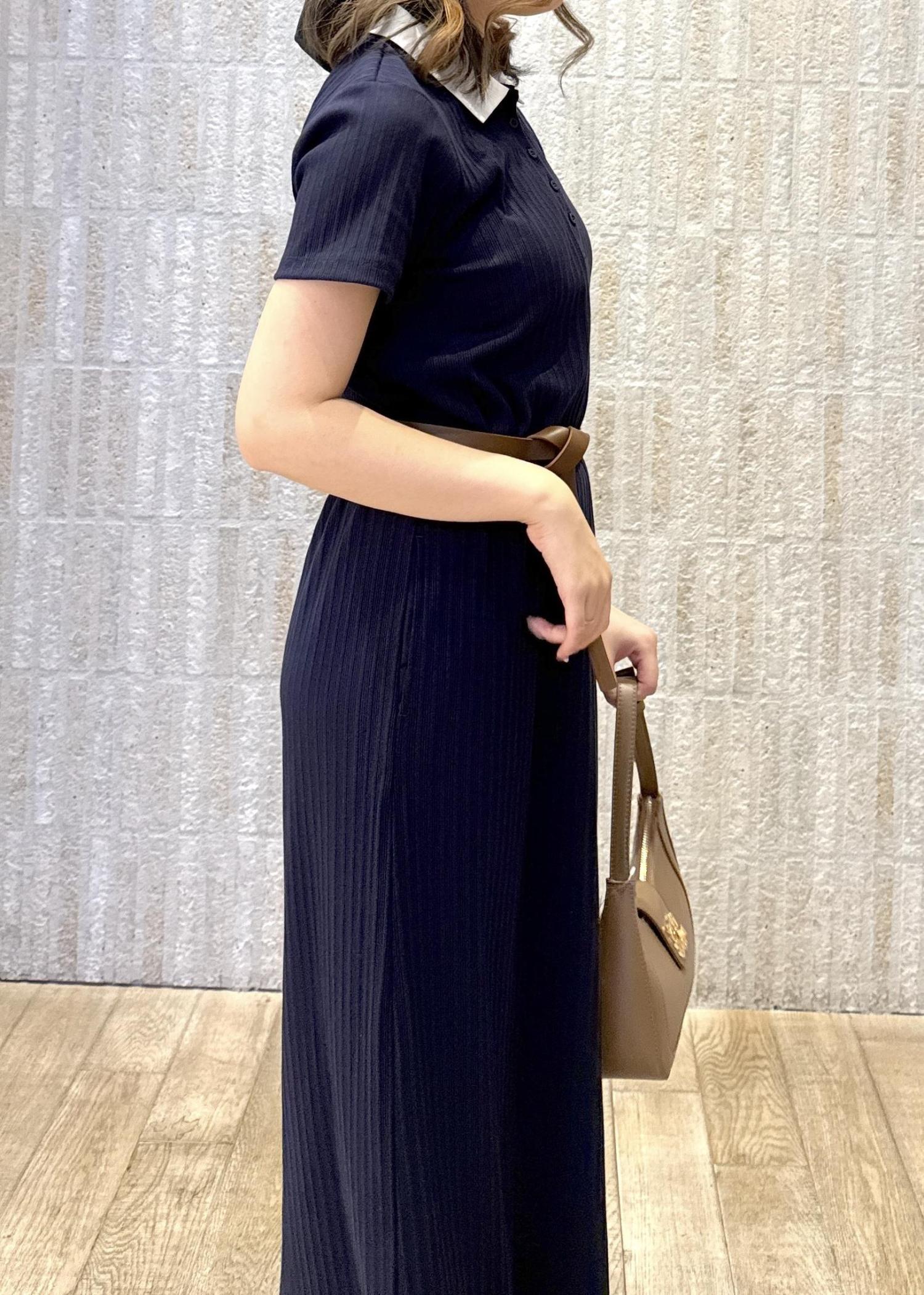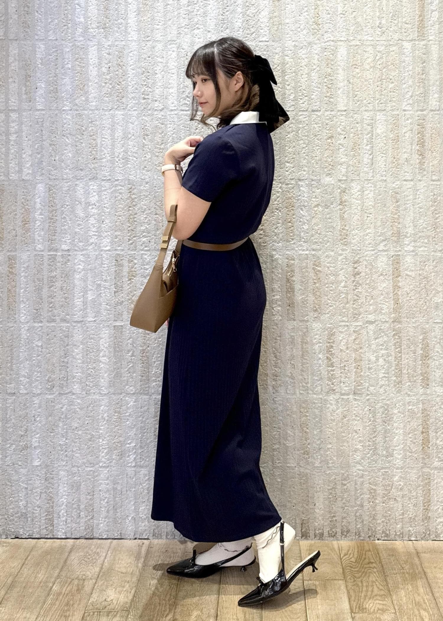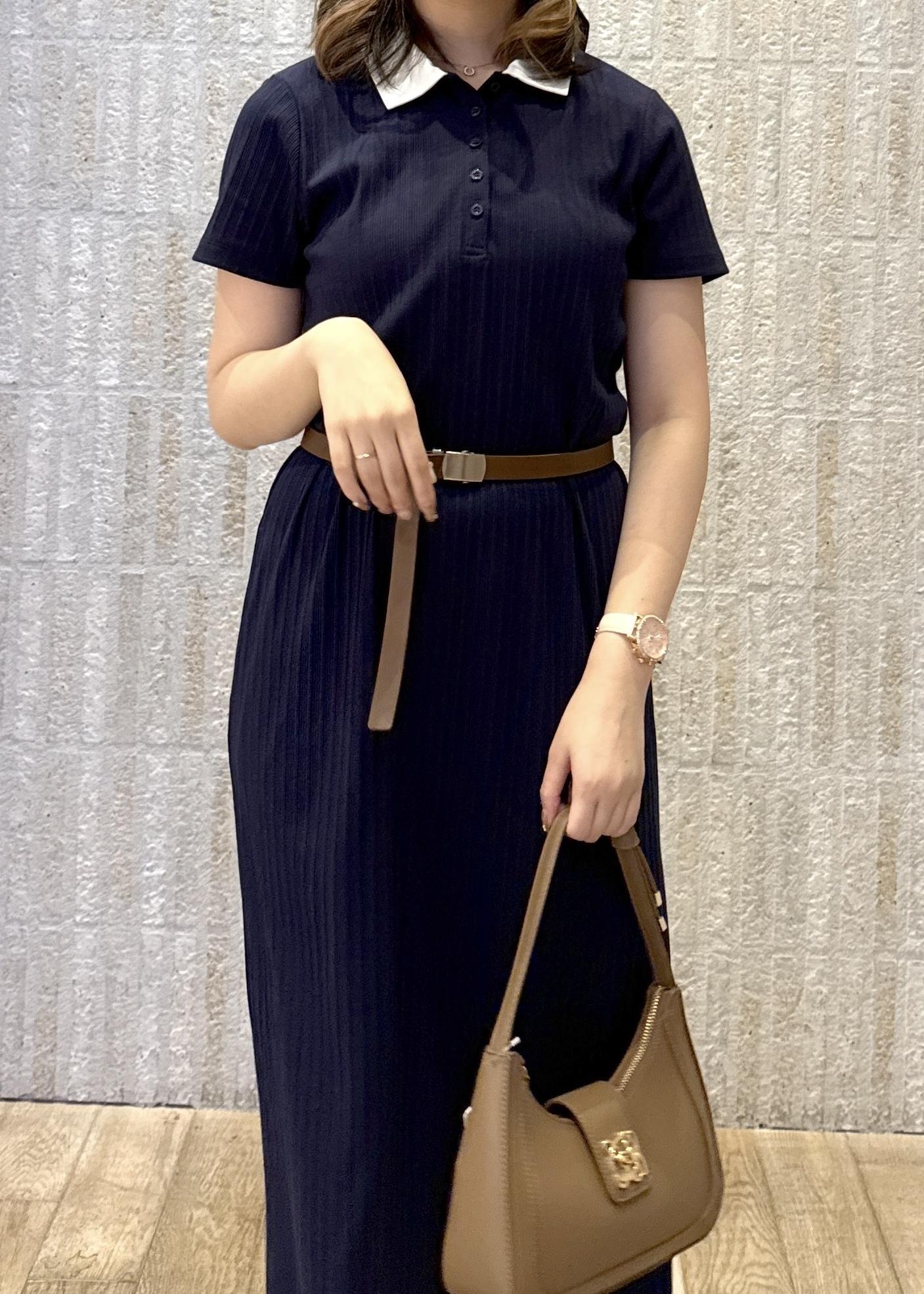 VISポロ衿ランダムリブワンピースネイビー系 / F¥4,612レビューリブ素材で動きやすいポロ襟ワンピース。