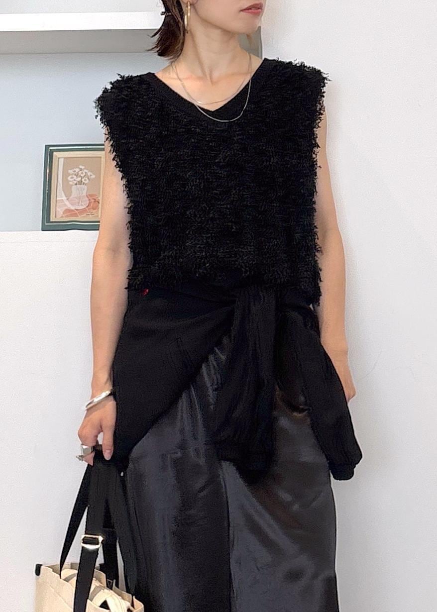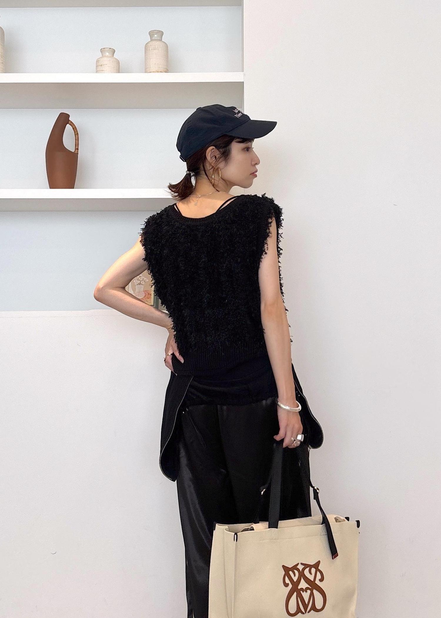 VIS【2WAY】フリンジニットベストブラック系 / F¥5,929レビューフリンジデザインが大人可愛いニットベスト♪ふわふわ、優しいフリンジが一枚で着映えします。前後2WAYでネックのデザインが変わる、着回しが楽しめるデザインです。そこまで厚みは感じにくく、今時期のトップス使いから秋のレイヤードまで長く着れる素材。全体的にややゆったりめ、着丈は腰くらいの長さでした。