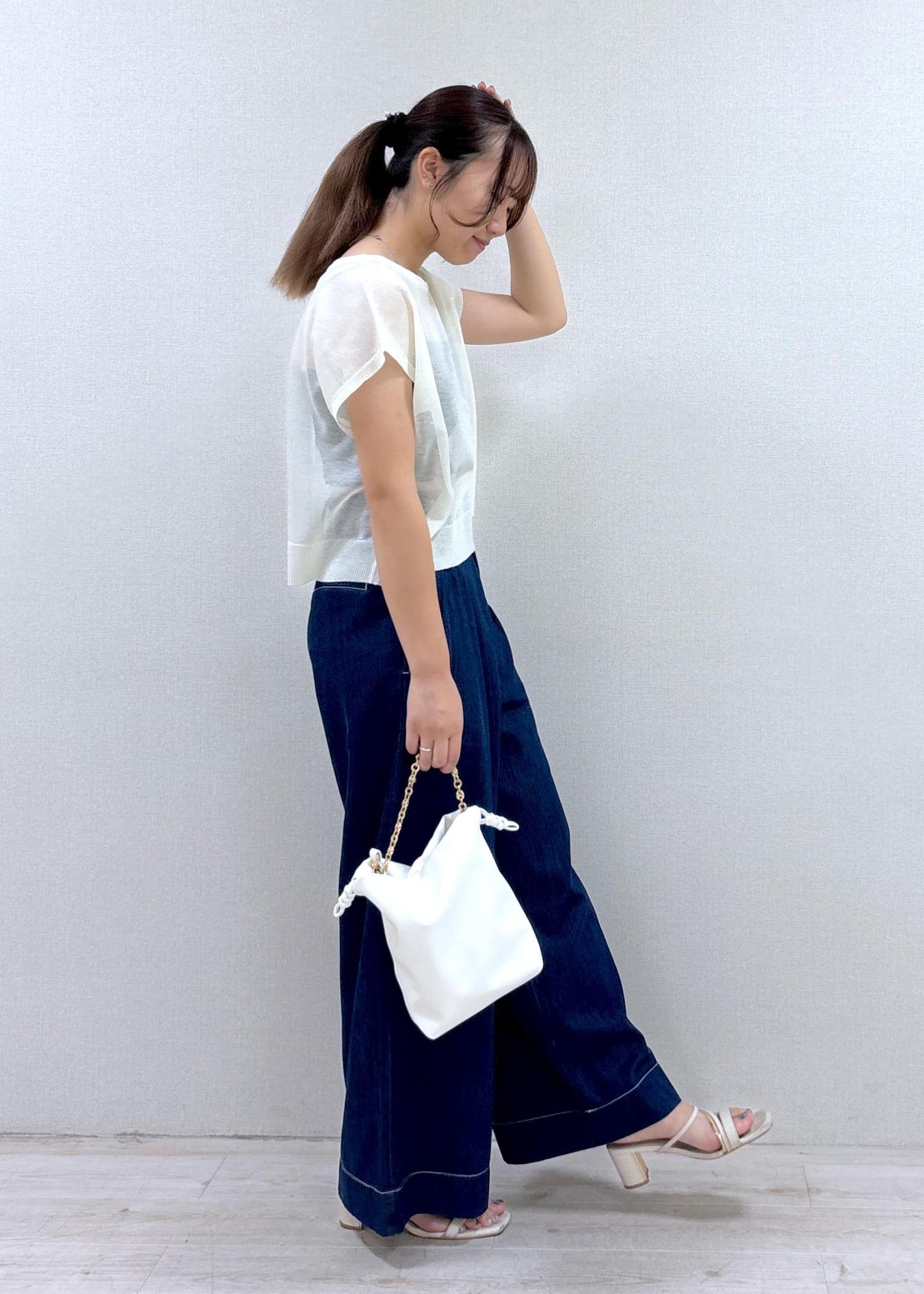 1枚でさらっと着ていただけるトップスと薄くて軽いデニムで夏の味方をしてくれるコーデです!トップスはシンプルなデザインでネックレスなどが映えます◎