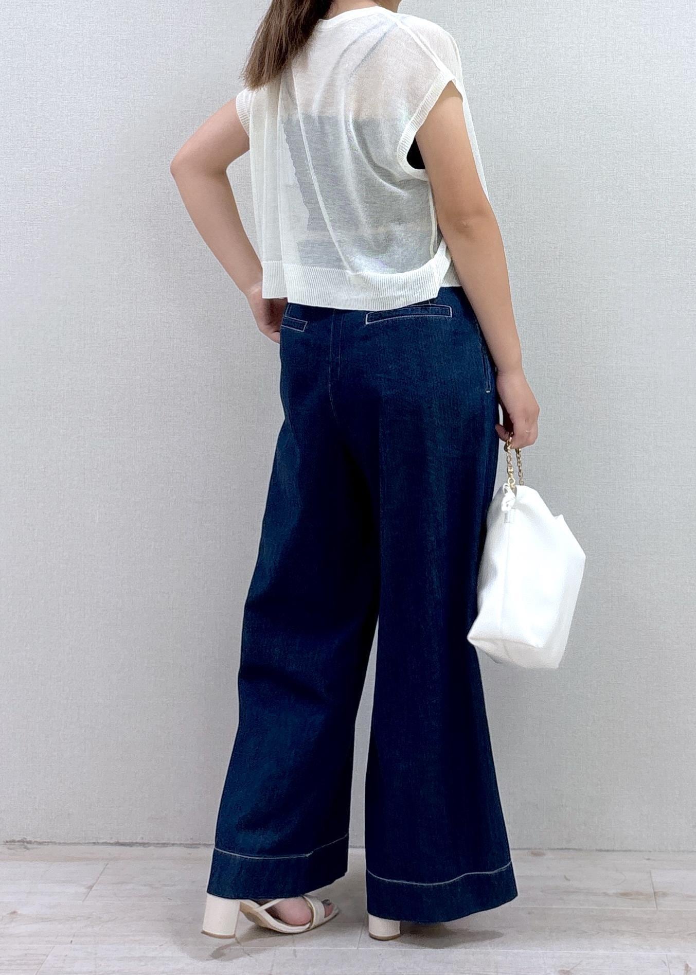 軽いデニム生地を使用しているため夏でも履きやすくなっています!丈は身長161cmでMを履いてみましたが、長めでサンダルと合わせやすい長さでした!