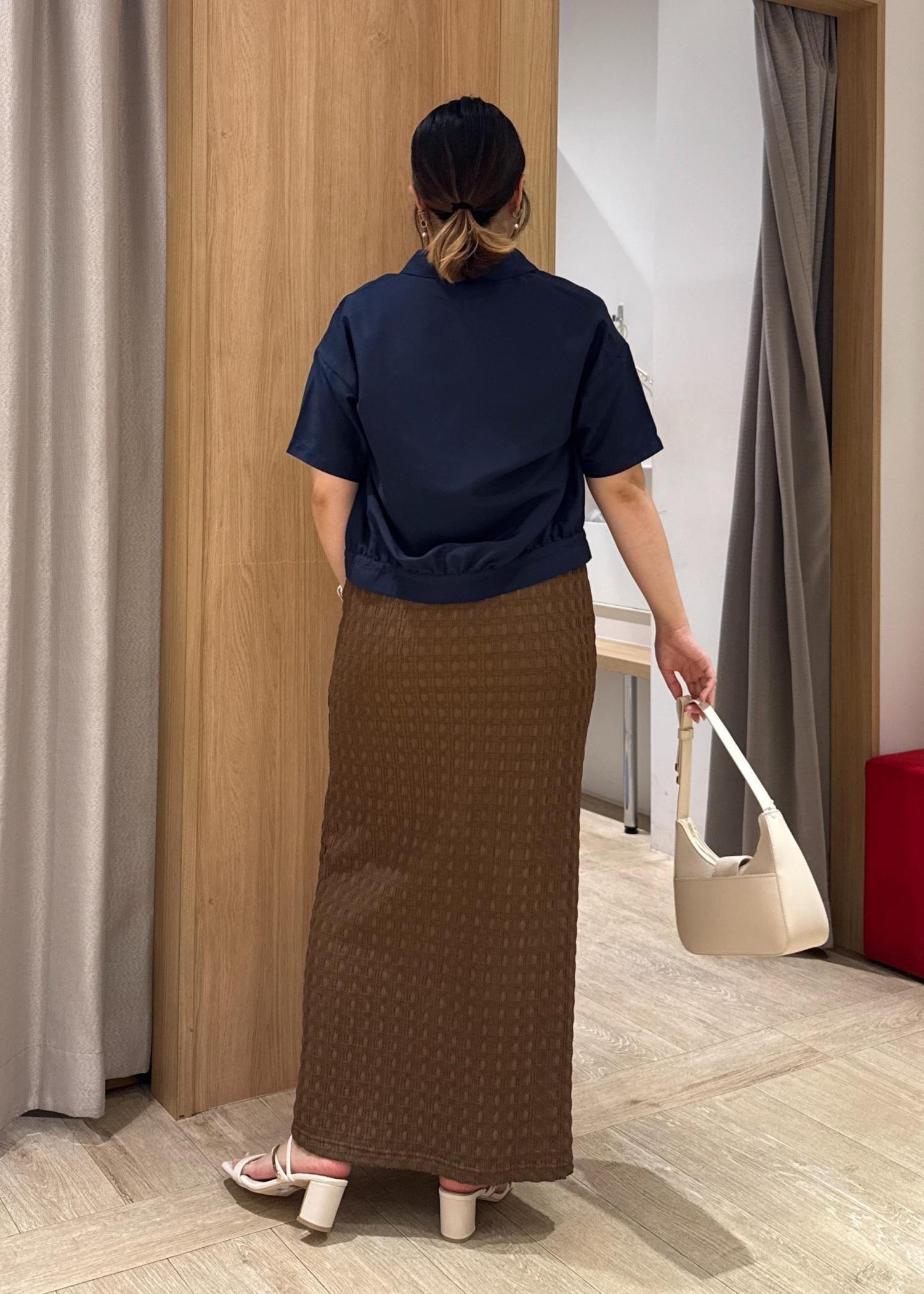 アウトレットVIS【新色追加】【接触冷感】膨れジャガードナロースカートブラウン / F¥3,293レビュー153cmの私ですが、くるぶしくらいの丈感でした。