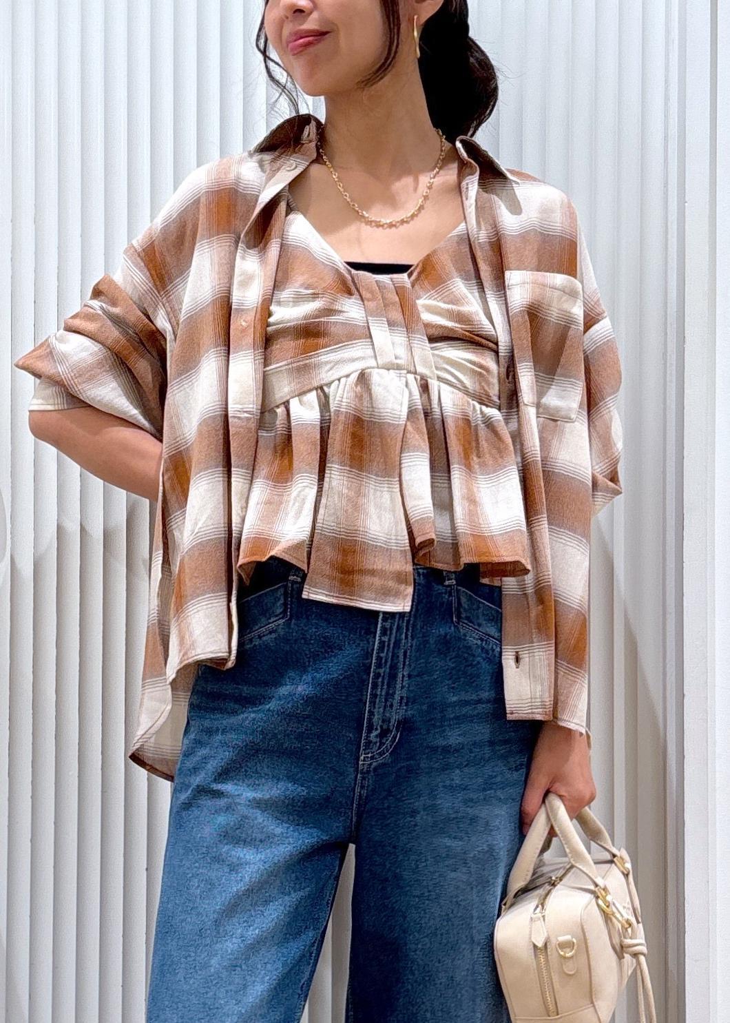チェックの柄がアクセントになって、今の時期半袖で合わせて、先の時期に長袖に合わせても可愛いです。 -