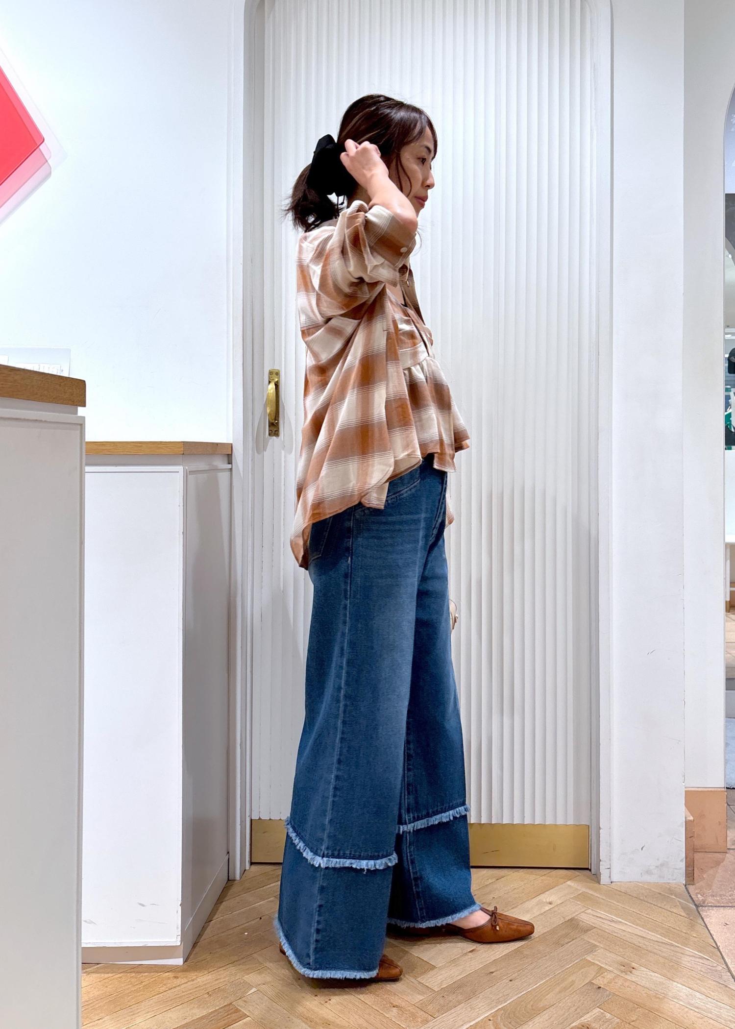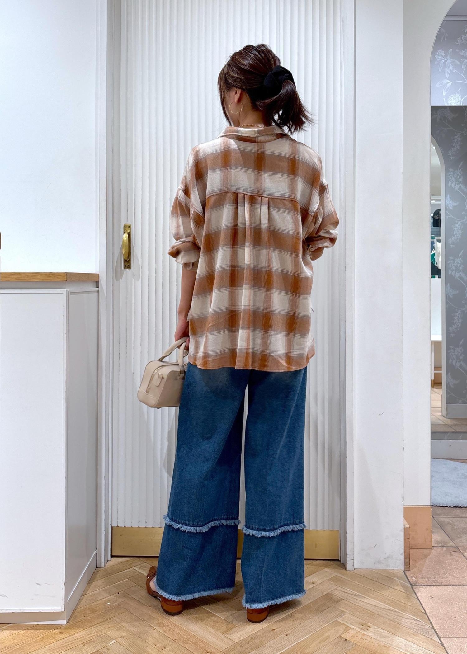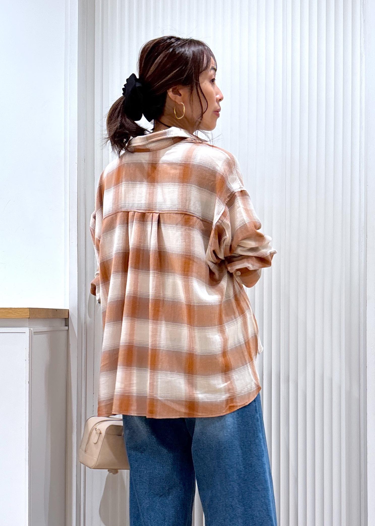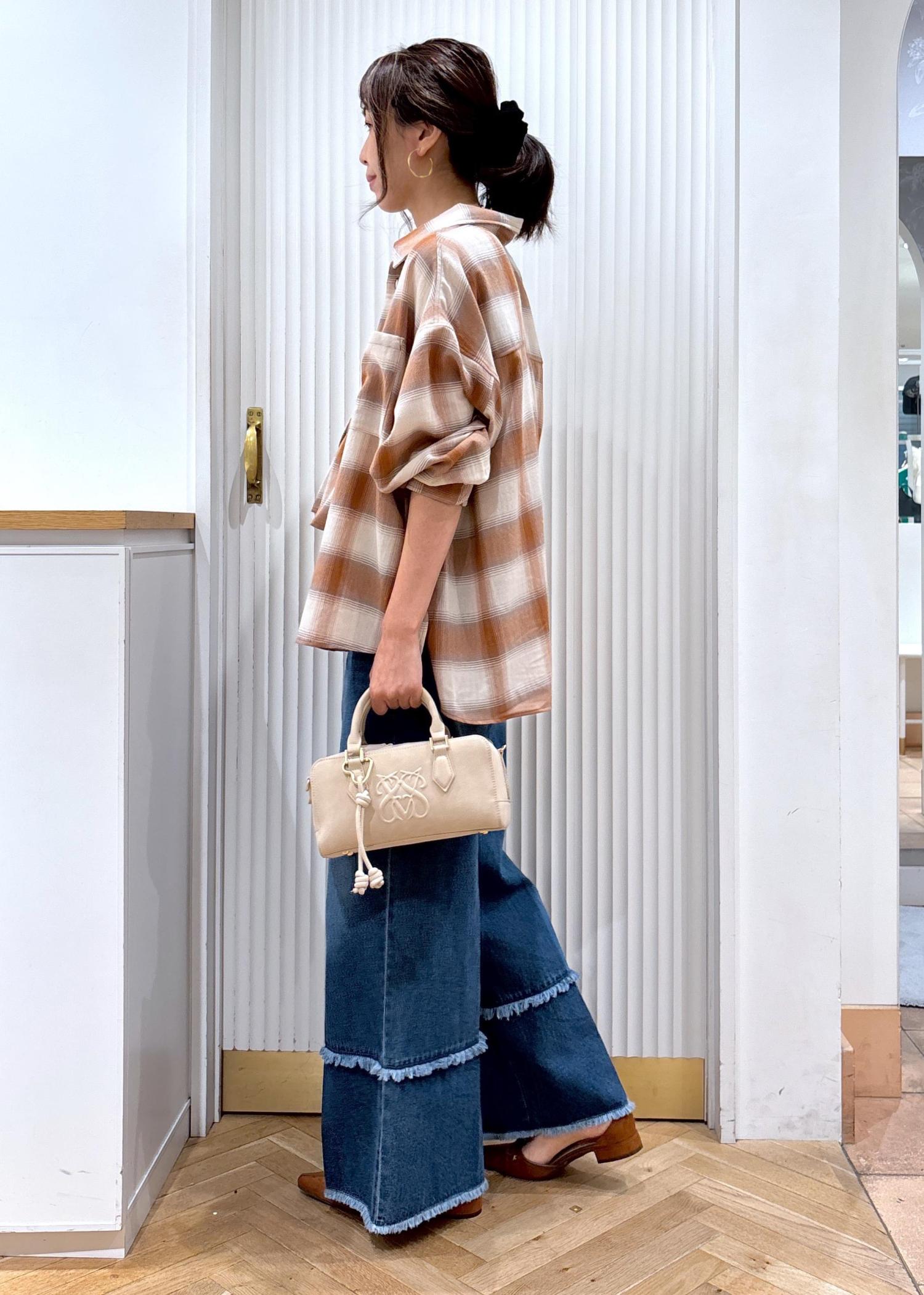 秋らしいチェックシャツにデニムを合わせた、大人カジュアルスタイリングです。