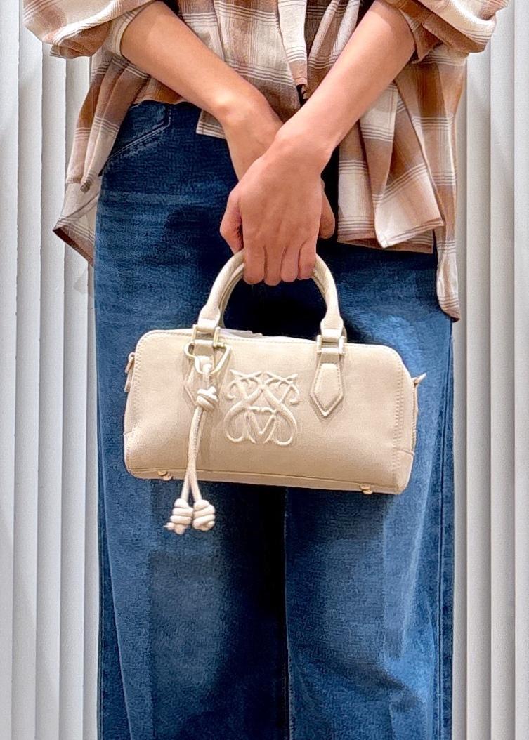 VISロゴスエードミニボストンバッグ/2WAYベージュ系 / F¥6,919レビュー小ぶりながらも、マチがあるので長財布、500mlのペットボトルもしっかり入ります。