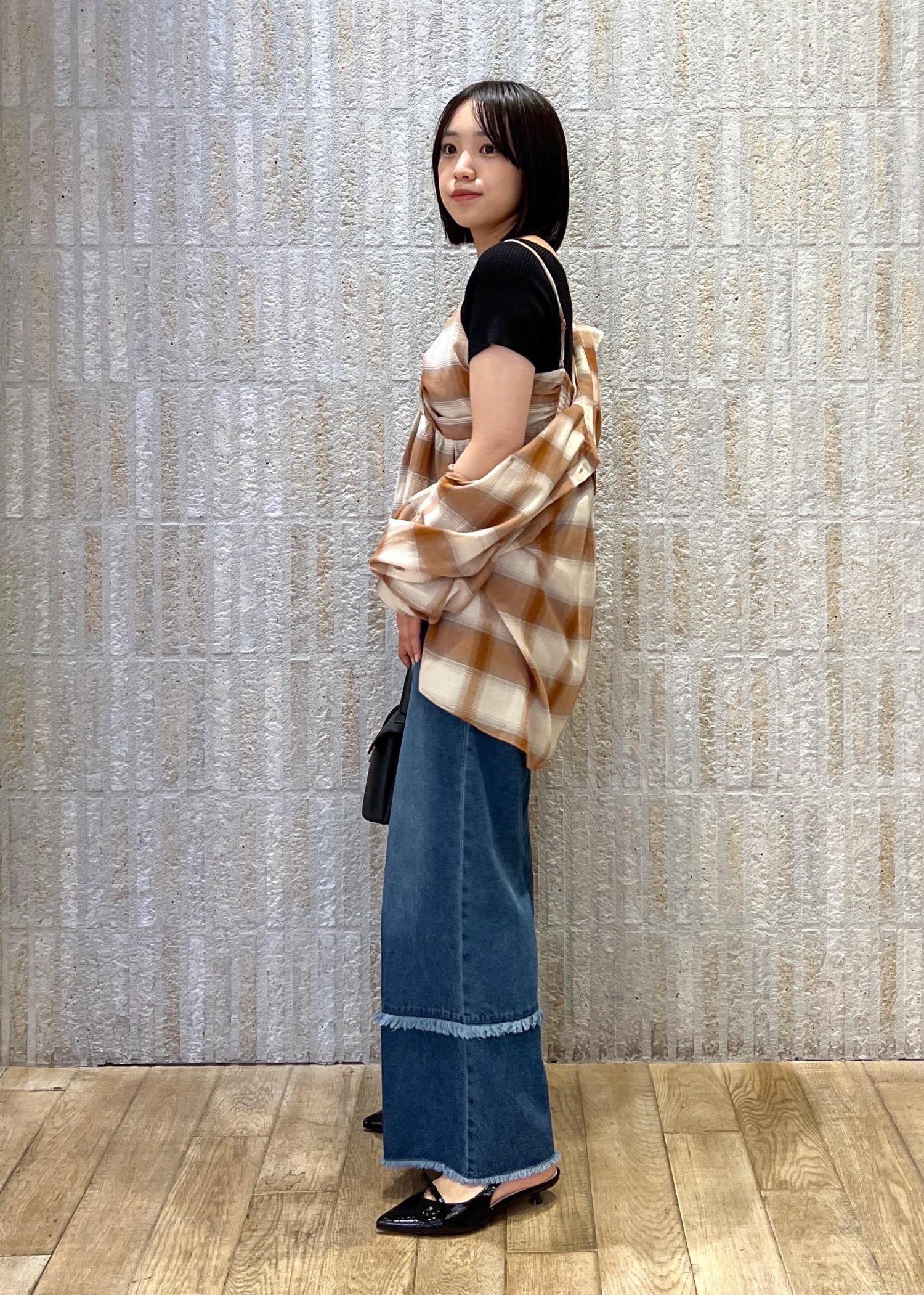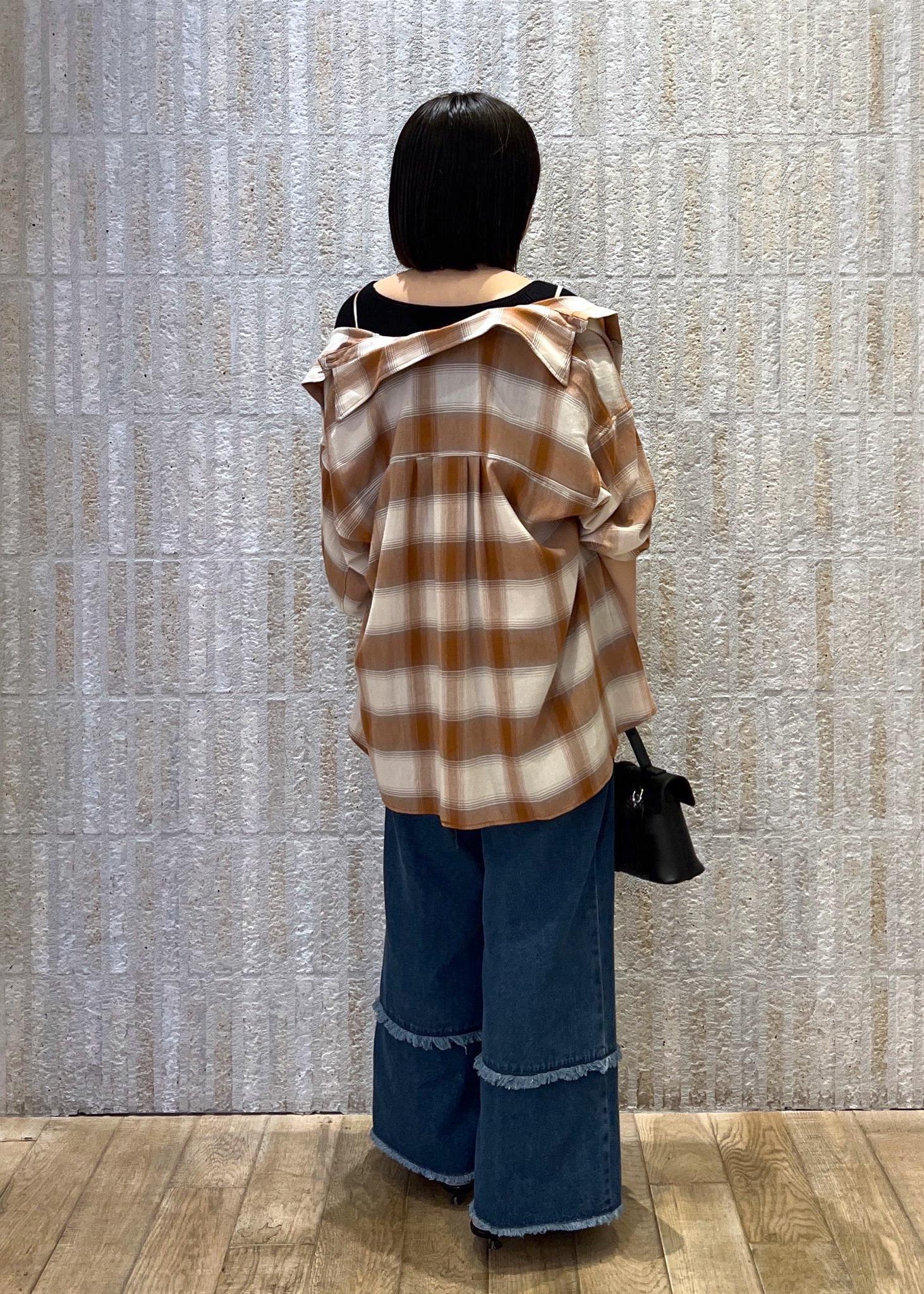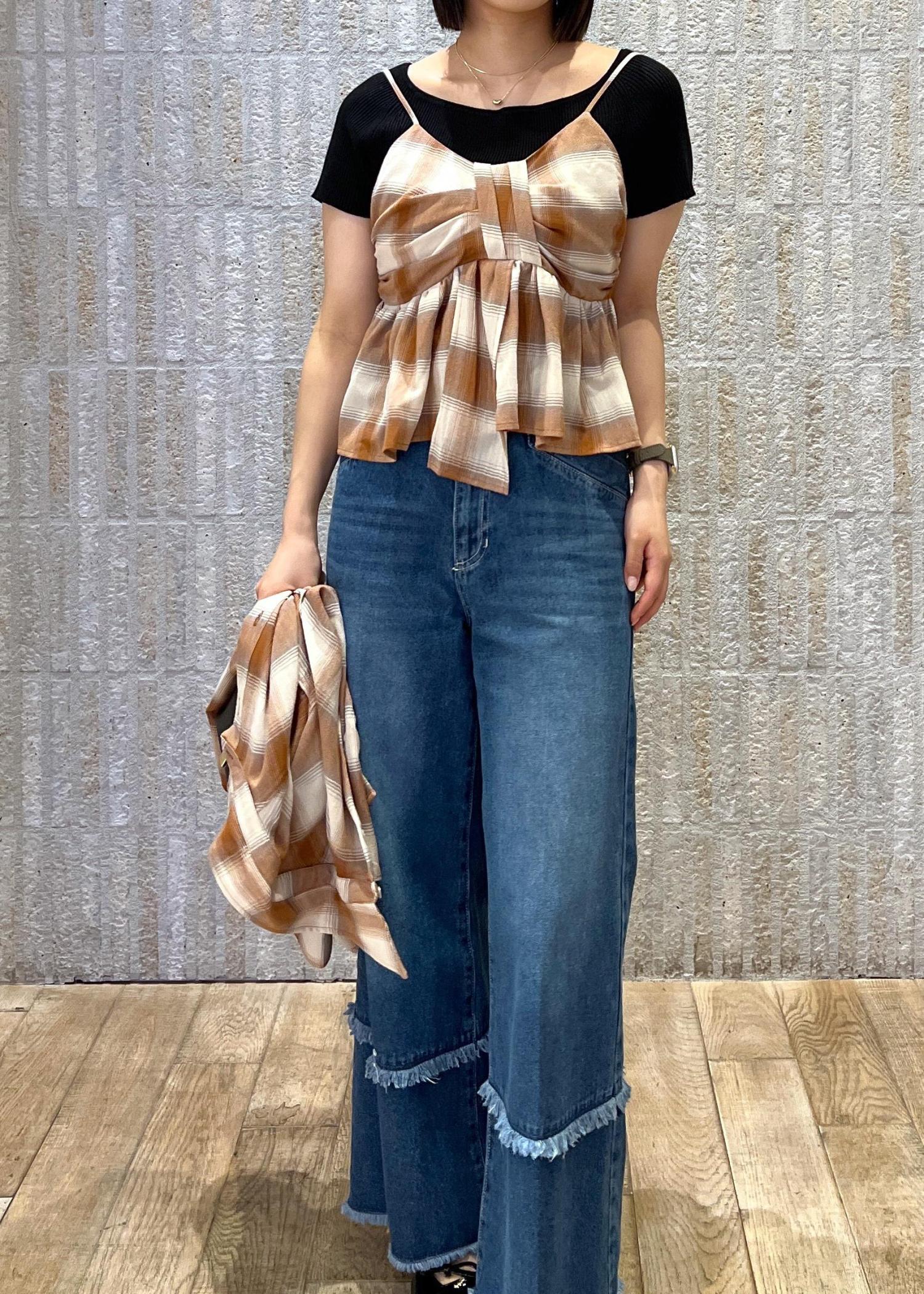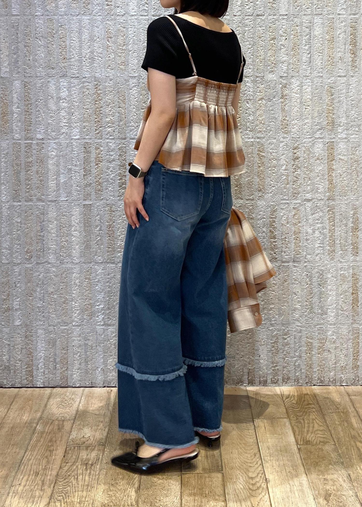 オンブレチェック×フリンジデニム