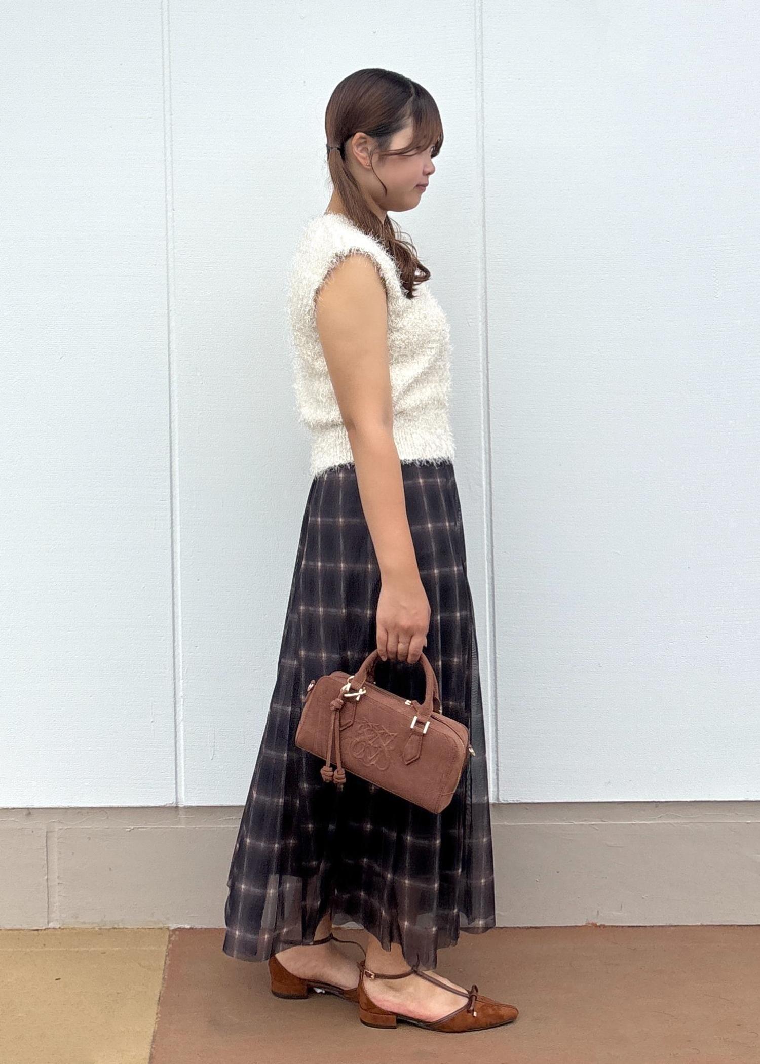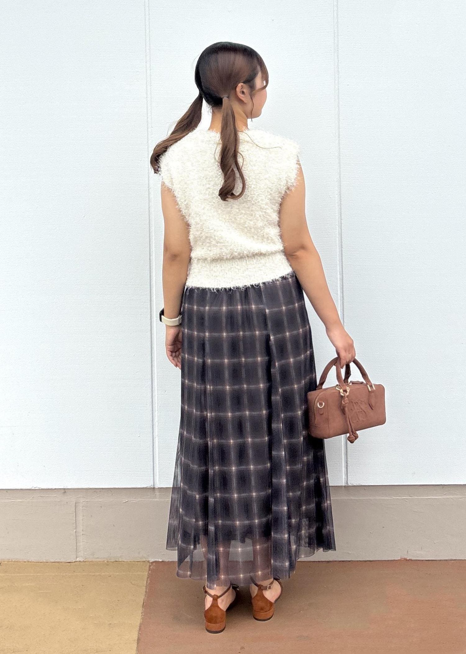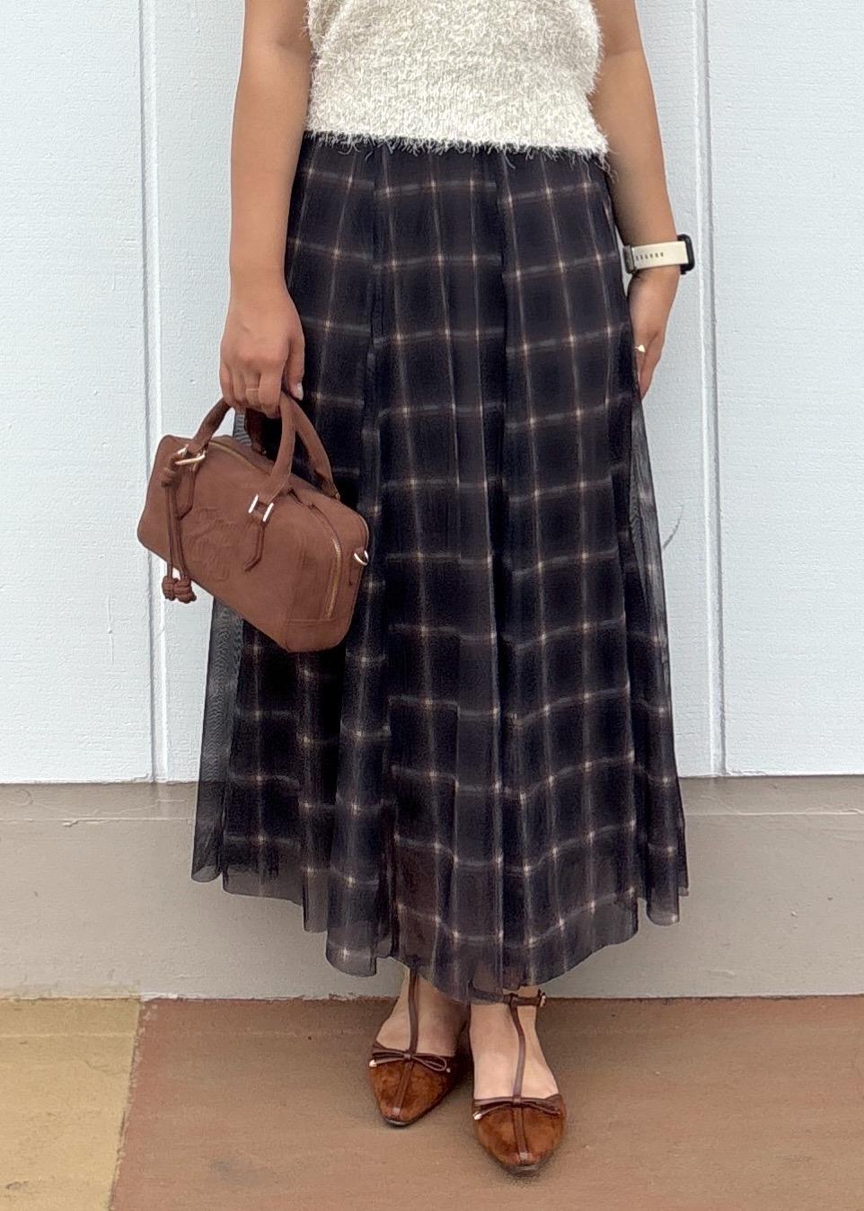 VIS【洗える】チュールプリントチェックスカートダークブラウン系 / F¥4,612レビュー柔らかいチュールの生地なので着心地が良かったです◎