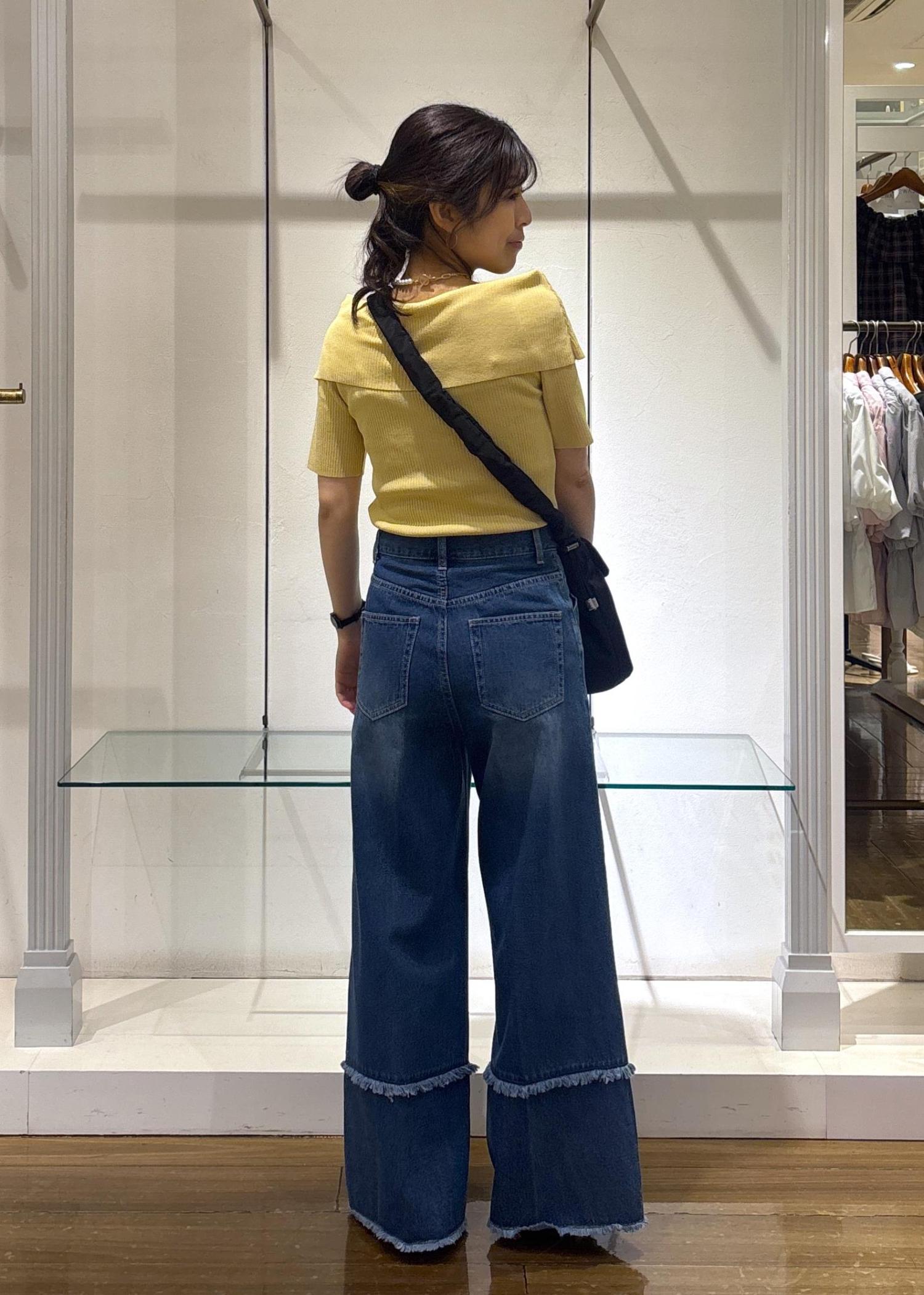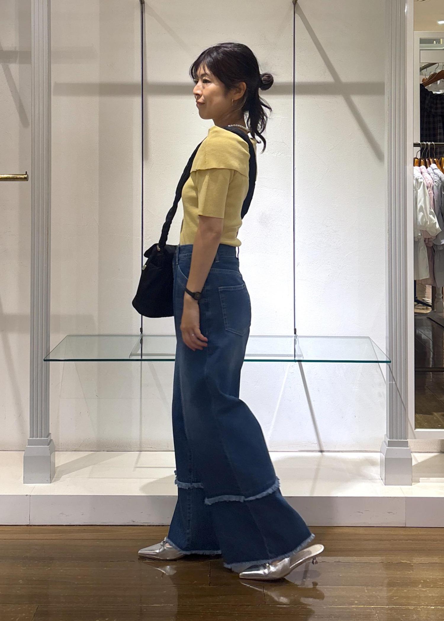 VISフリンジフレアデニムブルー系 / S¥4,395レビュー身長156cmでSサイズを着用。 ウエストは少しゆとりがありますがトップスをインするとちょうどよいです!丈は靴を履いてギリギリ床にあたらないくらいで、思ったよりもジャストで着られました◎下着のラインを拾わず程よく厚みとハリがありますが、軽くて柔らかい肌触りで暑い日も着やすい生地感。脚周りは広めですが大きく見えないデザインではきやすいです!